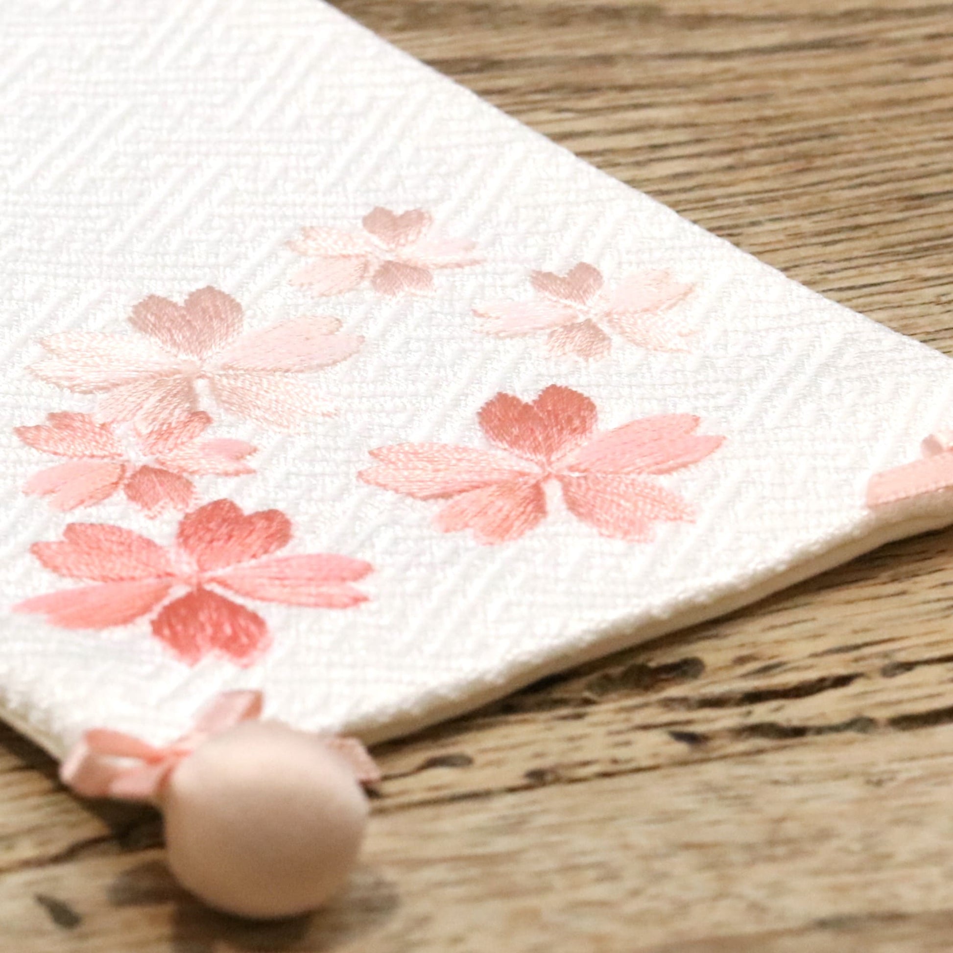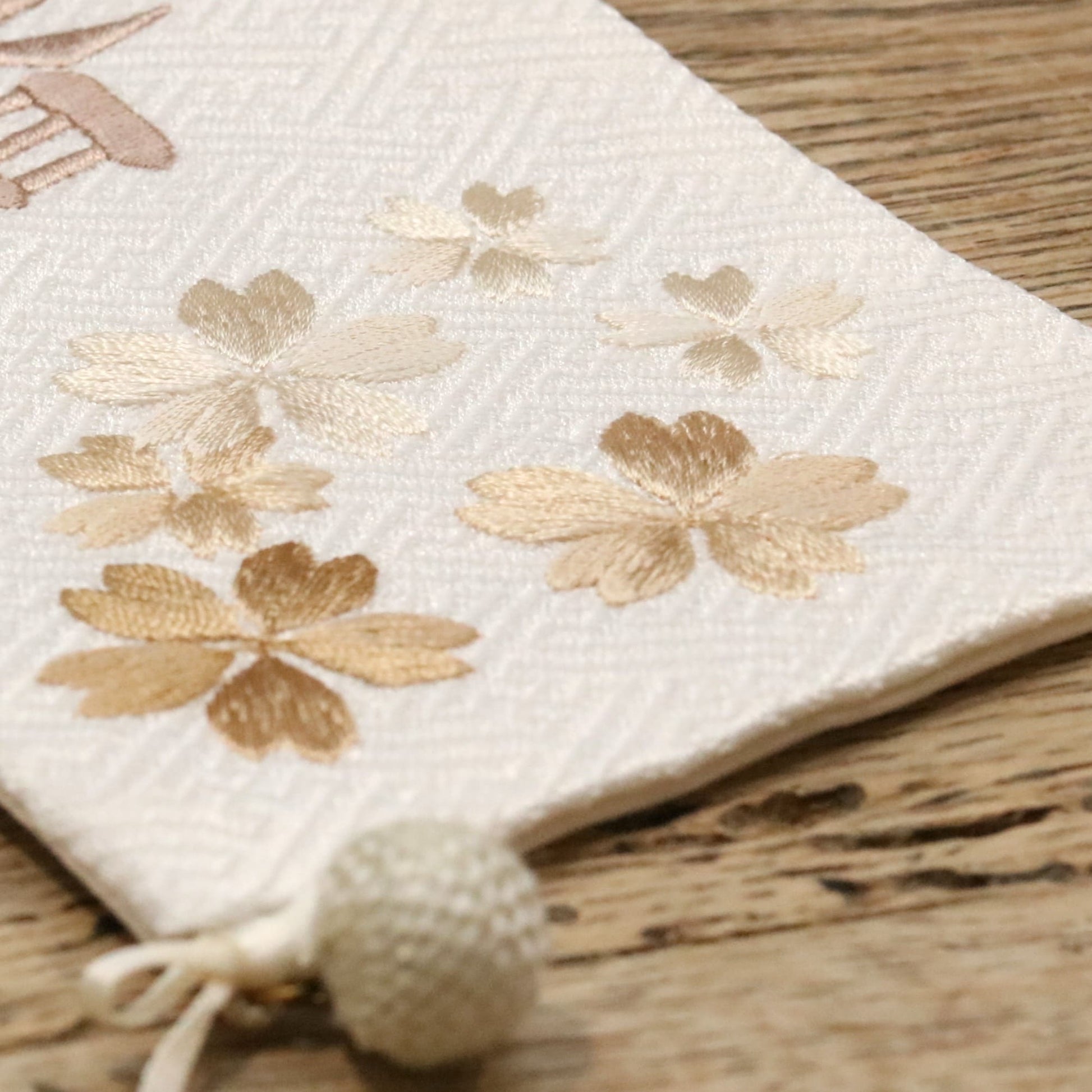 このデザインには、春の象徴である「桜」の花をモチーフにしています。桜は、日本の春を彩るだけでなく、「優れた美しさ」や「希望」という花言葉を持ち、赤ちゃんの未来が明るく、幸せで満ちあふれるようにとの願いが込められています。また、生地には、伝統的な「白鞘」を使用。純白の生地は、赤ちゃんの無垢で清らかな存在を象徴し、新しい人生の始まりを祝福するために最適です。