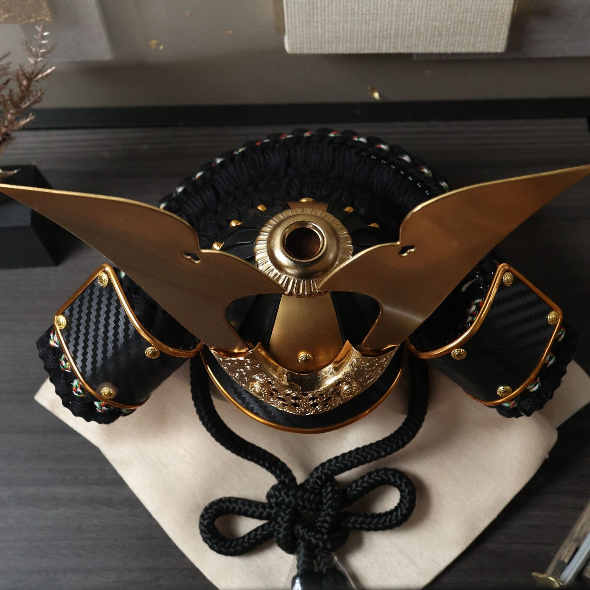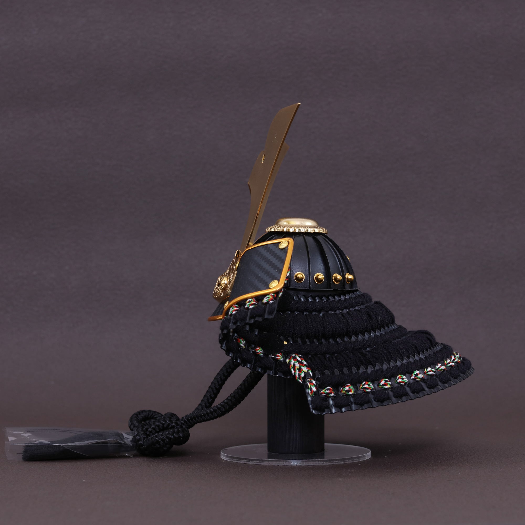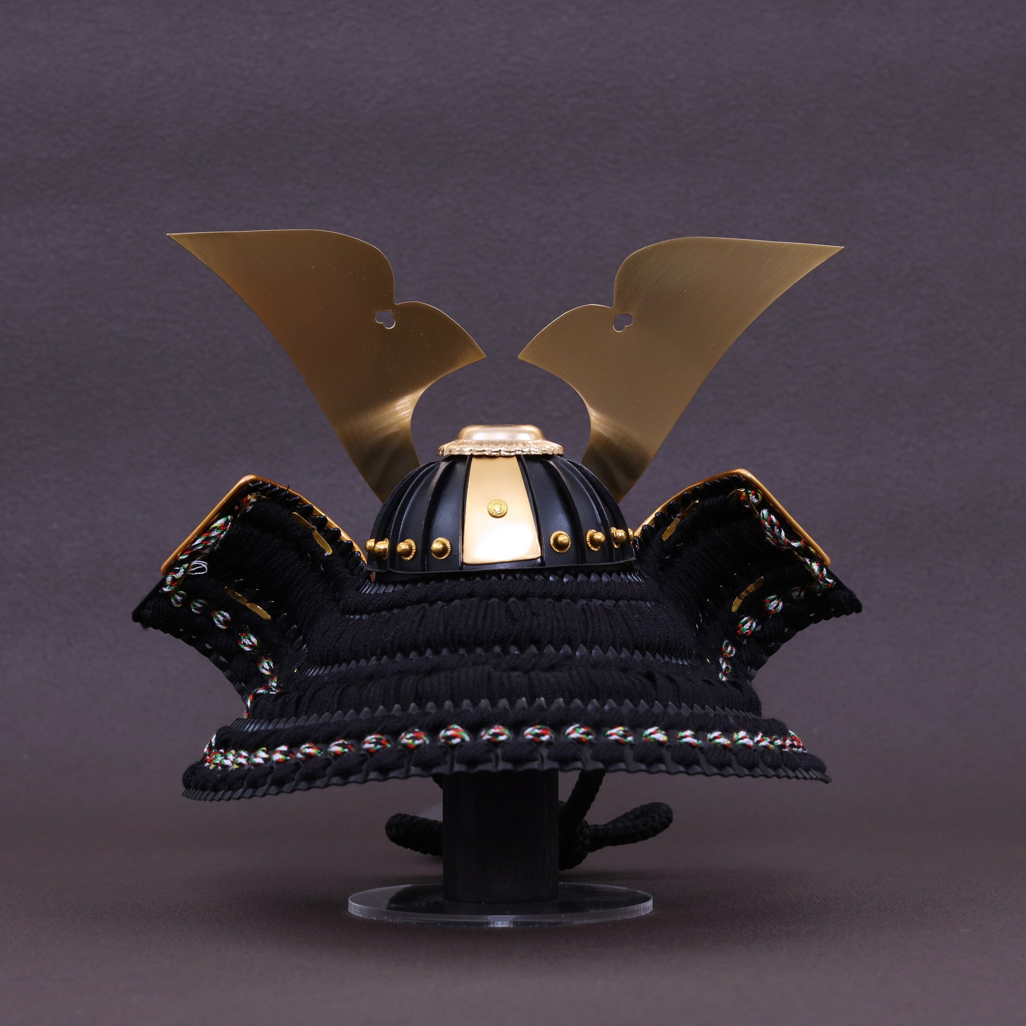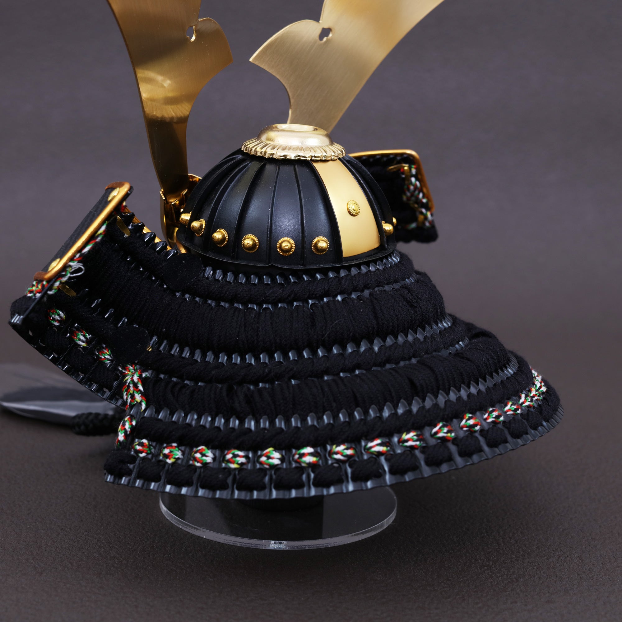 艶を抑えた黒に、やわらかな金がそっと映える兜。