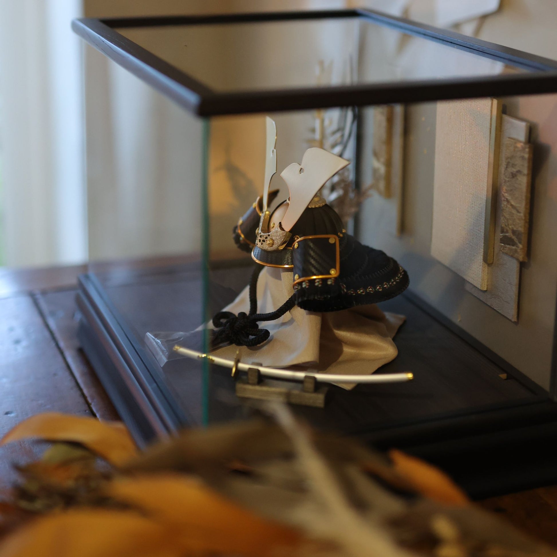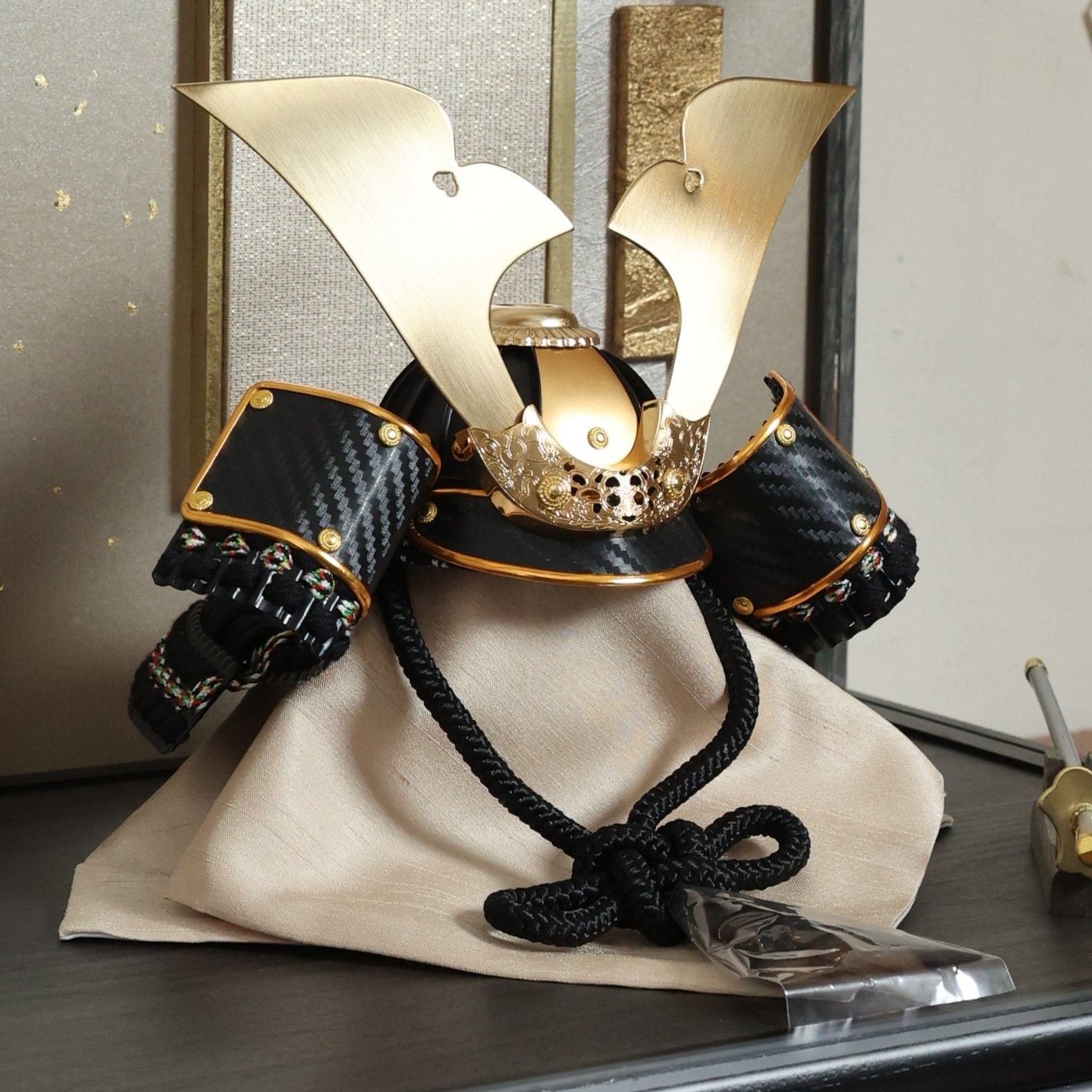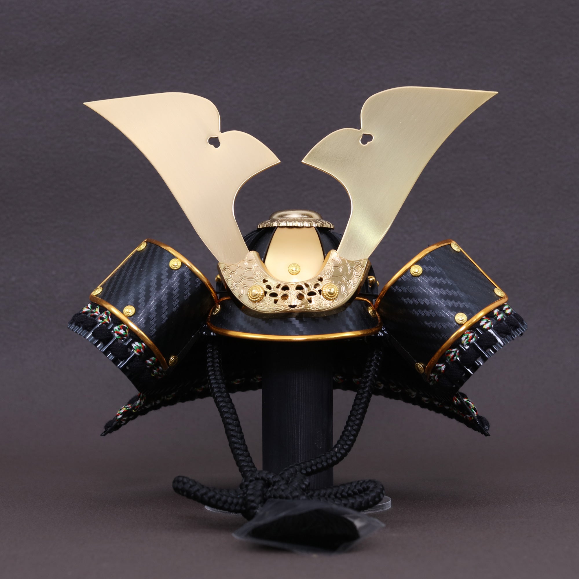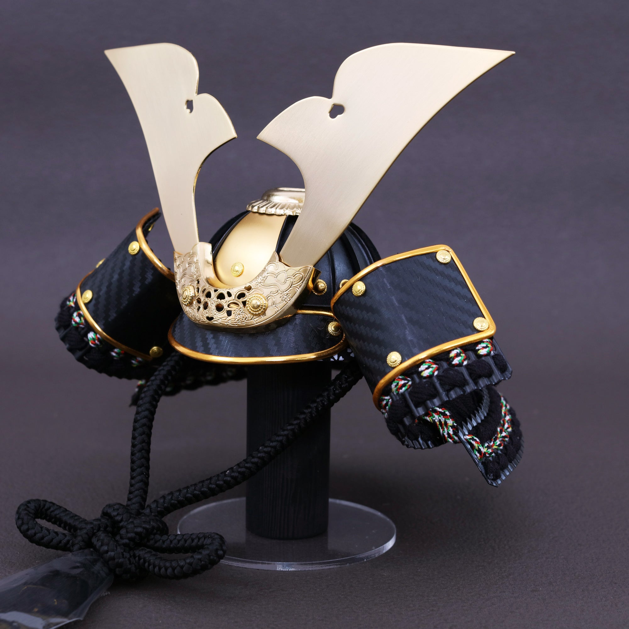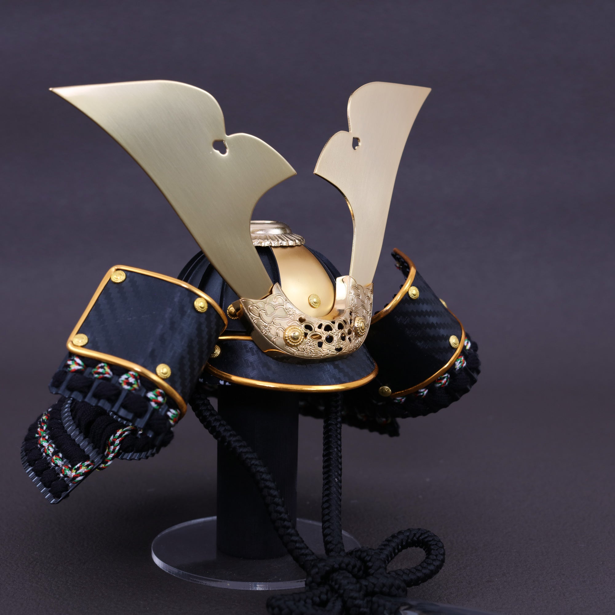 艶を抑えた黒に、やわらかな金がそっと映える兜。