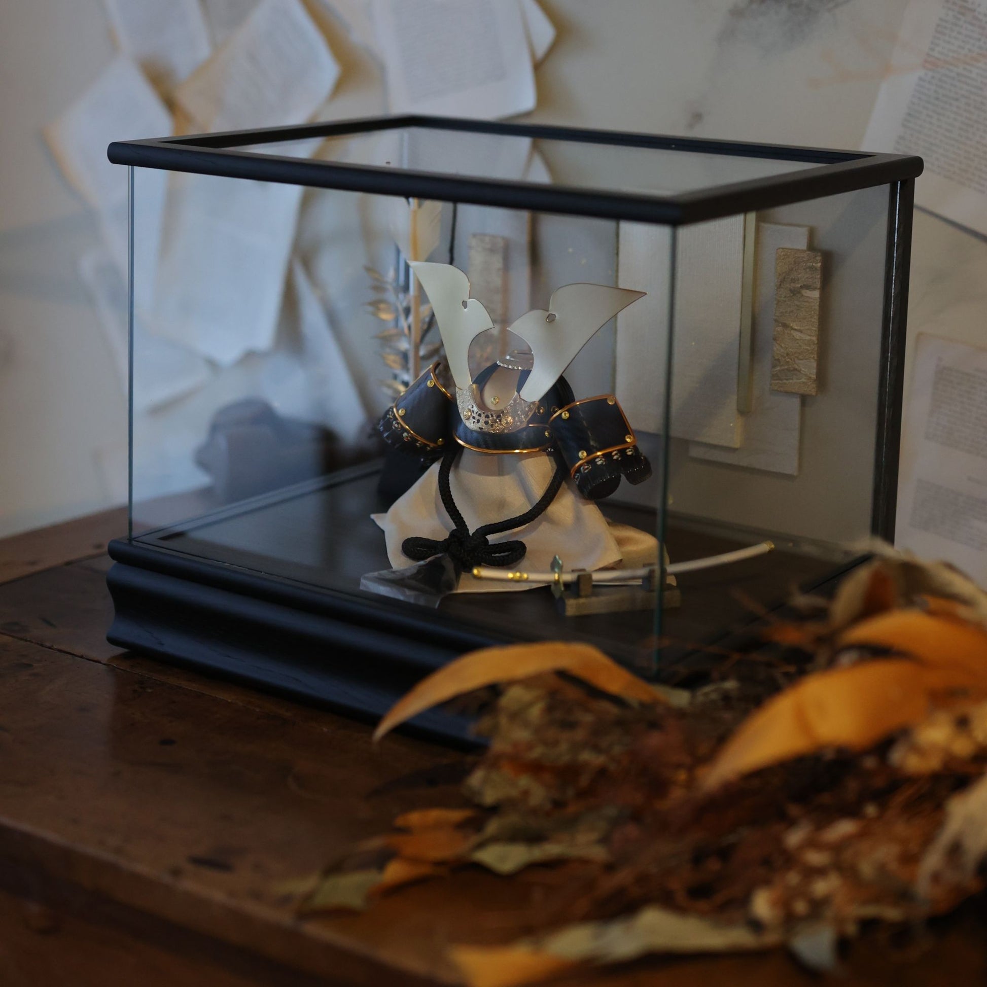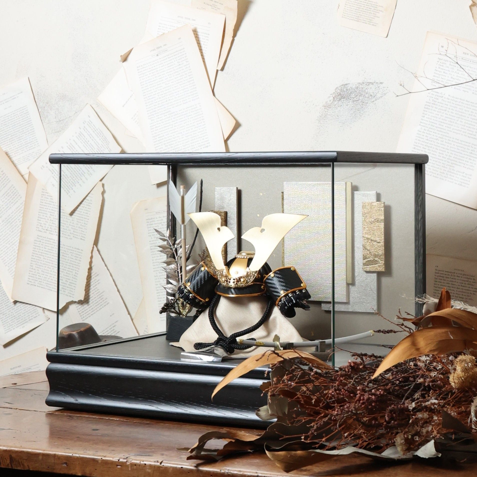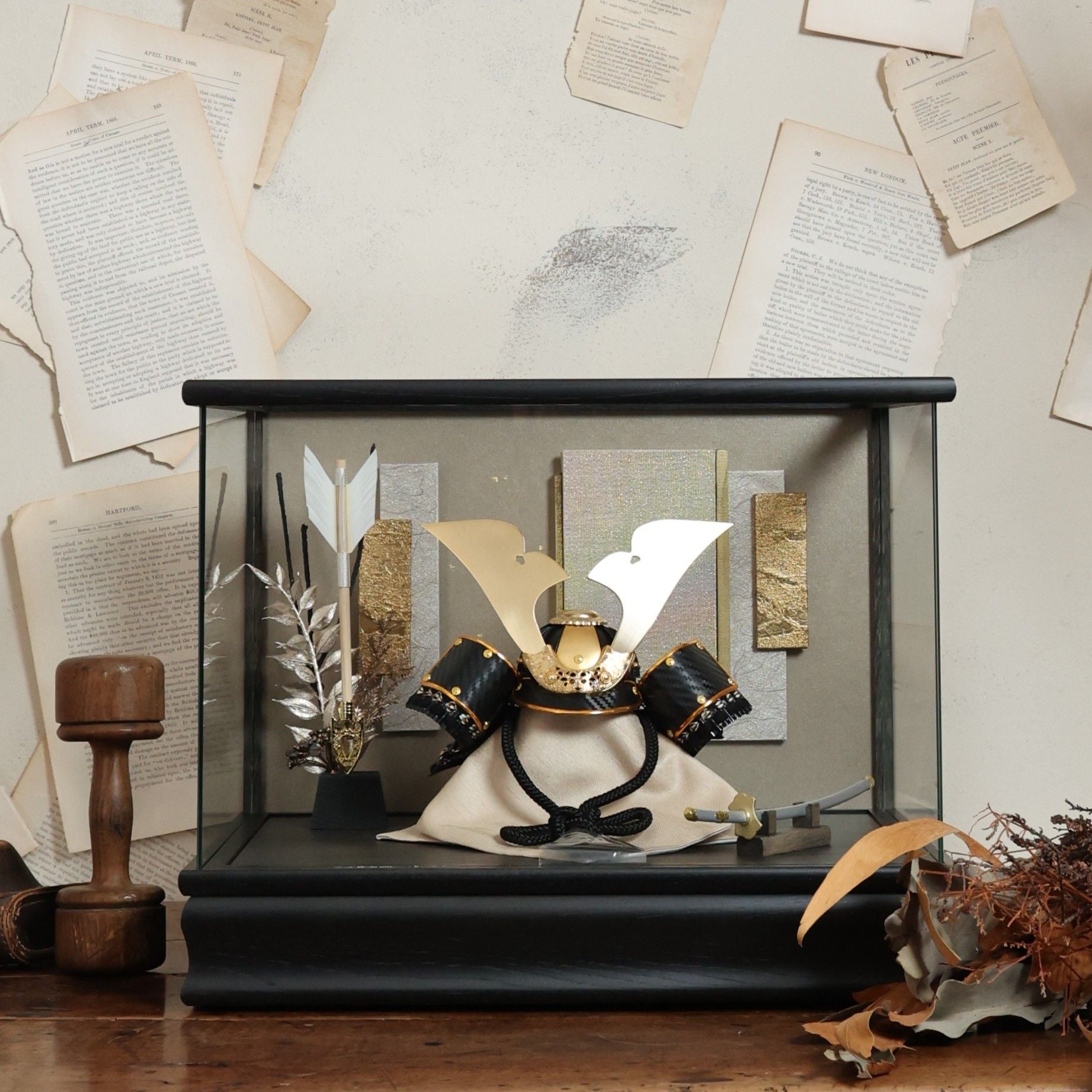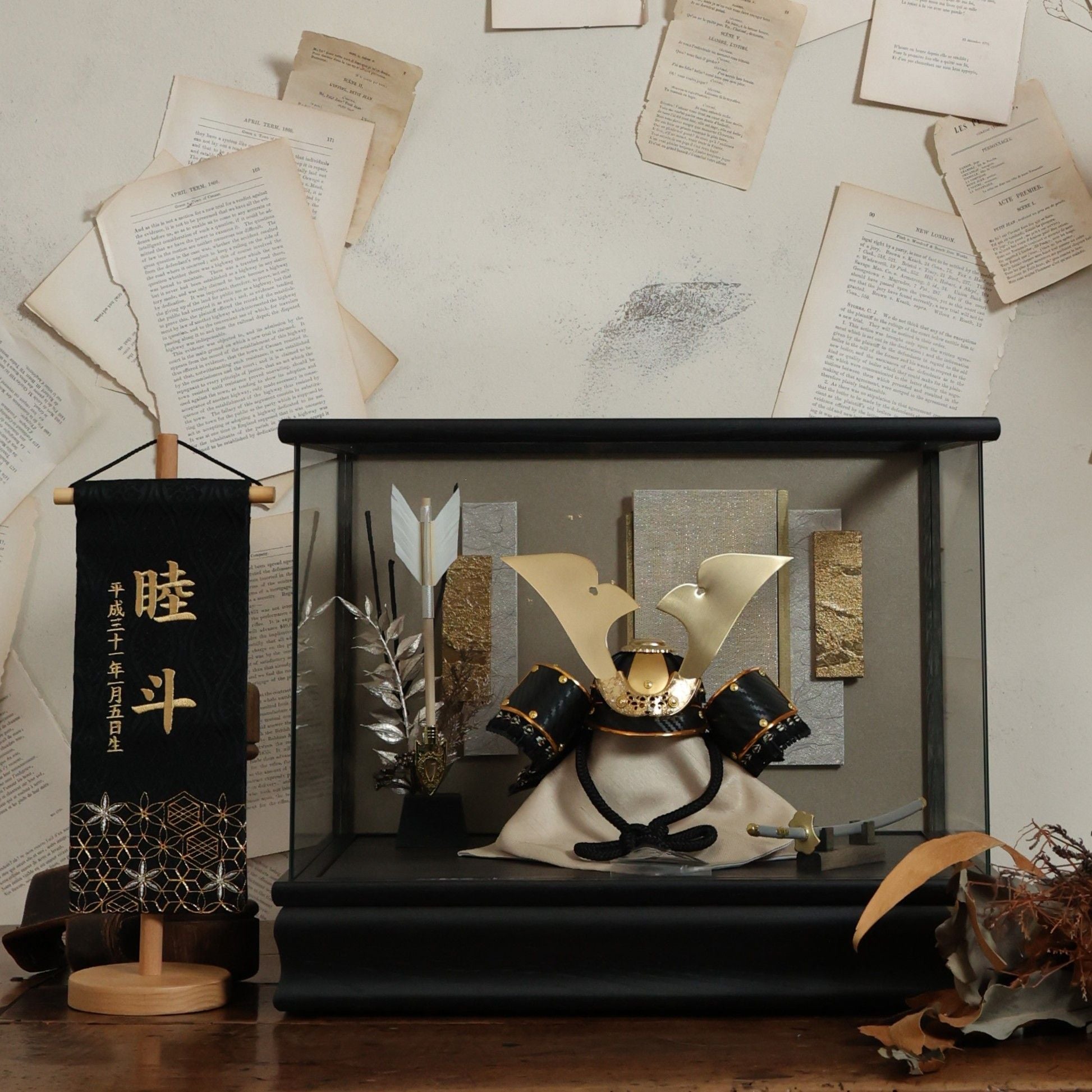 艶を抑えた黒に、やわらかな金がそっと映える兜。