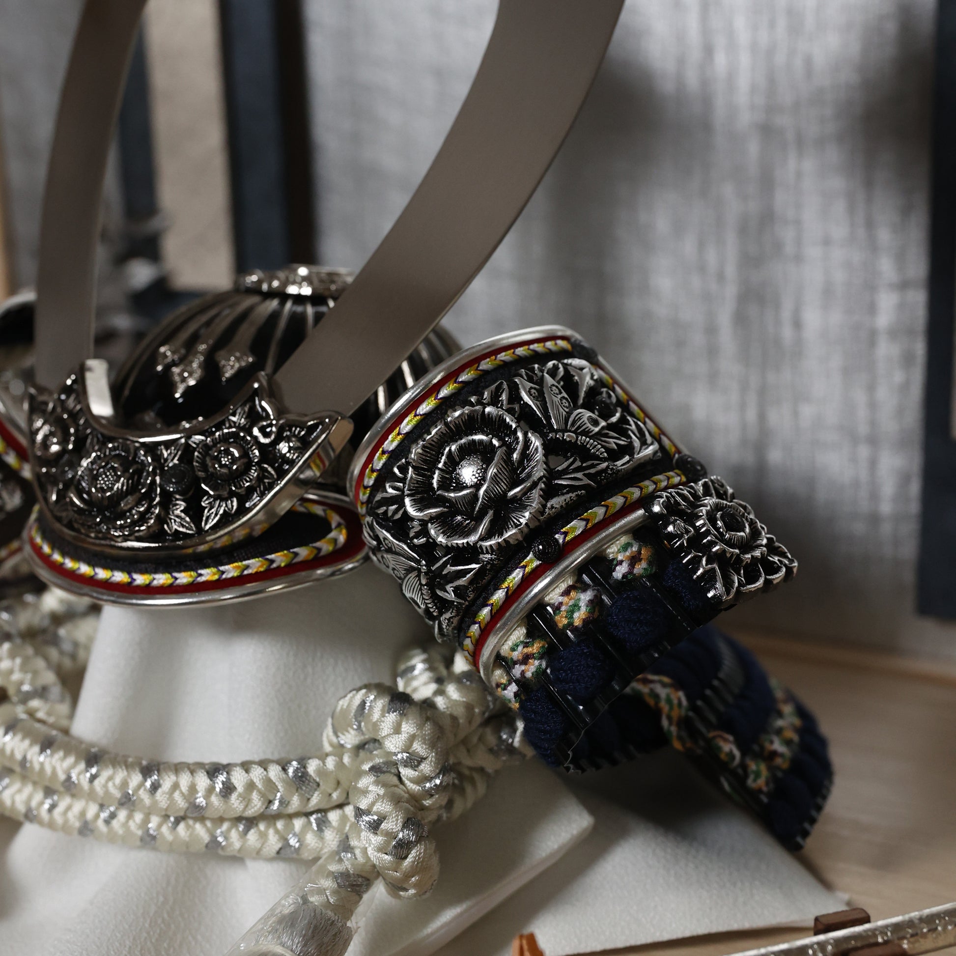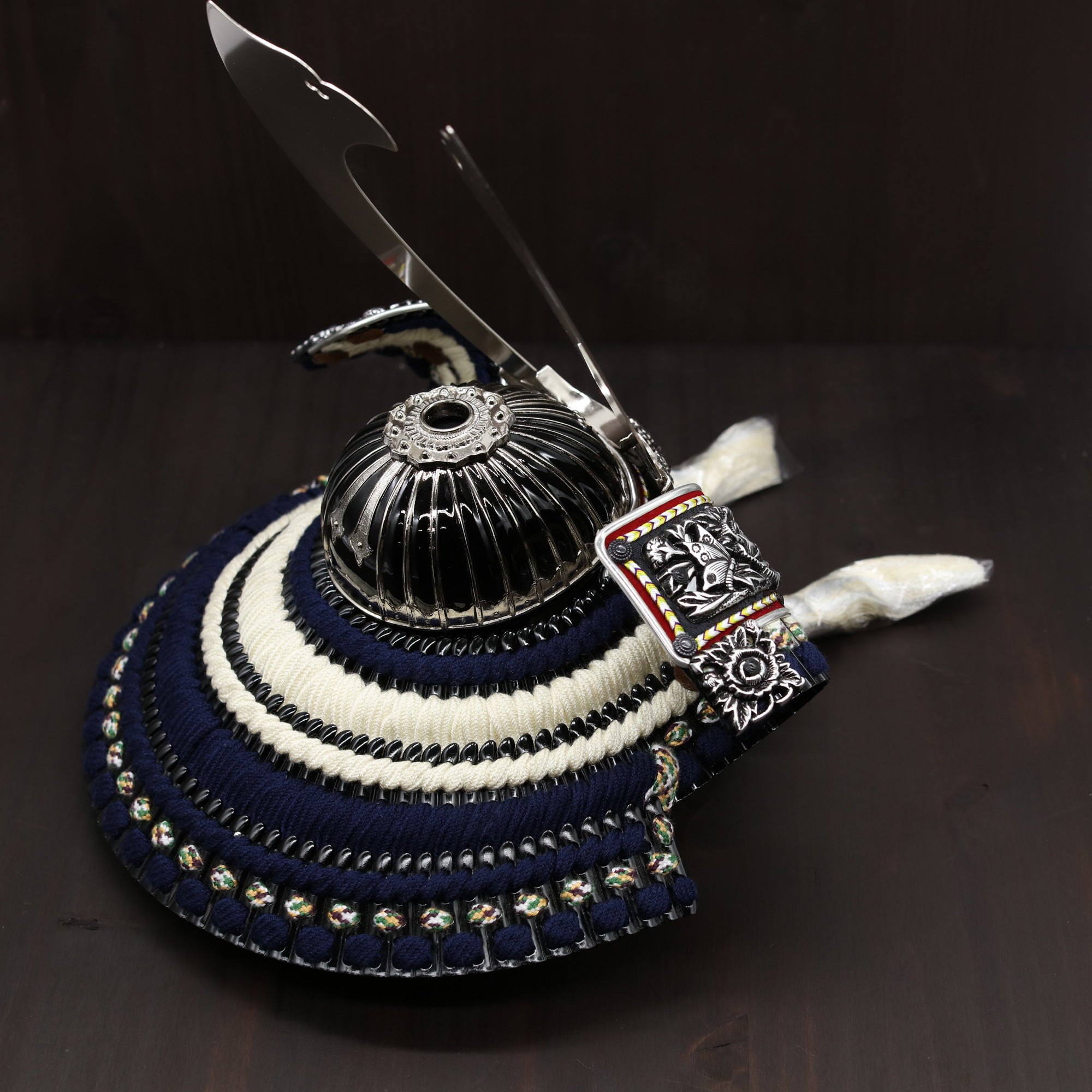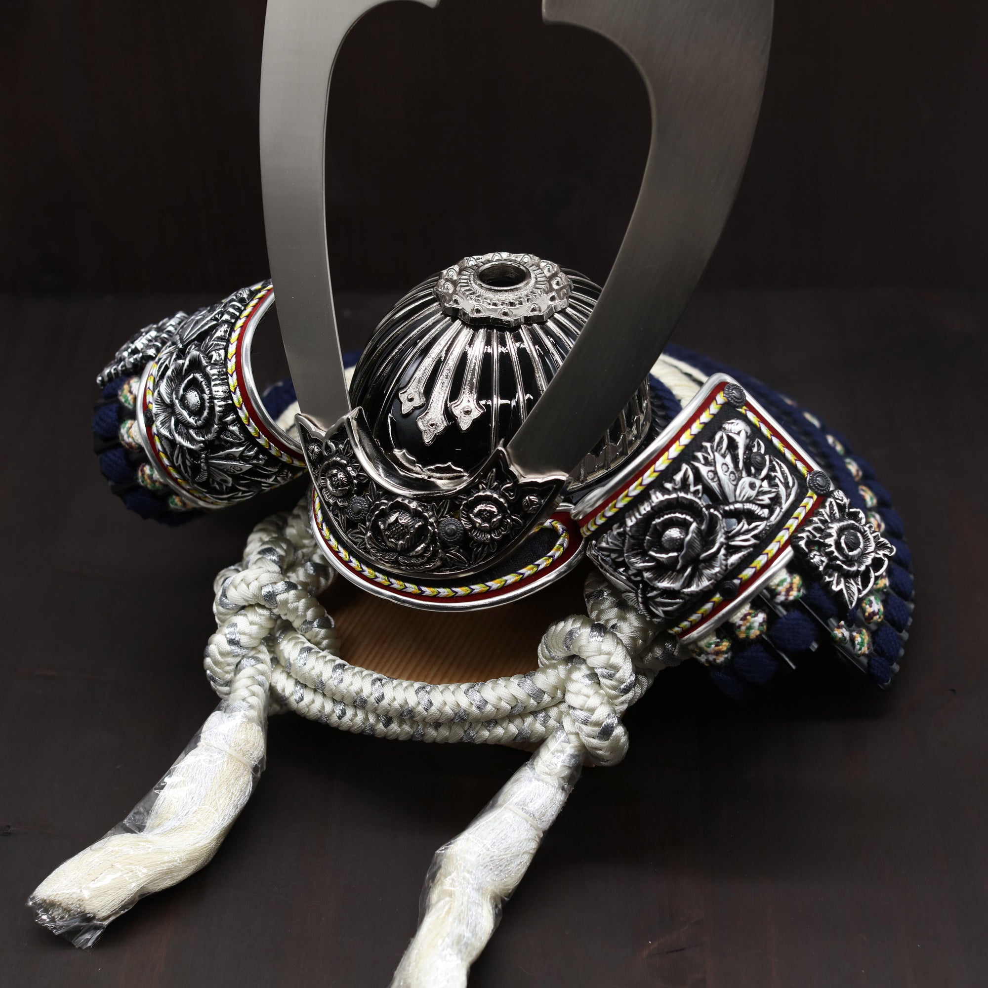 堂々とした大鍬形を、光を抑えた墨銀の表情で仕立てました。