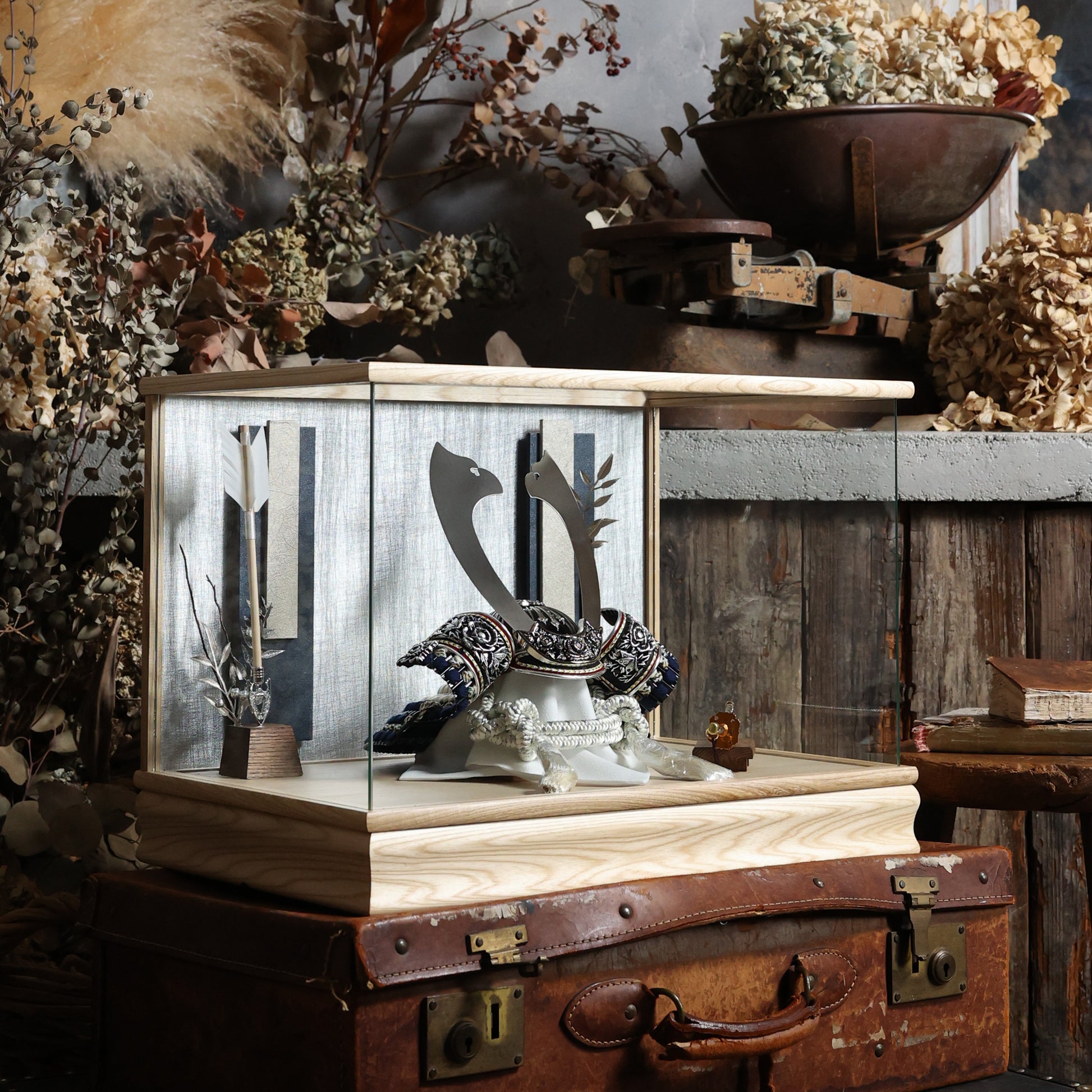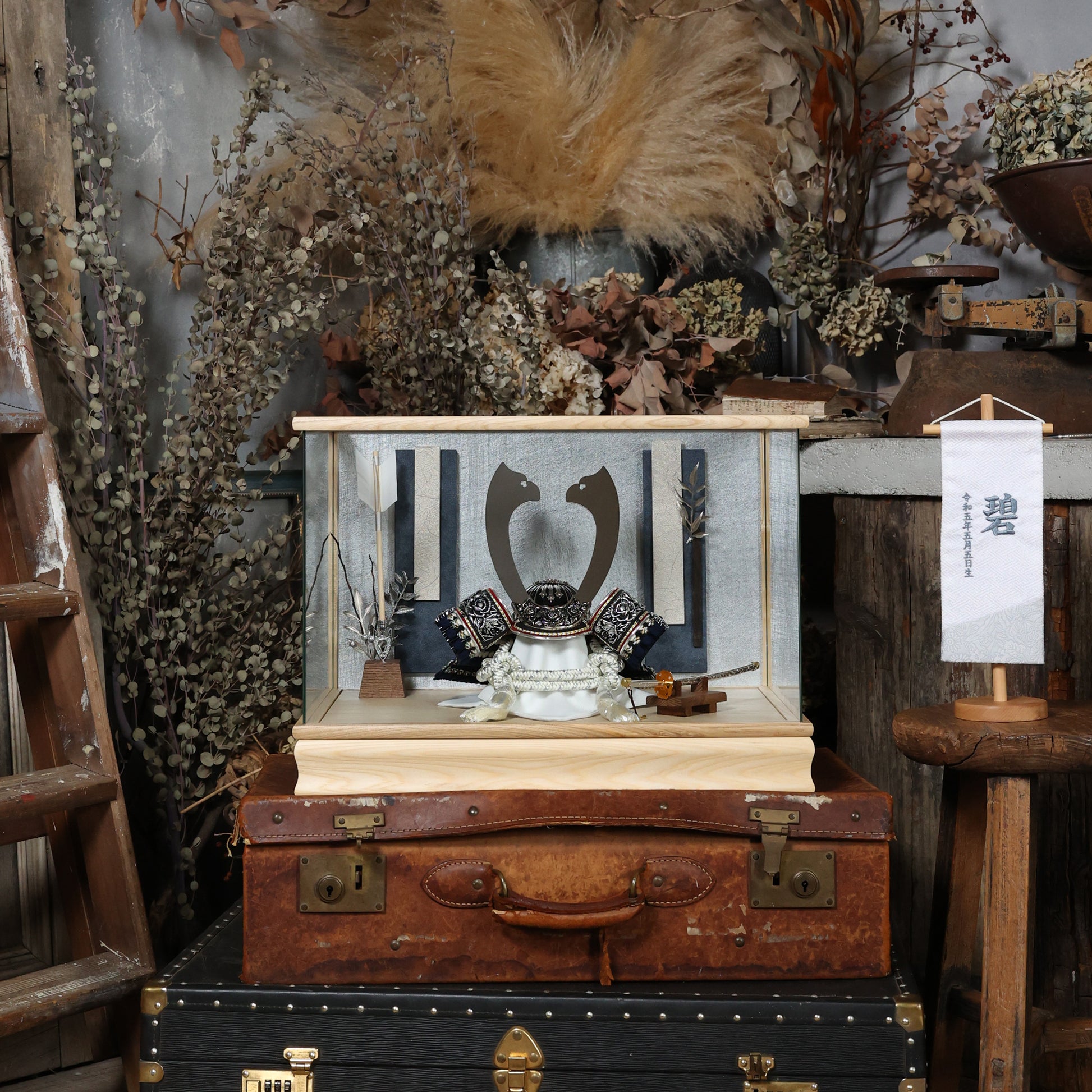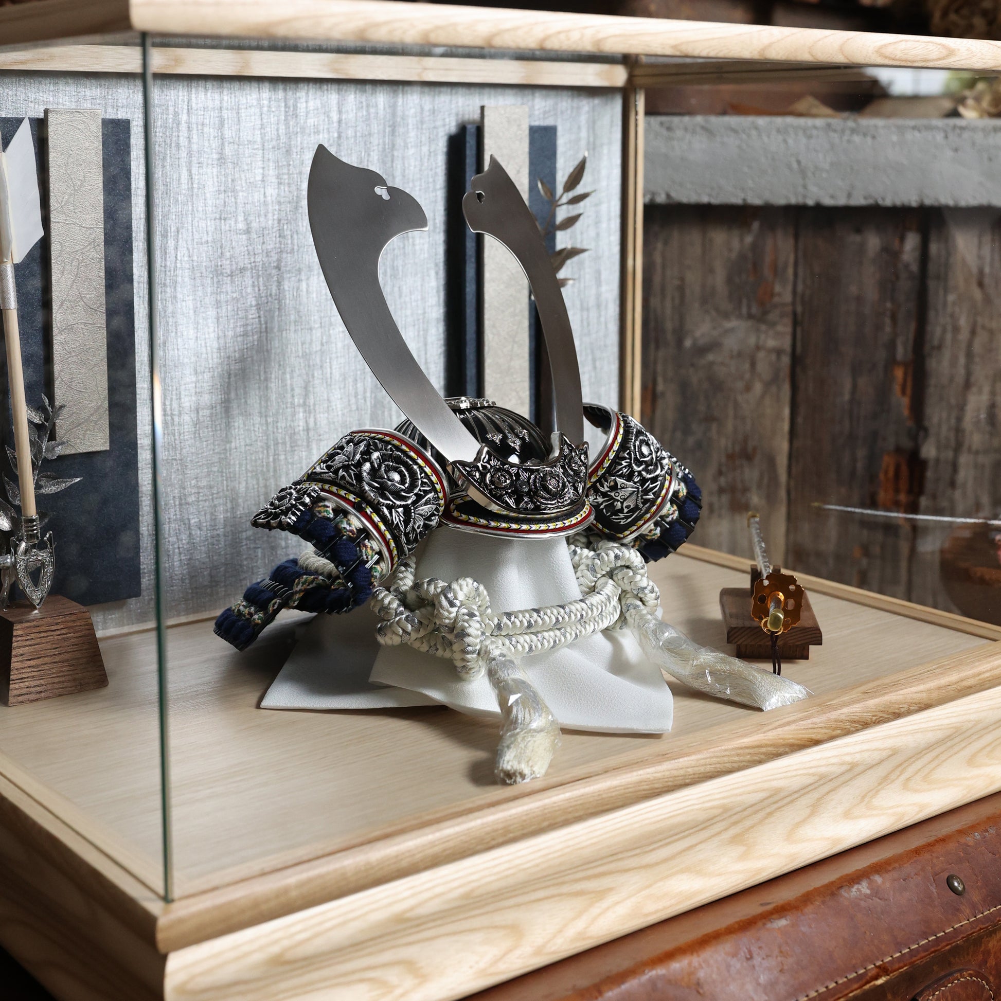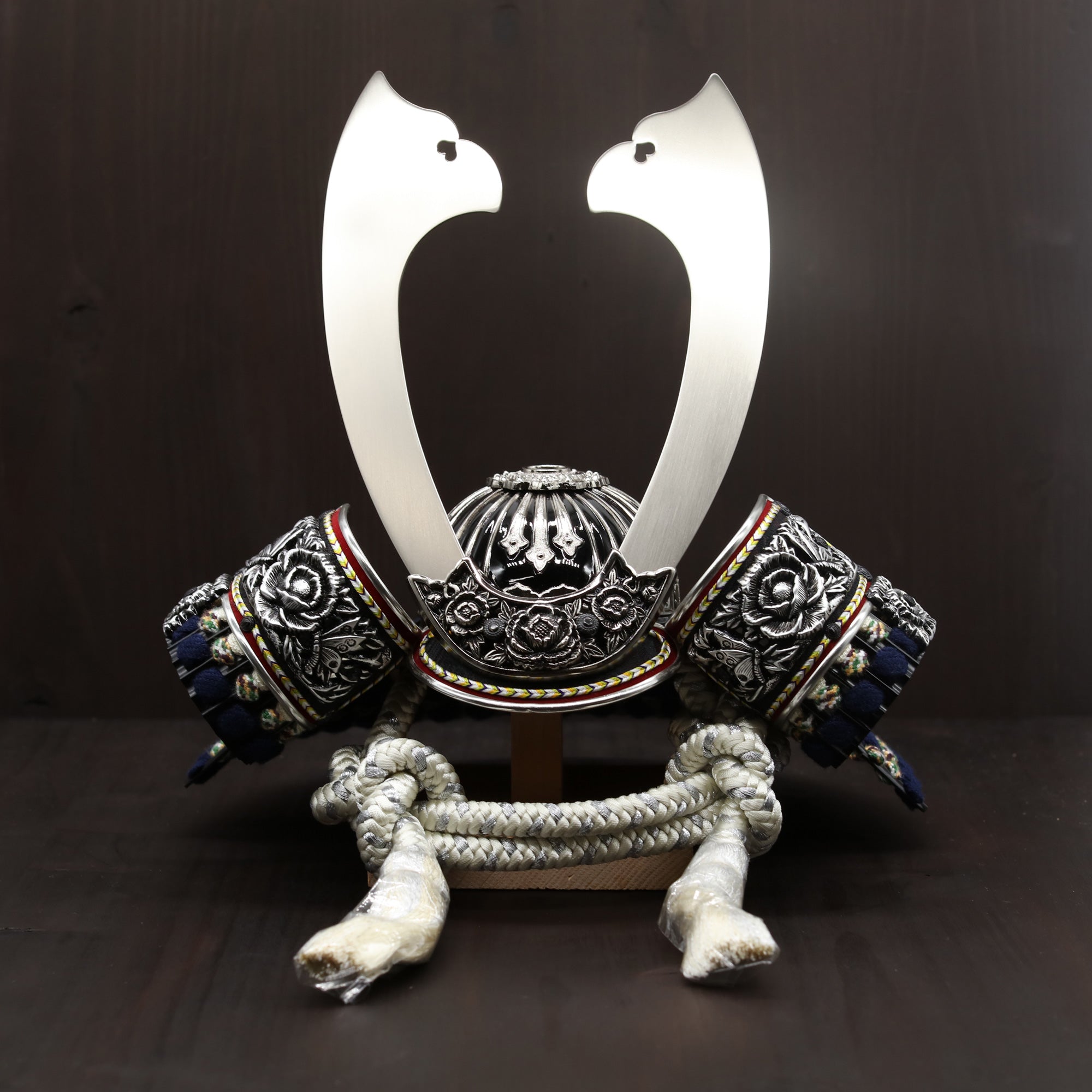 堂々とした大鍬形を、光を抑えた墨銀の表情で仕立てました。