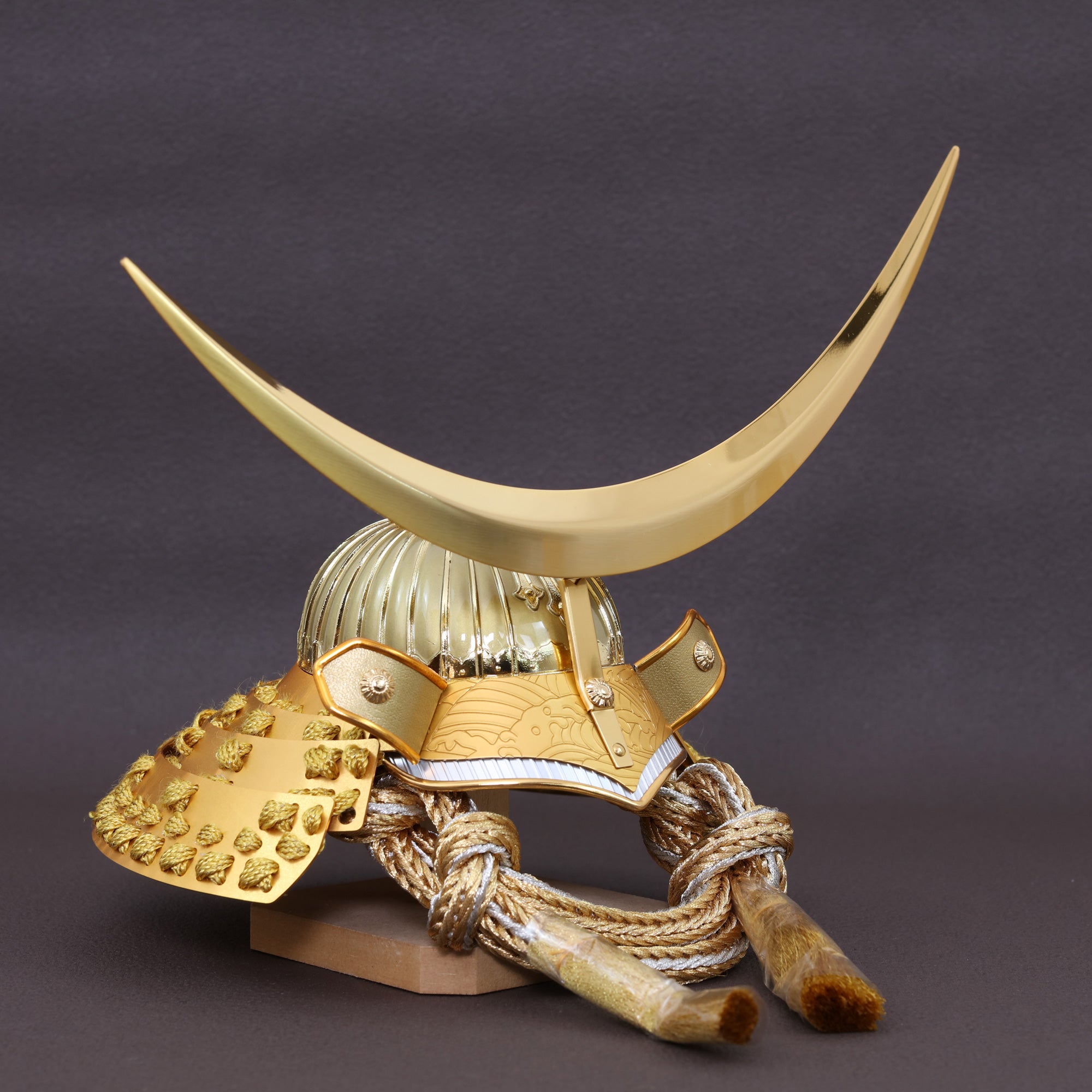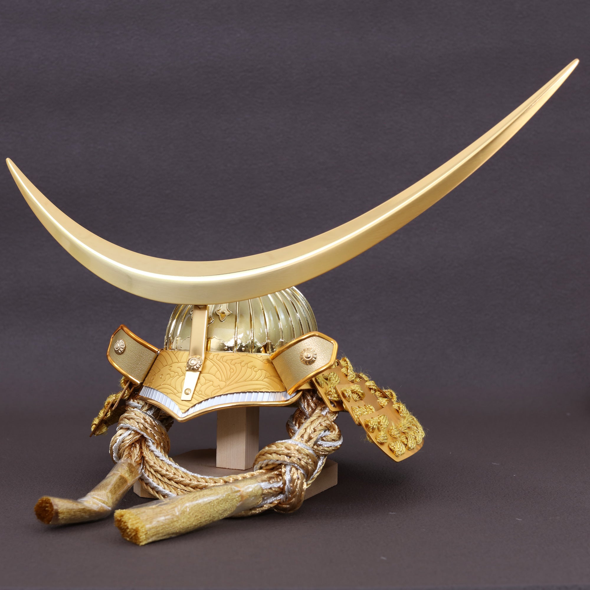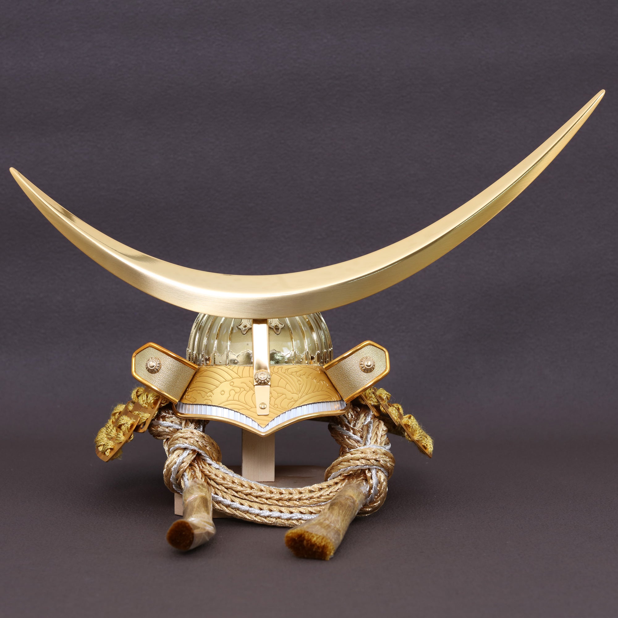 大きく弧を描く三日月鍬形を、深みのある金色で仕立てました。