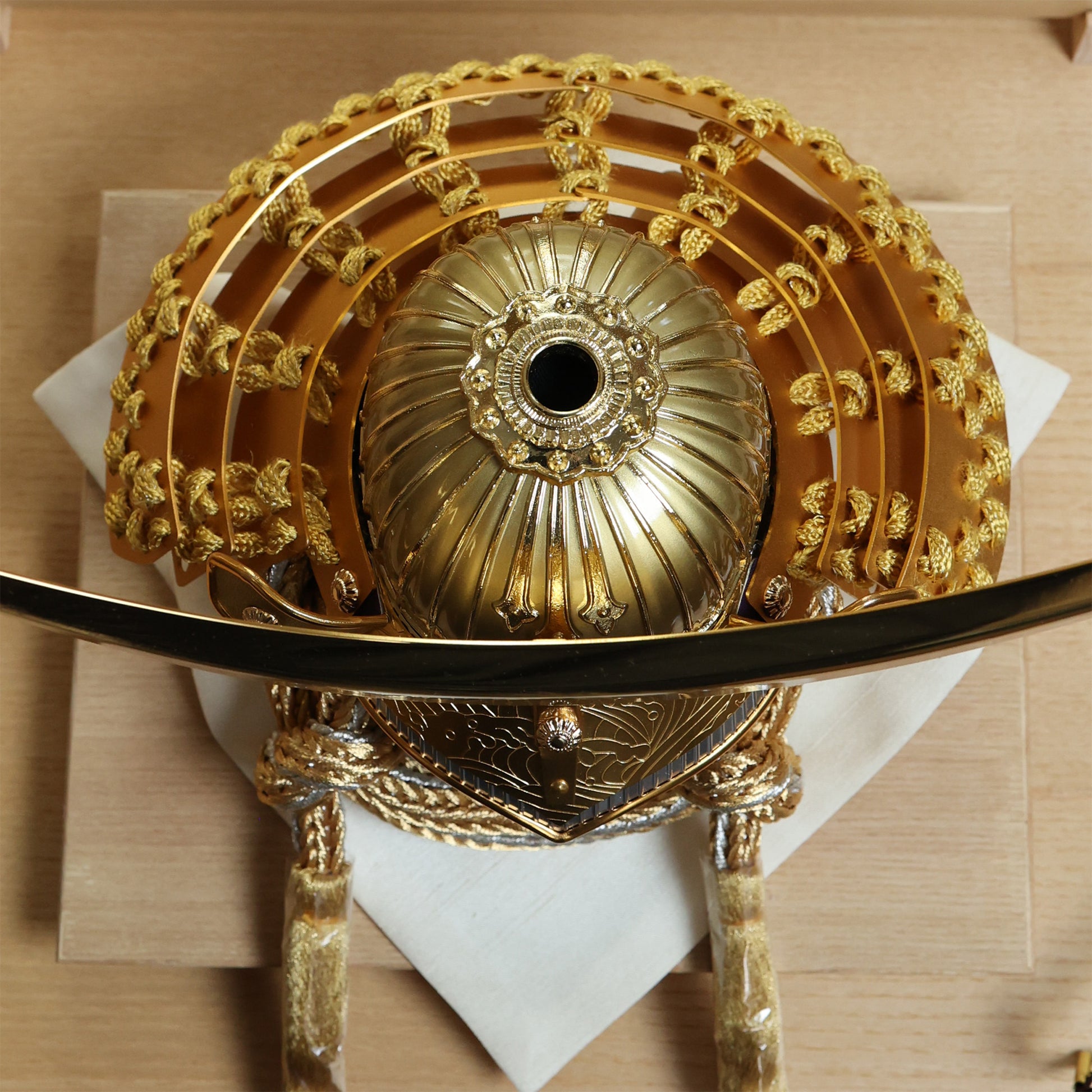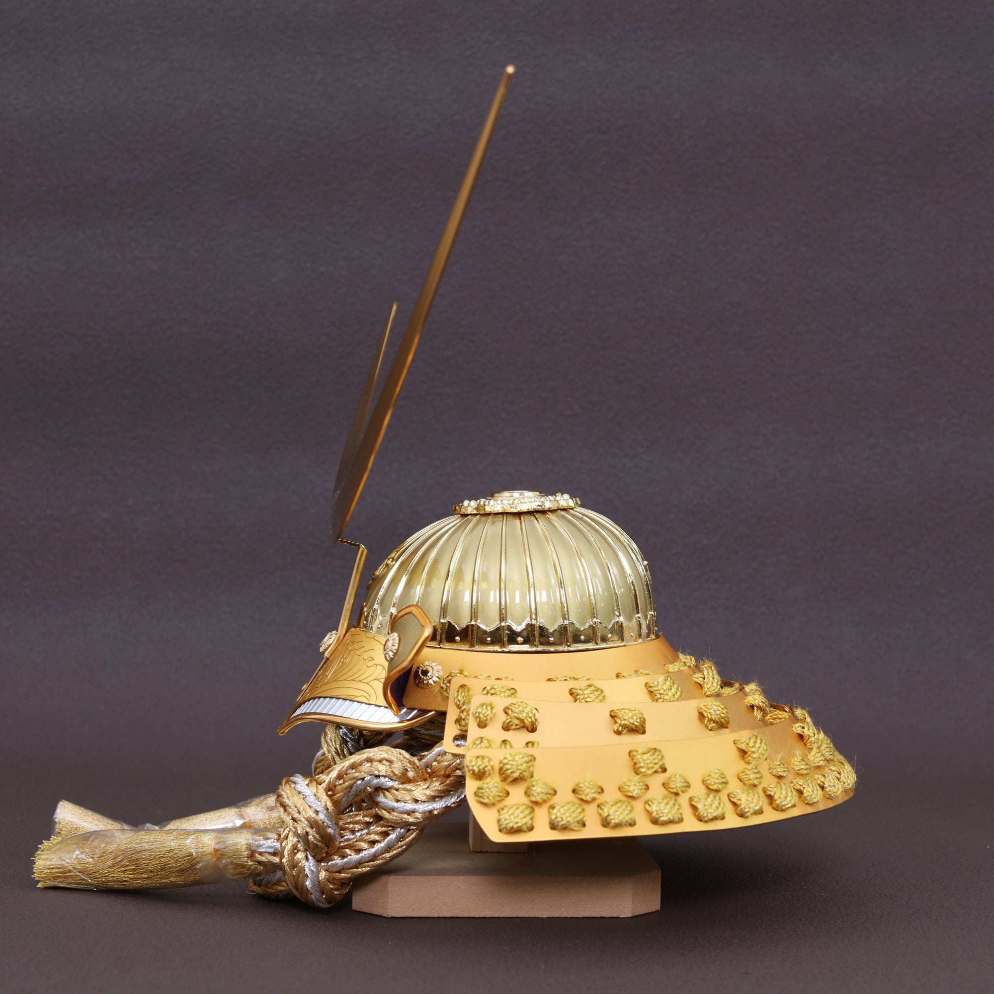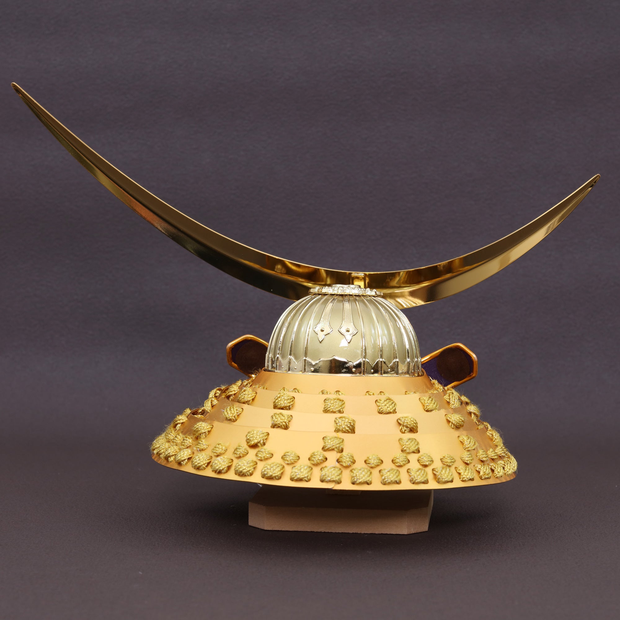 大きく弧を描く三日月鍬形を、深みのある金色で仕立てました。