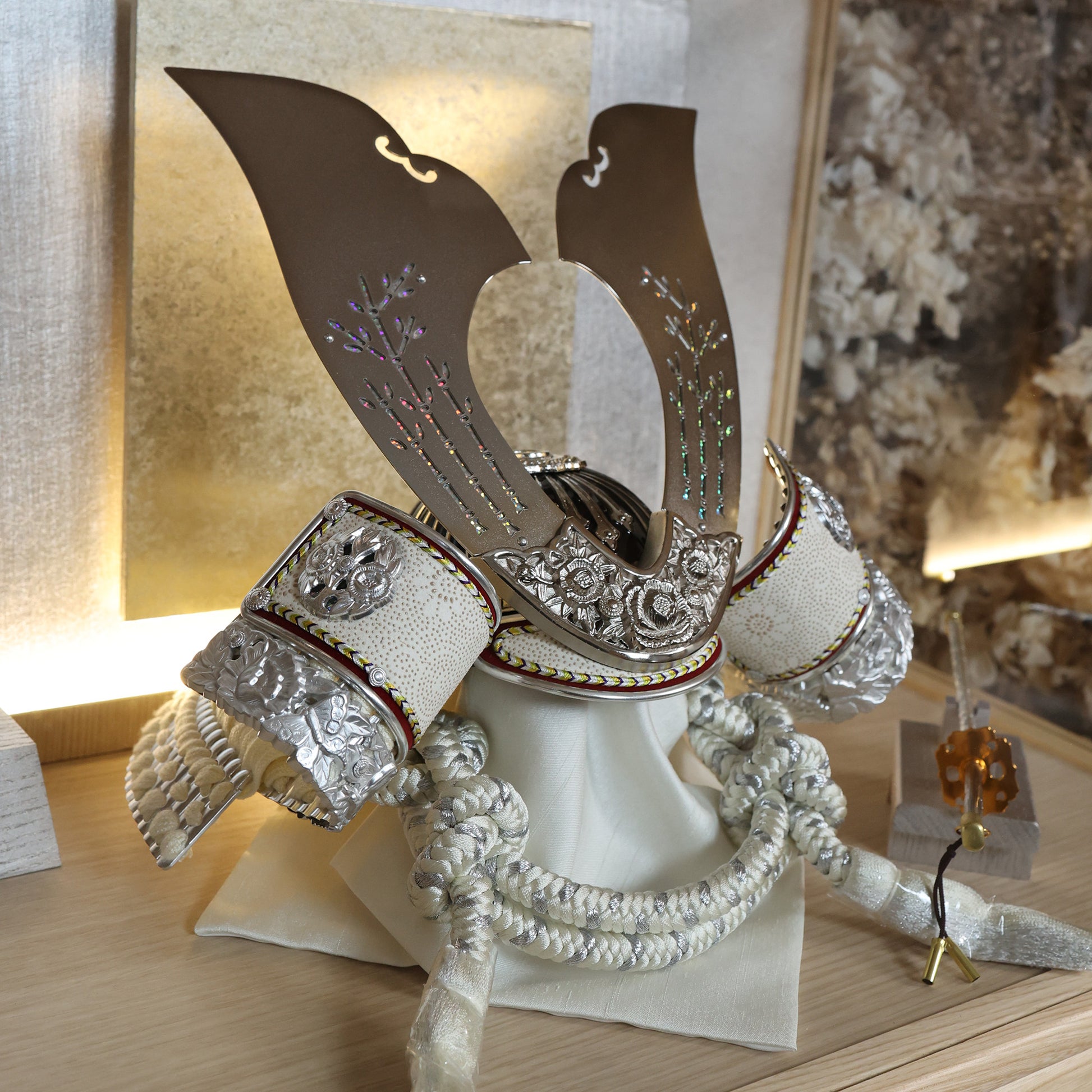 兜に使用している糸はすべて正絹を用いており、上質な素材感と伝統的な美しさを兼ね備えています。正絹特有の柔らかさと光沢が、兜全体に品格と華やかさを与え、細部にまでこだわった仕上がりを実現しています。伝統工芸にふさわしい高品質な素材で、格調高い逸品となっています。