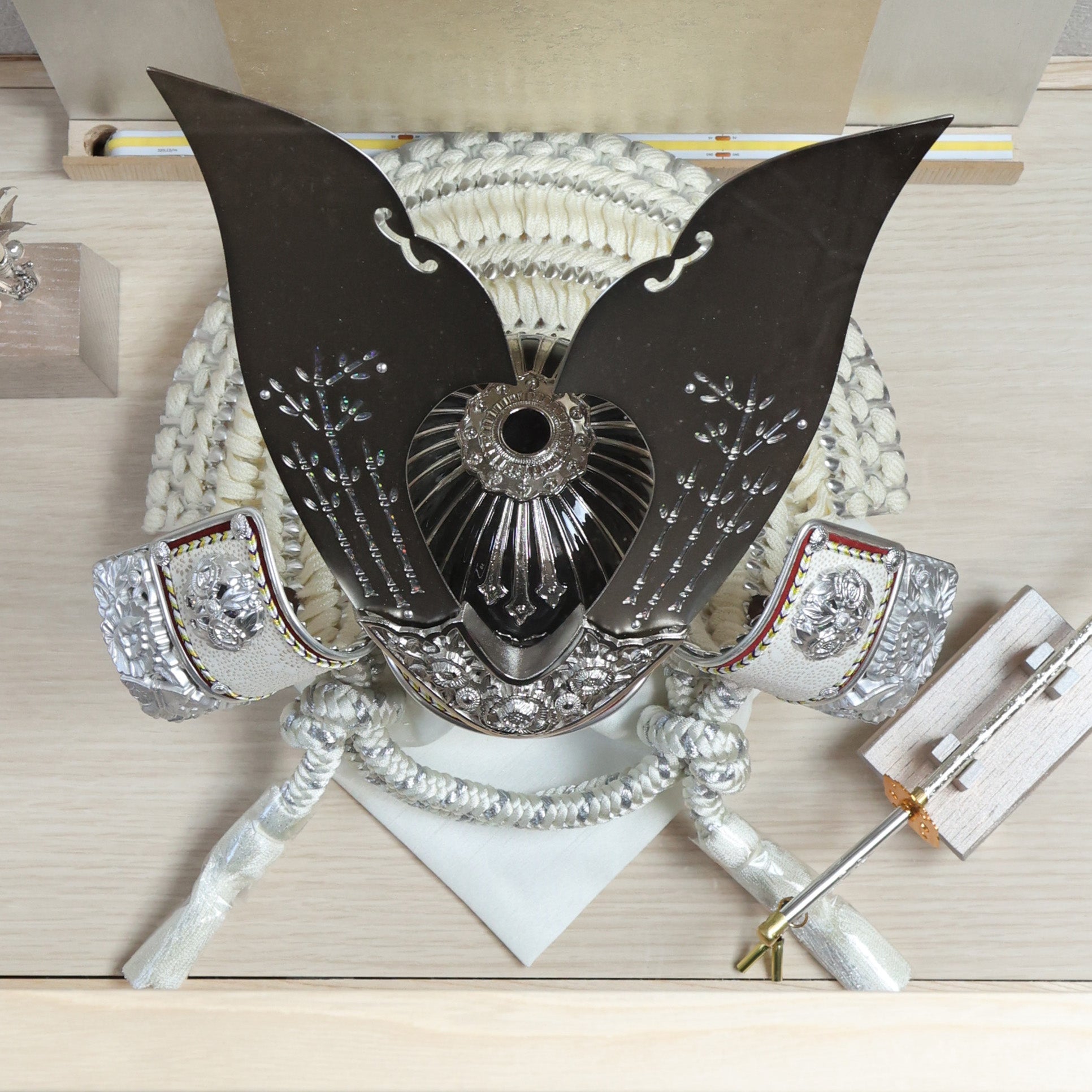 堂々とした大鍬形を、深みのある墨銀の表情で仕立てました。