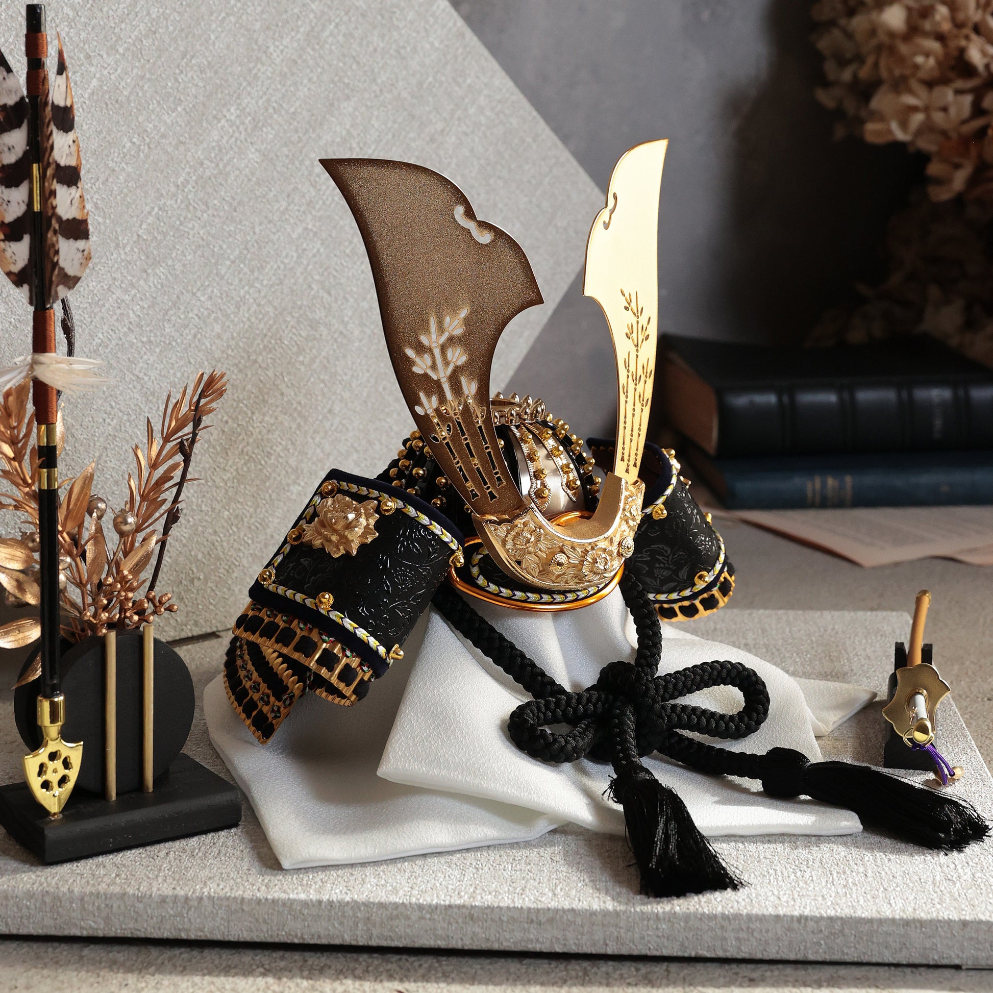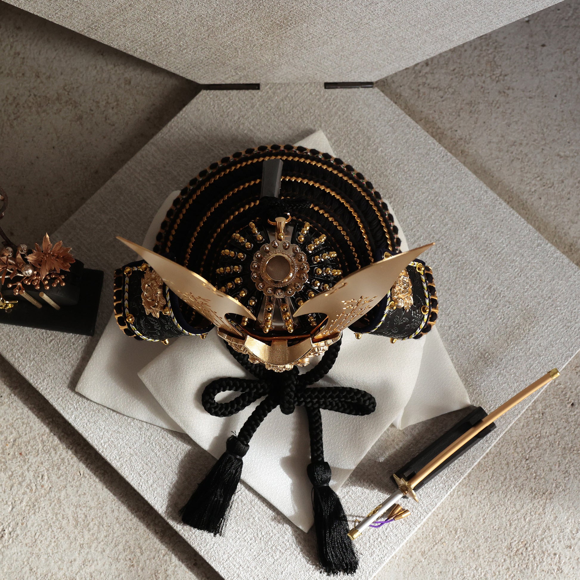 透かし彫りの大鍬形。光を纏う、静かな華やぎ。