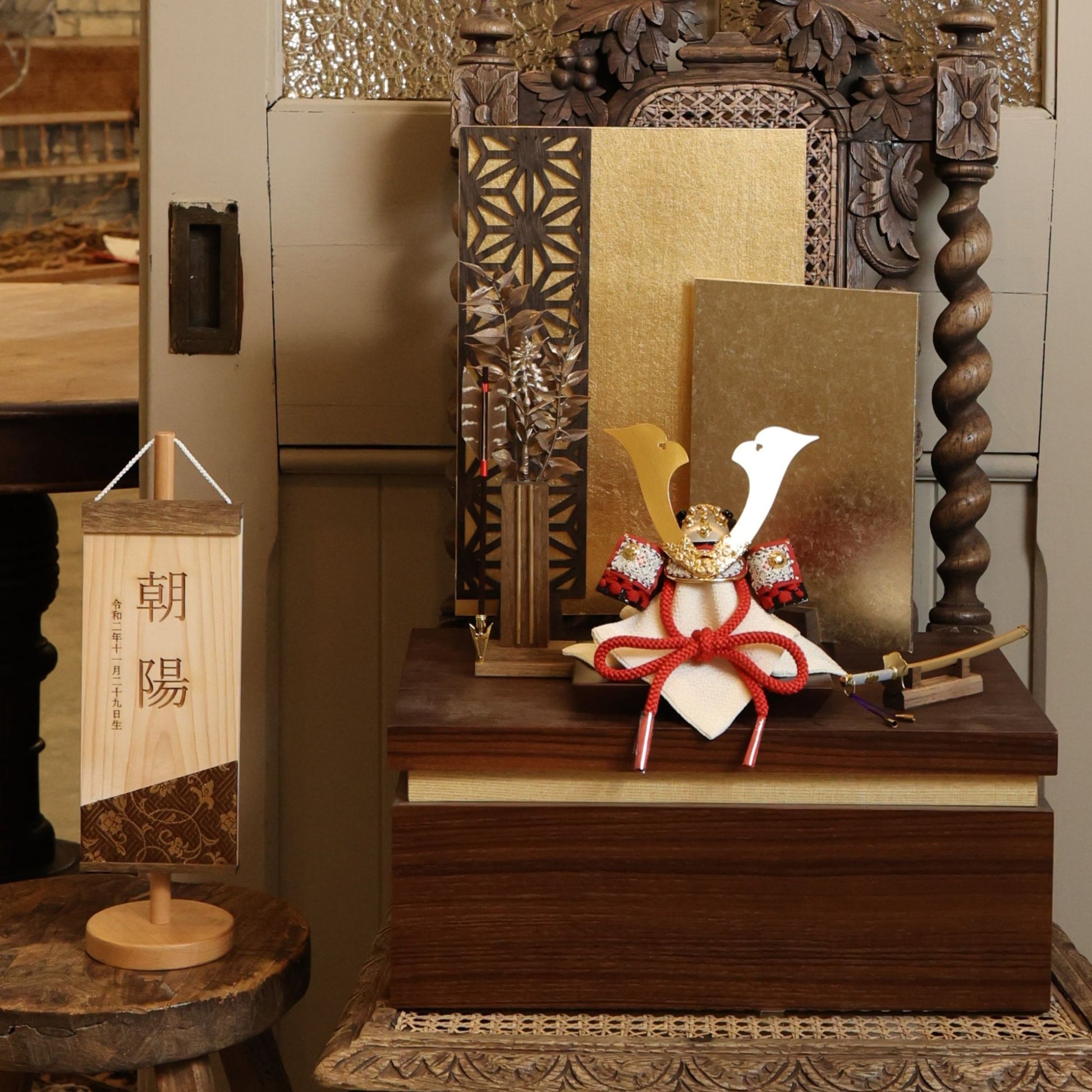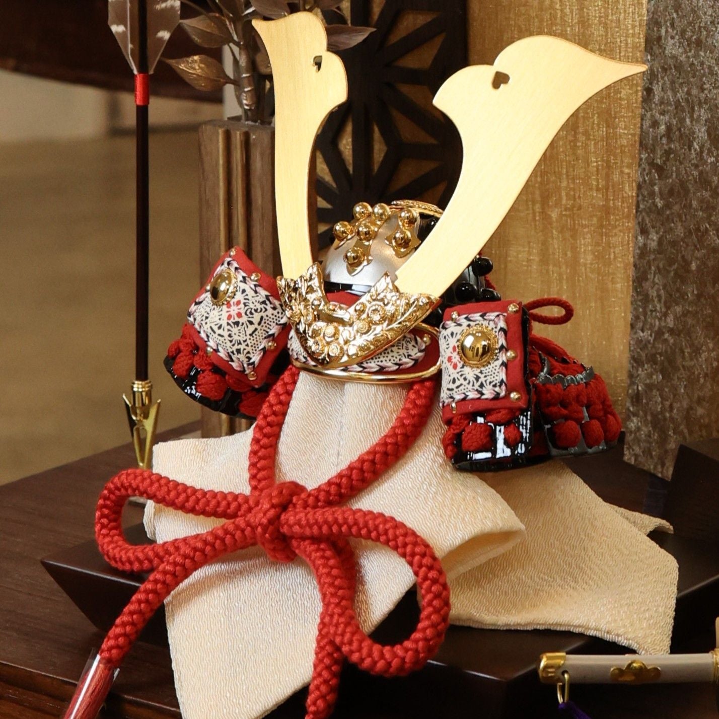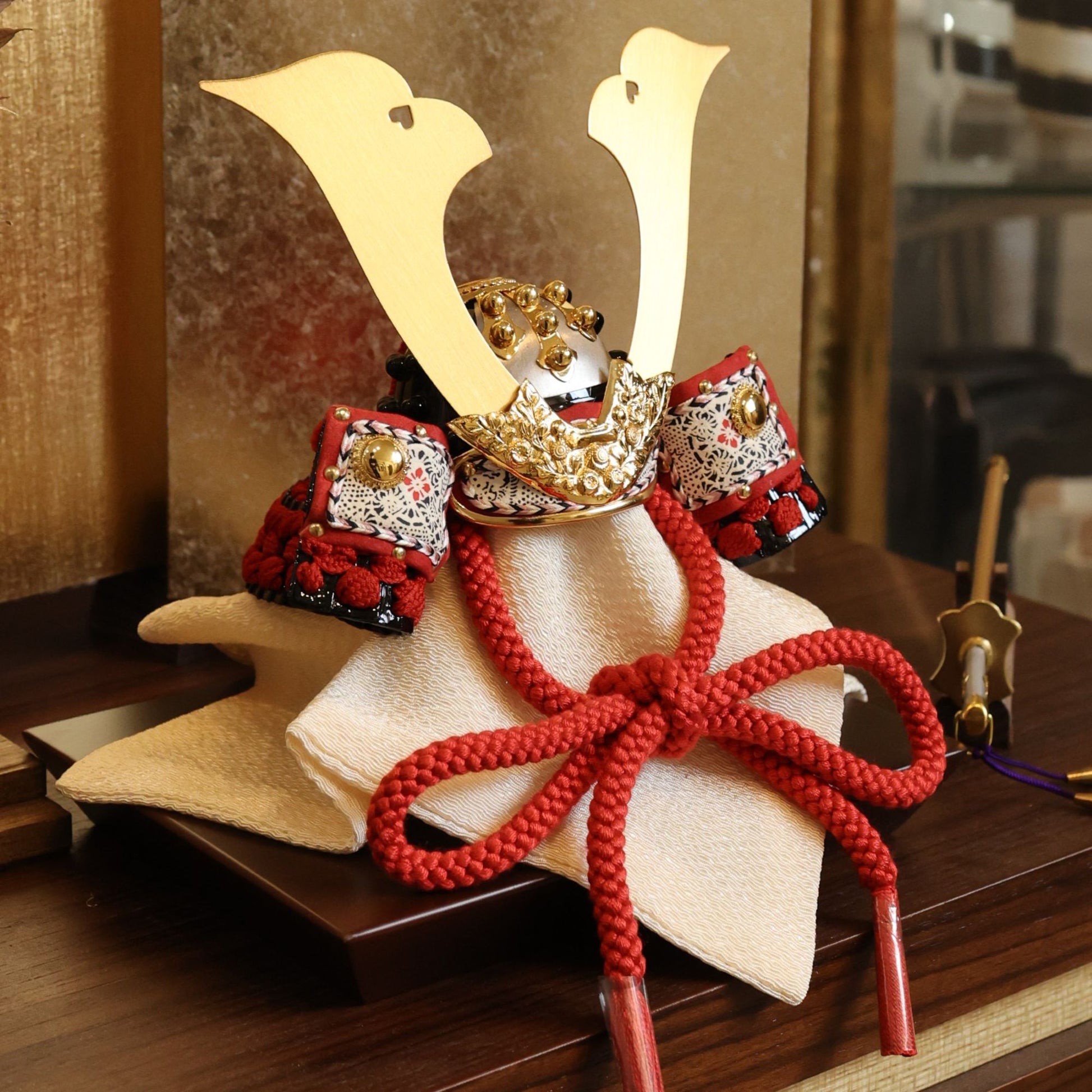 花弁の陰影が光を受け、兜に静かな威厳と格調を与えます。