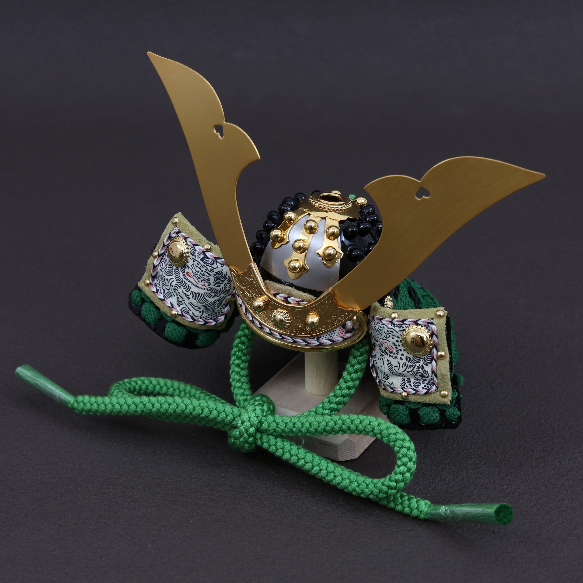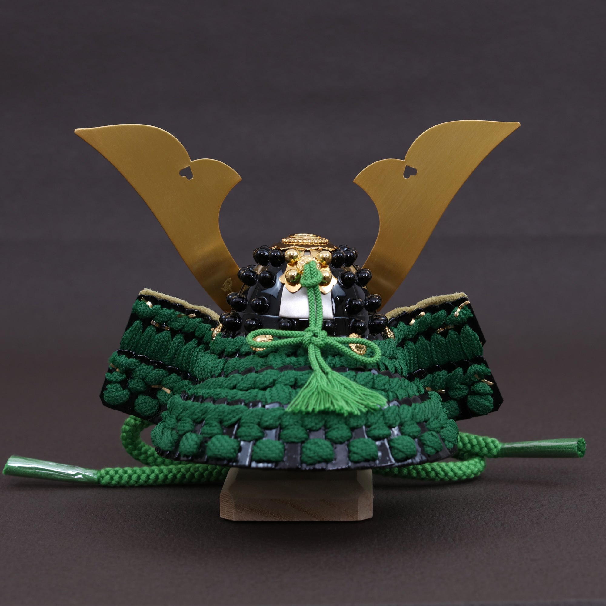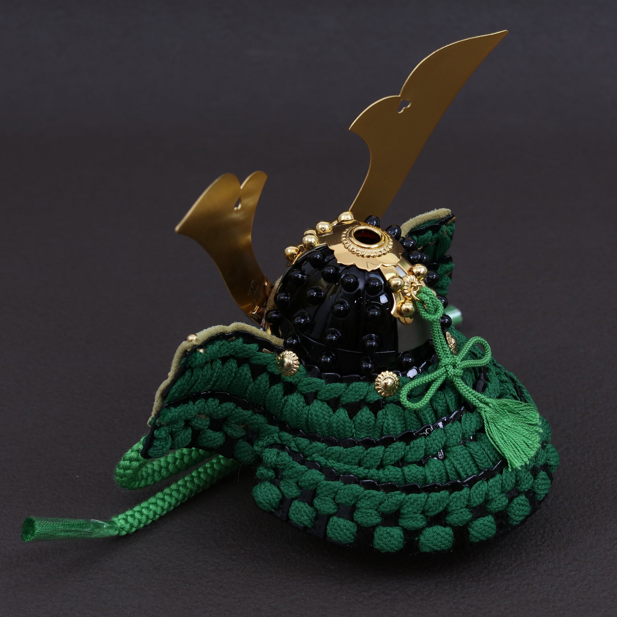 黒と緑の引き締まった配色を格上げし、飾った瞬間に格式が伝わる鍬形です。
