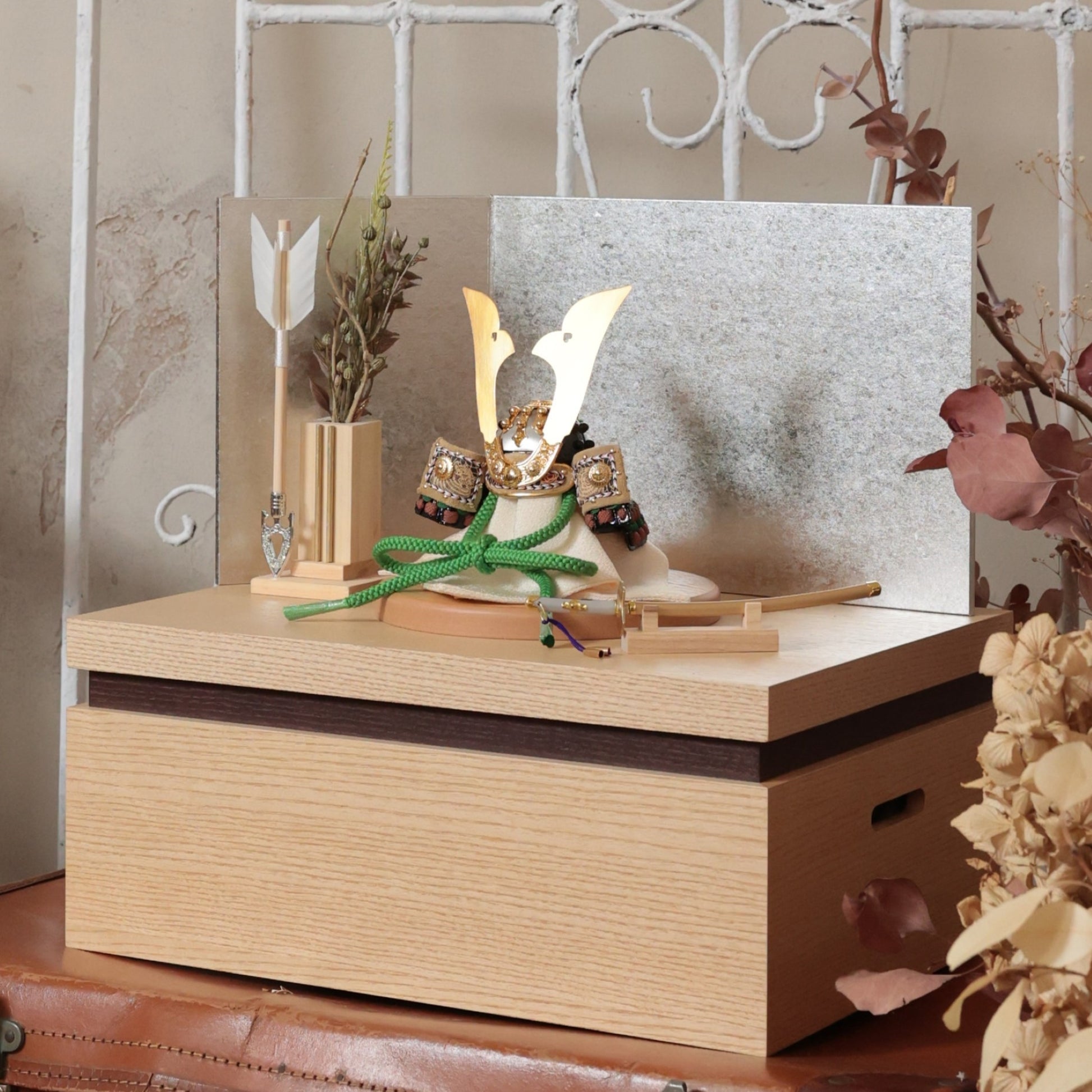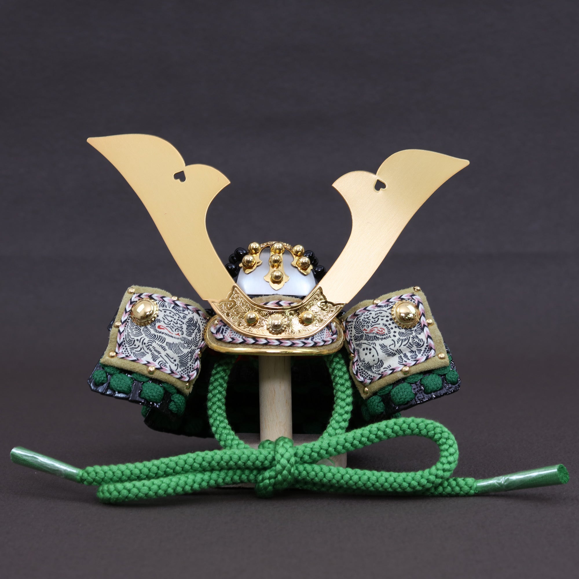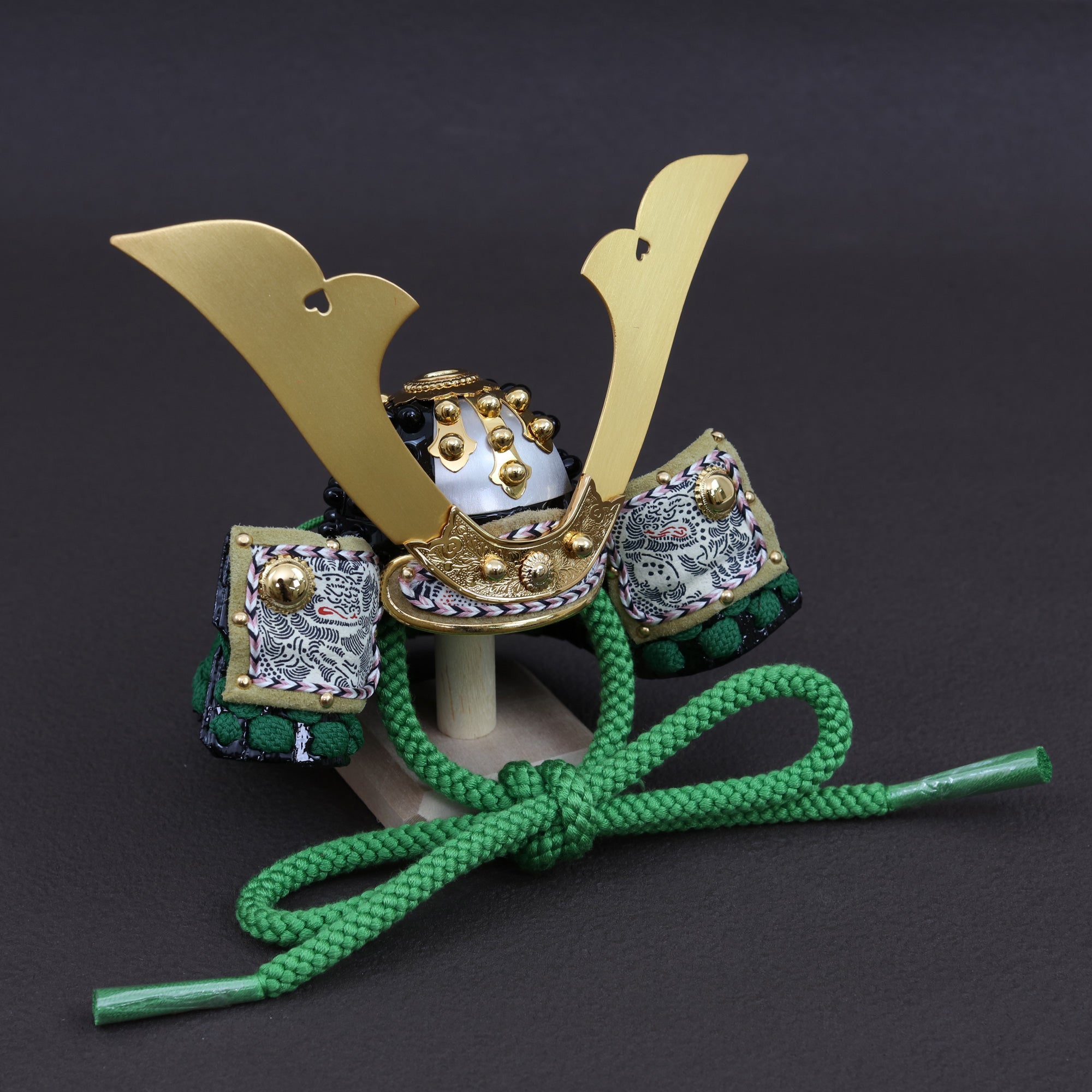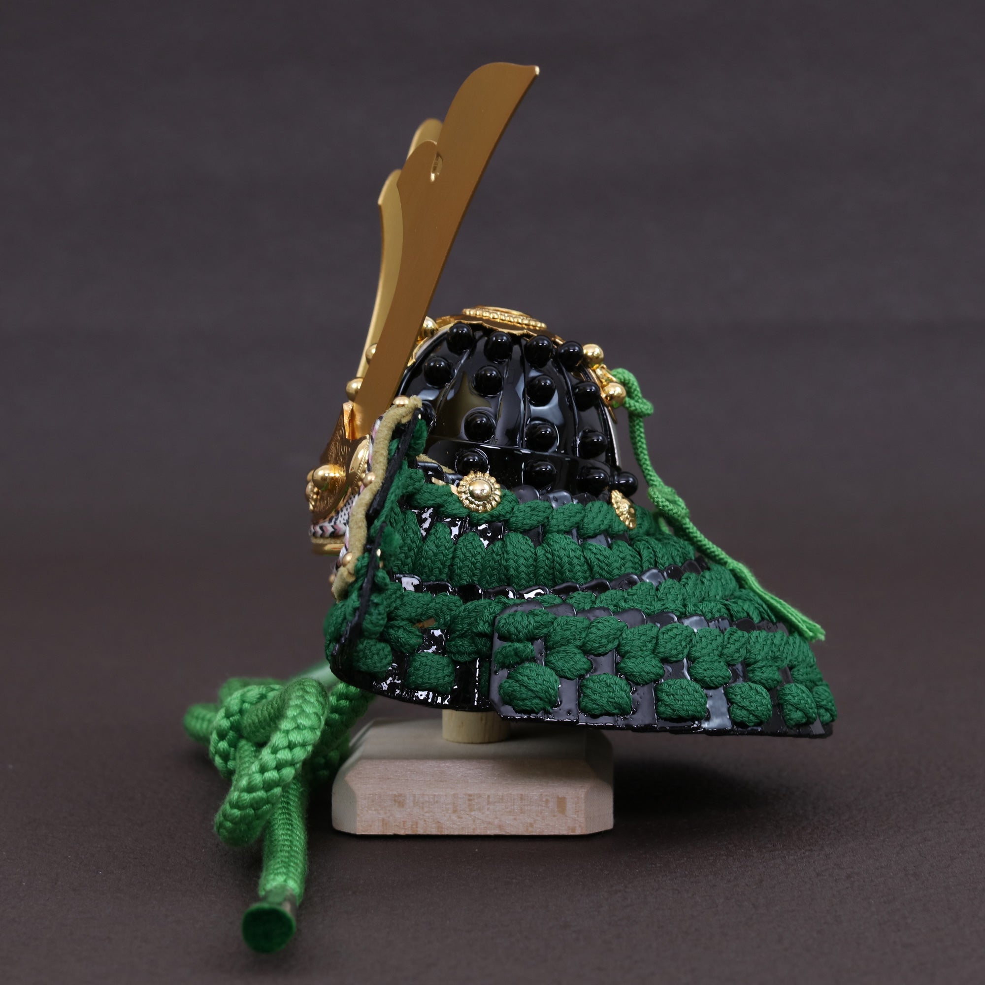 黒と緑の引き締まった配色を格上げし、飾った瞬間に格式が伝わる鍬形です。
