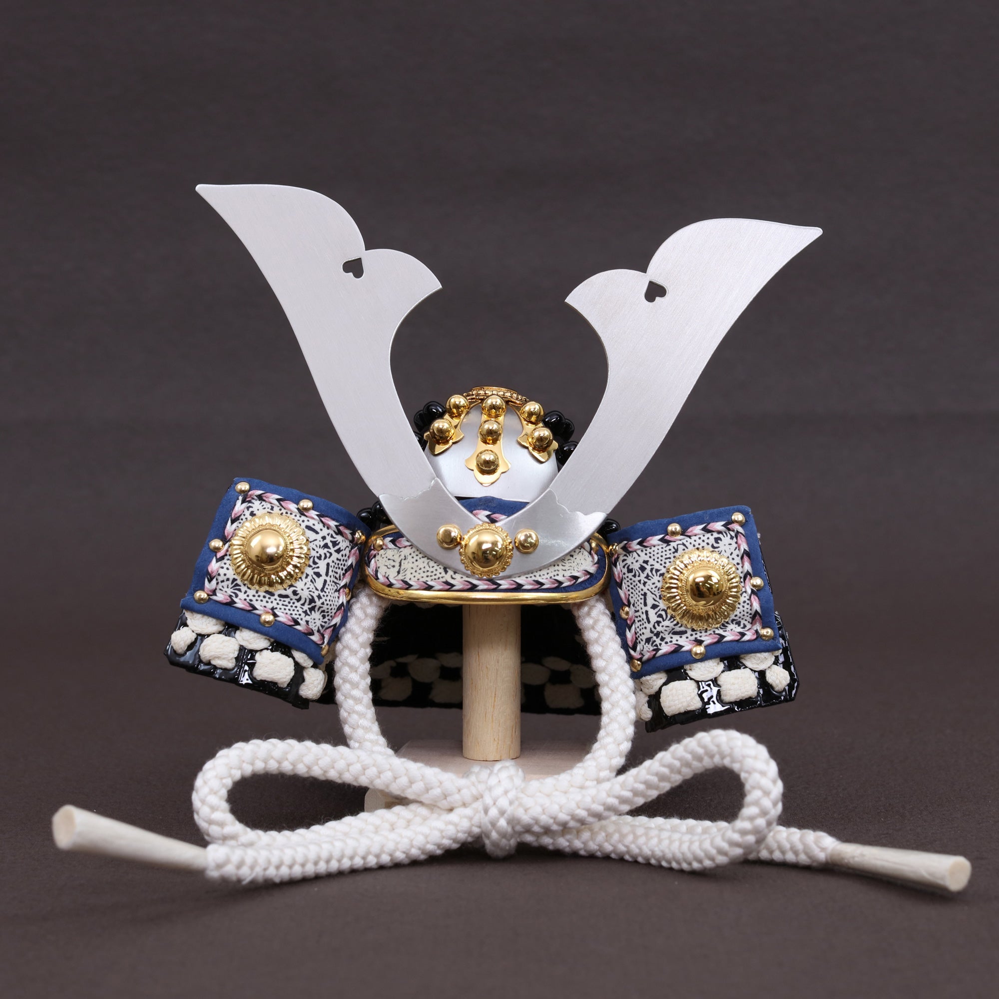 兜の印象を決める鍬形には、堂々とした幅を持つ「大鍬形」を採用。