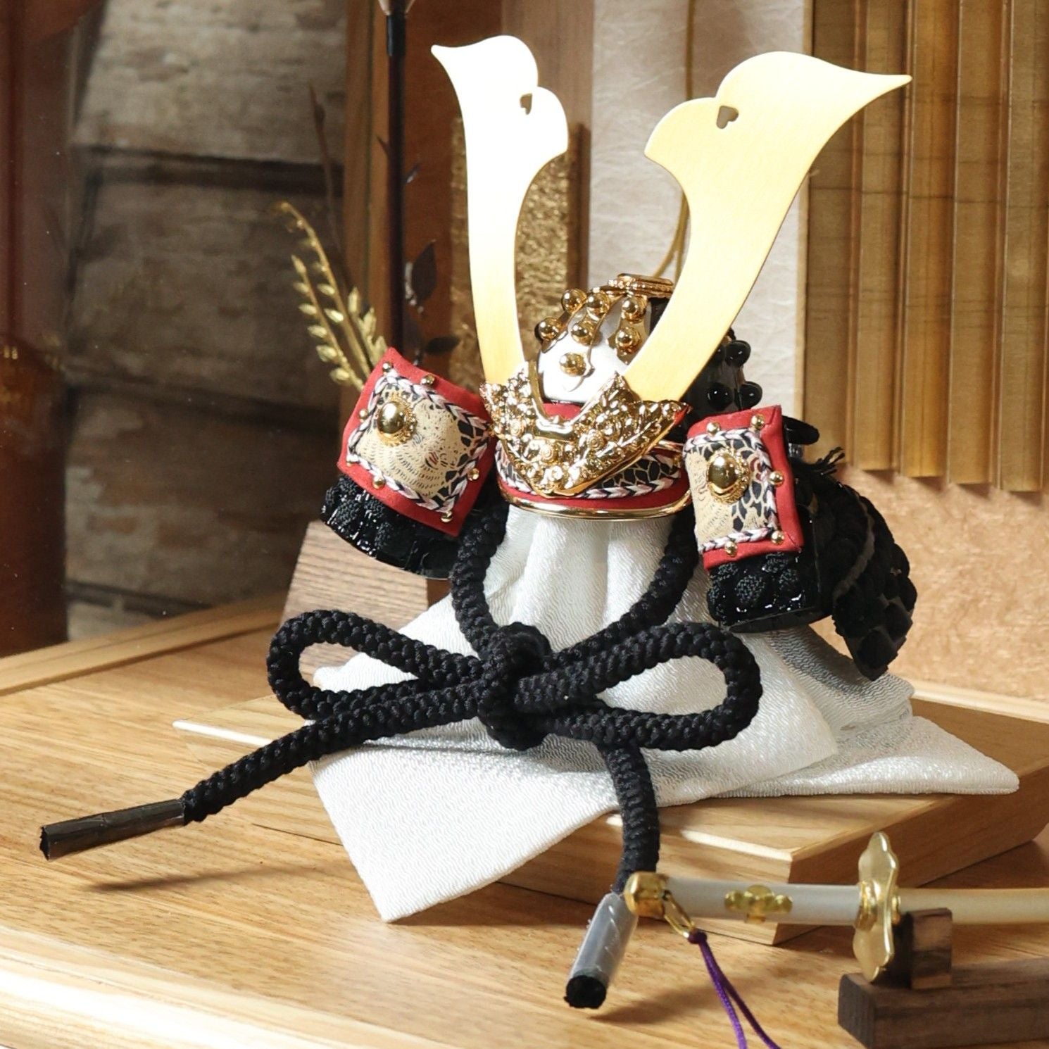 黒い糸が精緻に並んだ垂れ部分は、全体に落ち着きと威厳を与えます。 また、金具や装飾とのコントラストが美しく、シックでありながらも存在感を放つデザインとなっています。 見る人に日本の武士道精神と伝統美を強く感じさせる一品です。