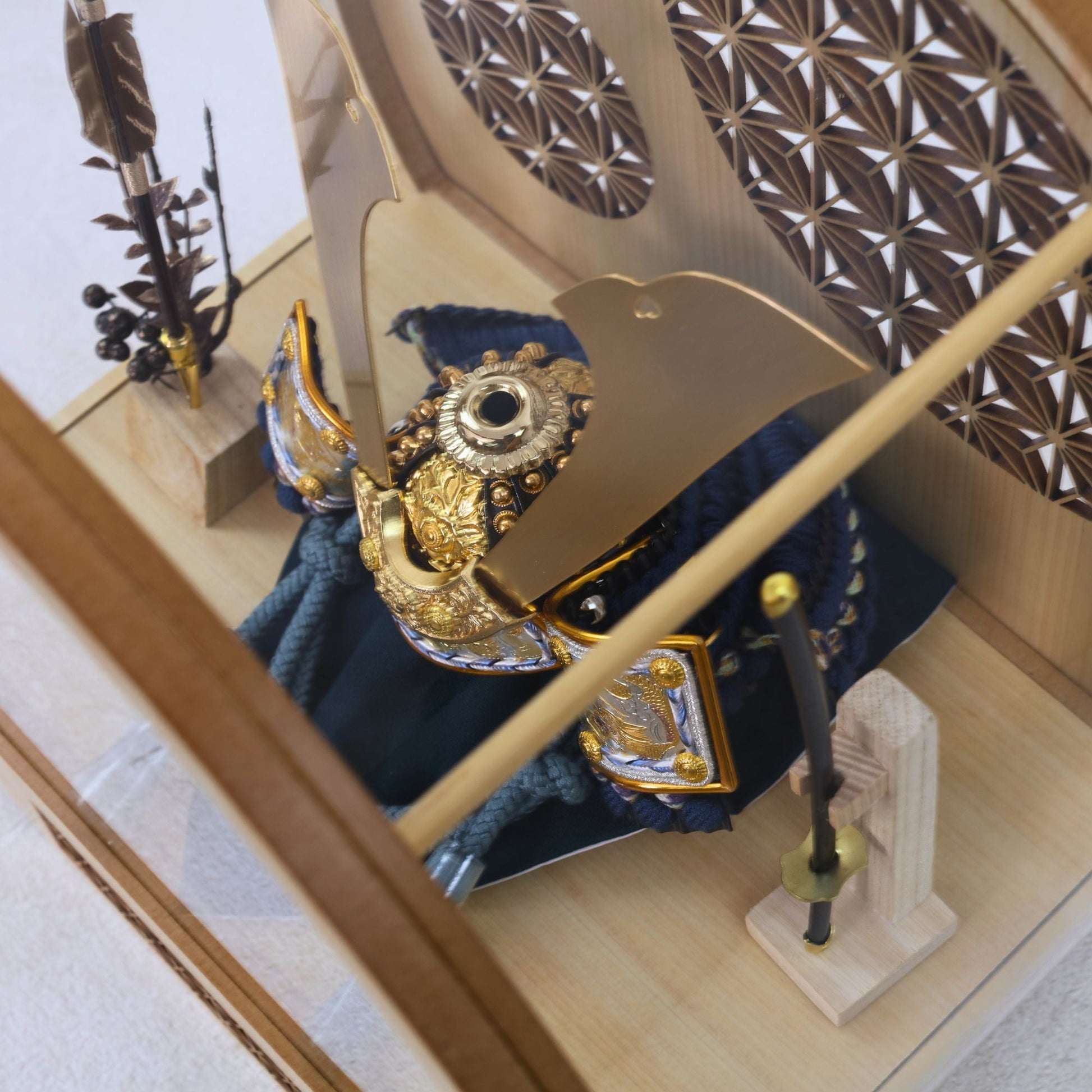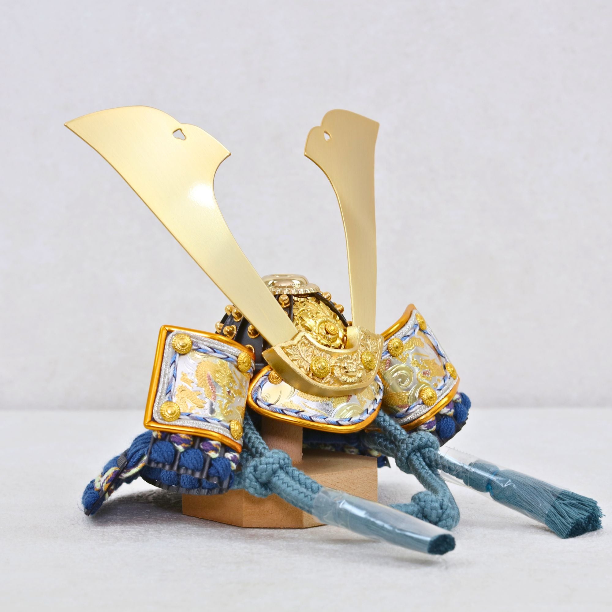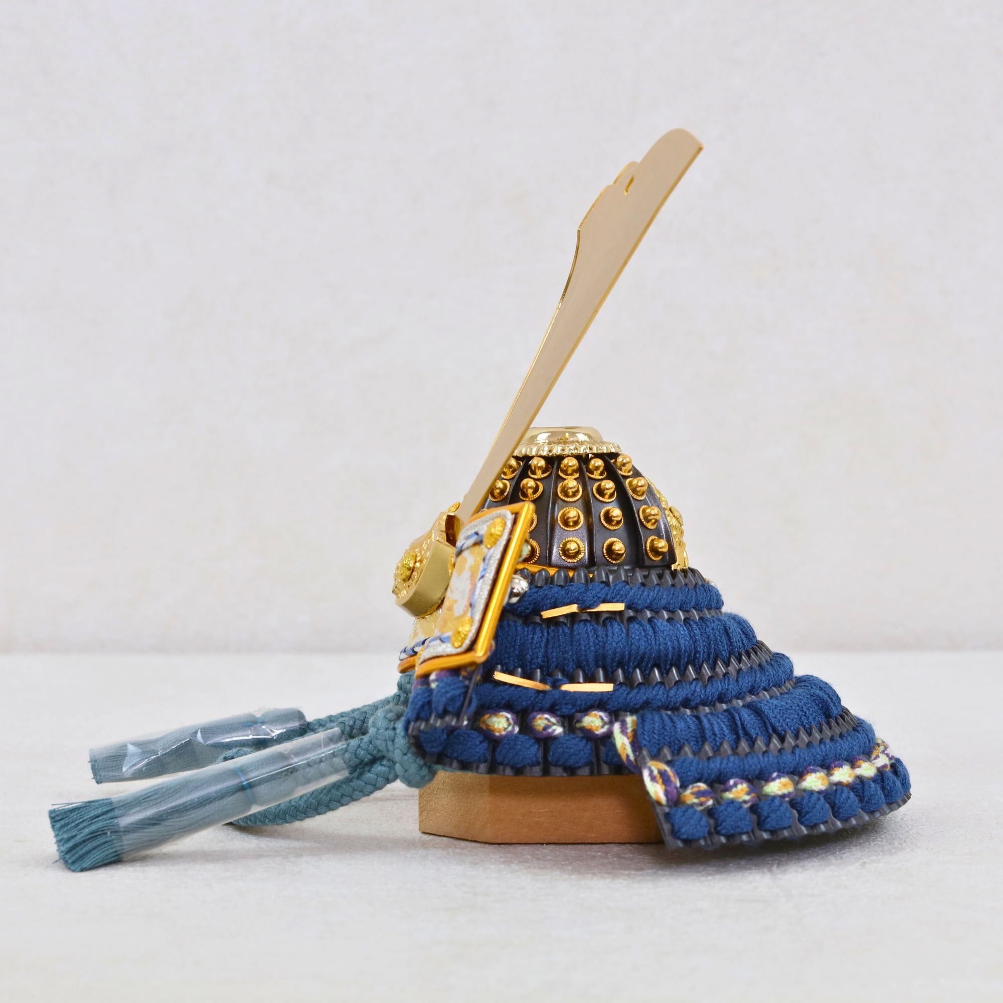 金の色味は控えめで、青系の威しや吹き返しと調和し、爽やかで洗練された印象に。