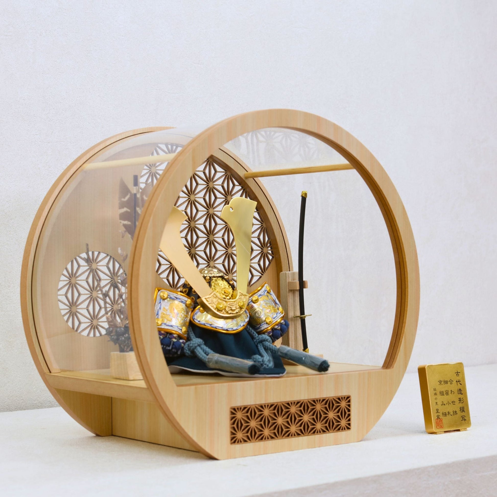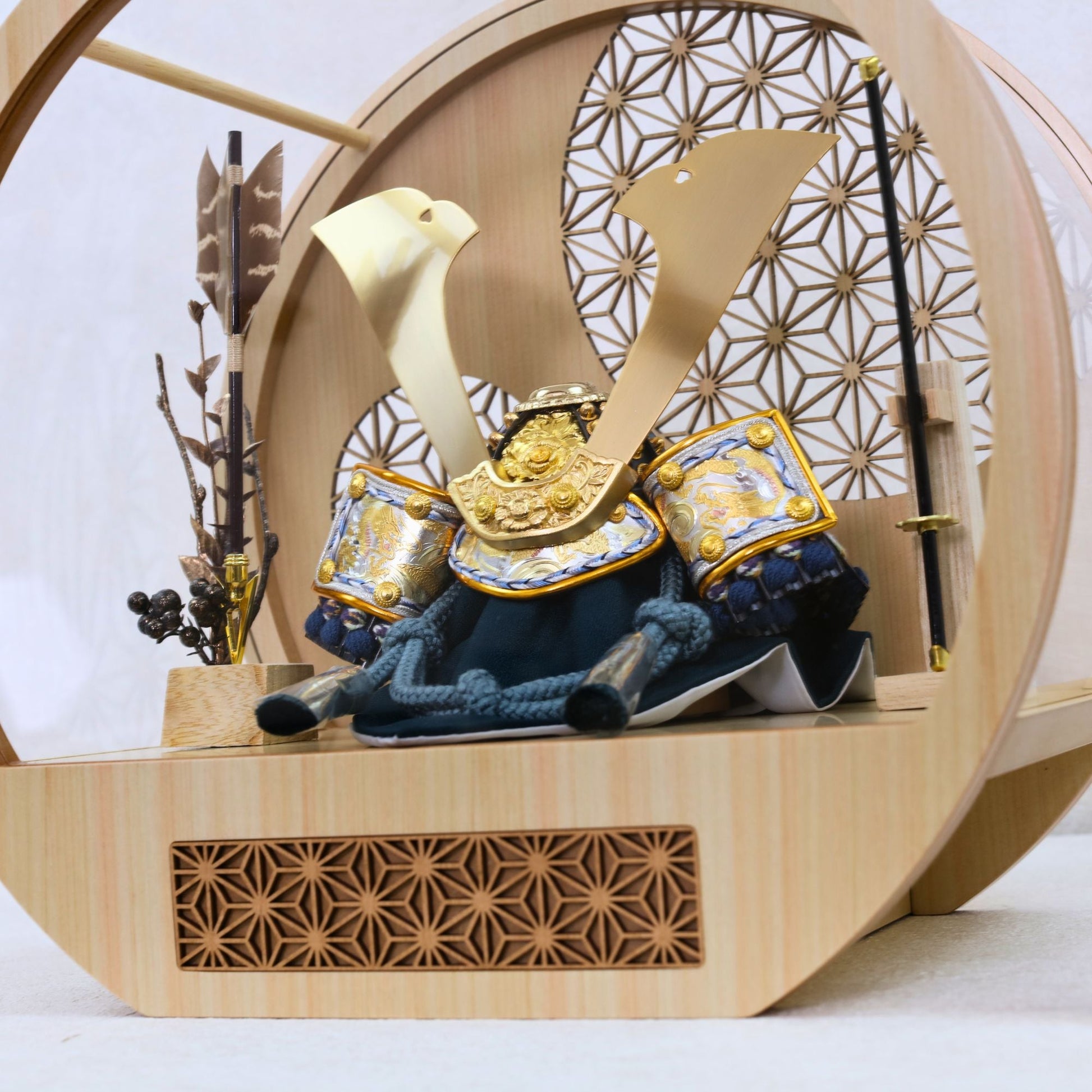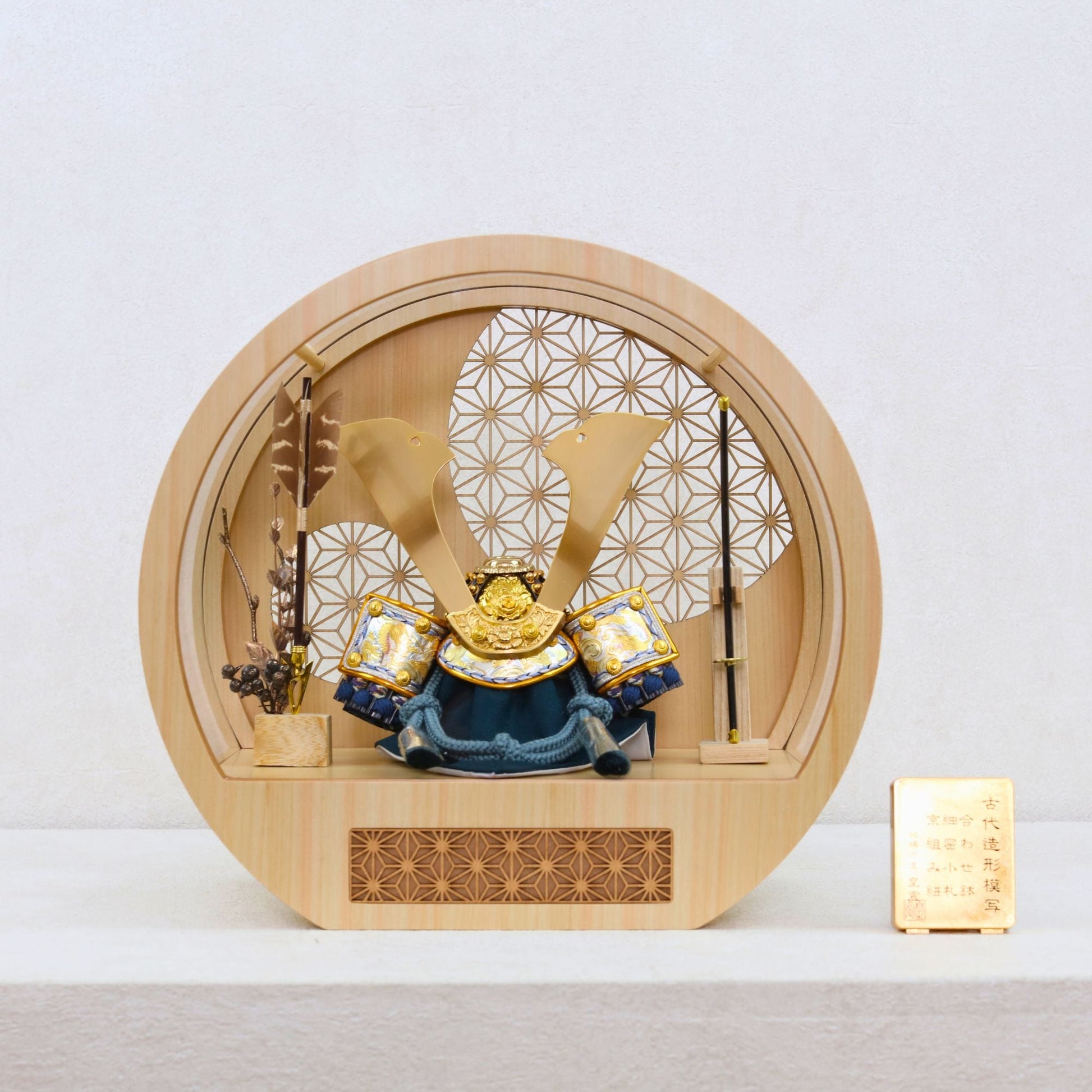 金の色味は控えめで、青系の威しや吹き返しと調和し、爽やかで洗練された印象に。