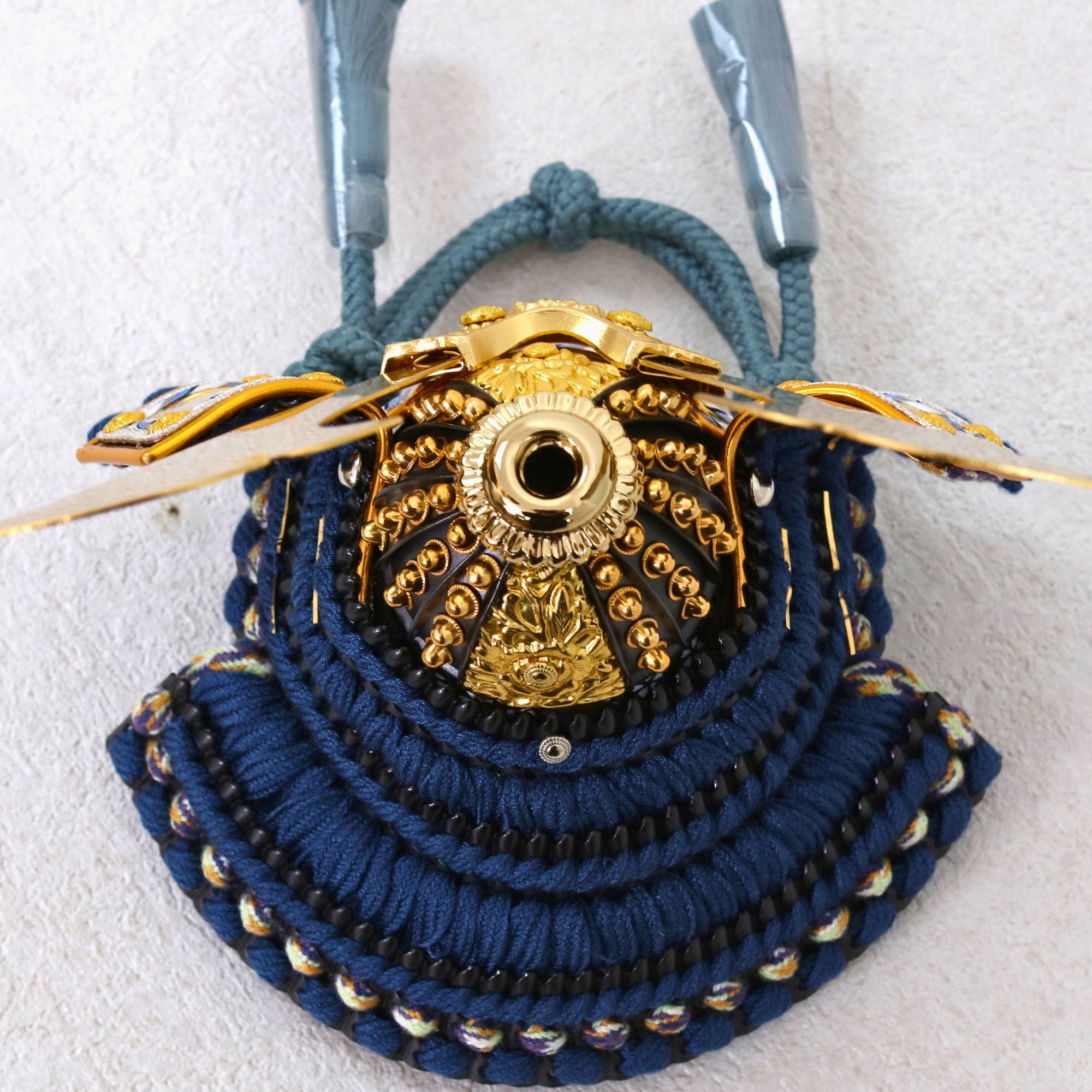 金具には、やや落ち着いた色味の金色を使用しています。強く光りすぎないため、吹き返しや威し糸の色と自然に馴染み、兜全体に統一感をもたらします。