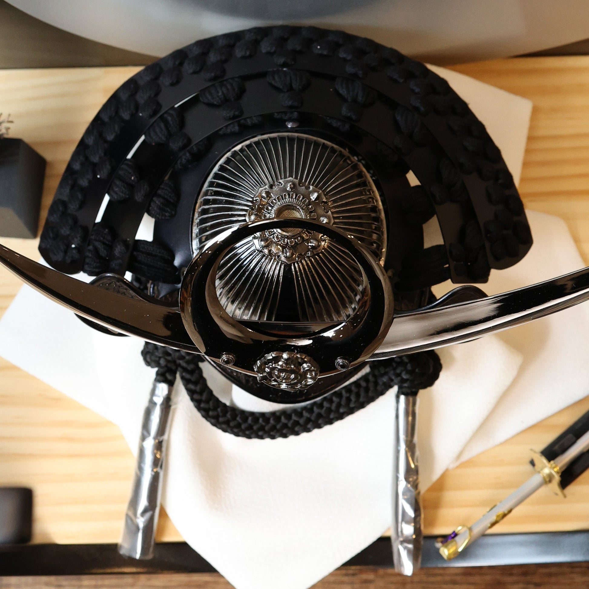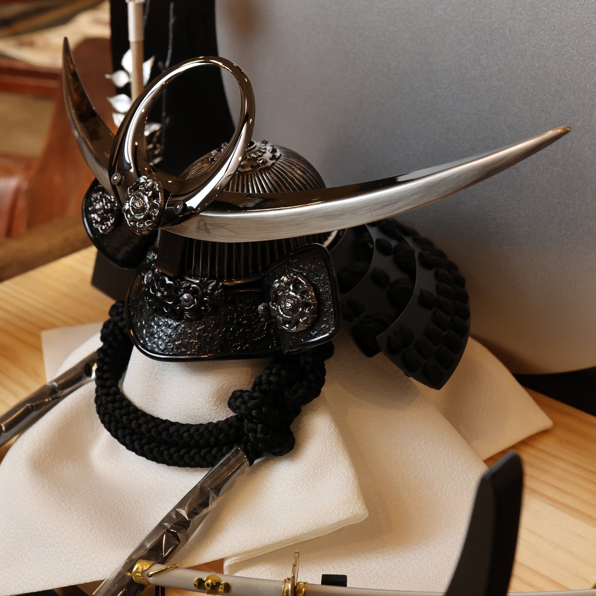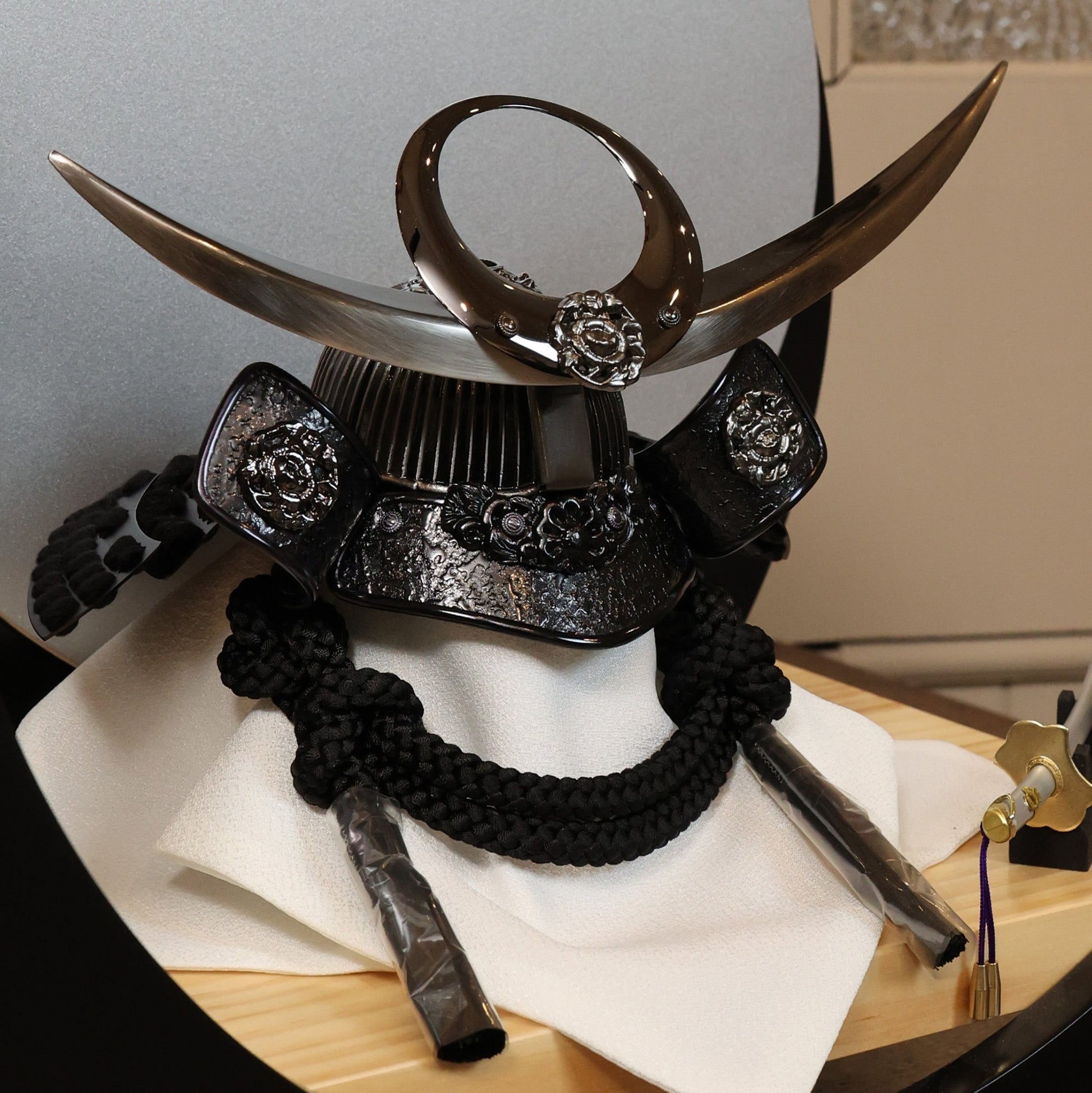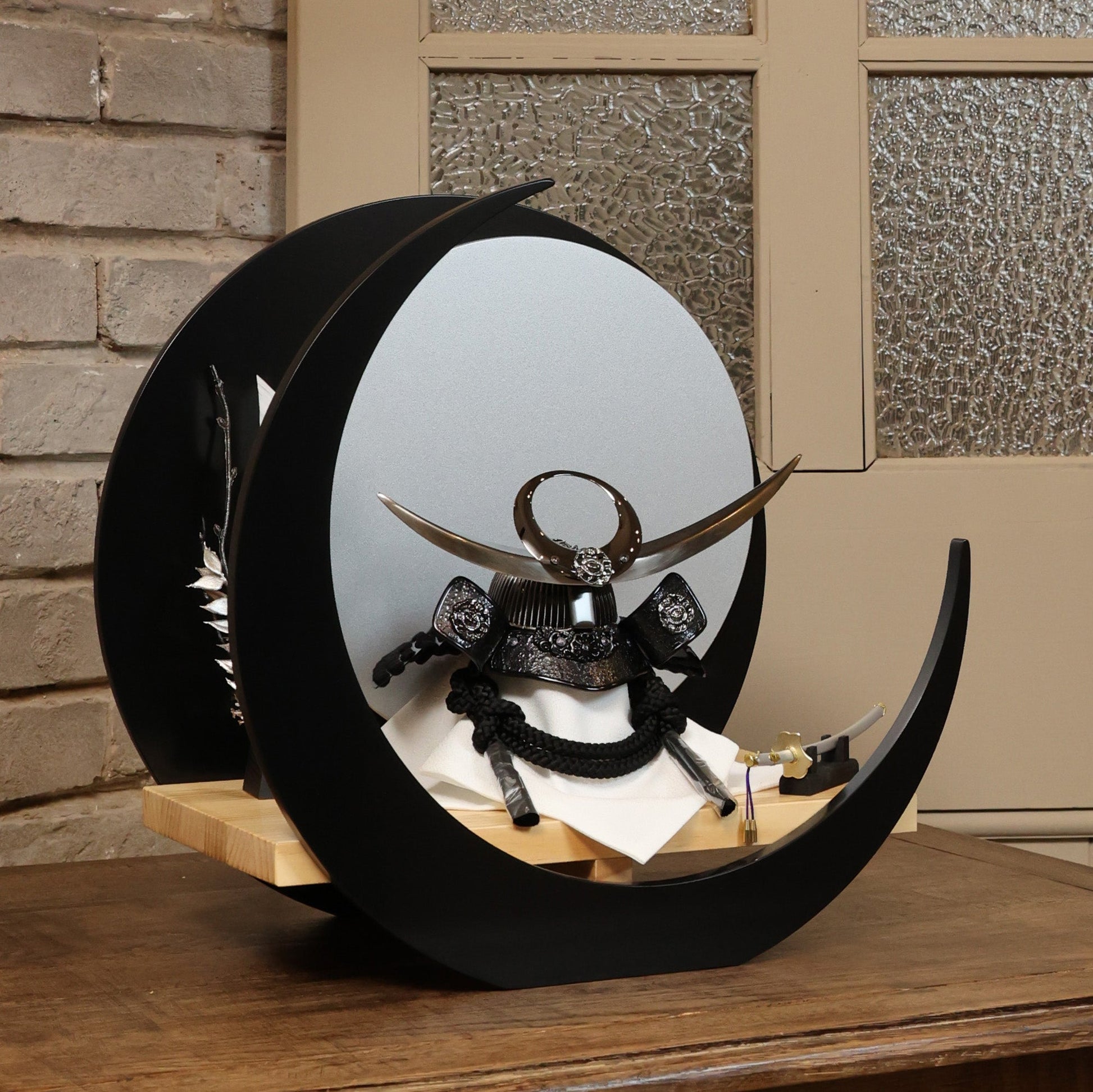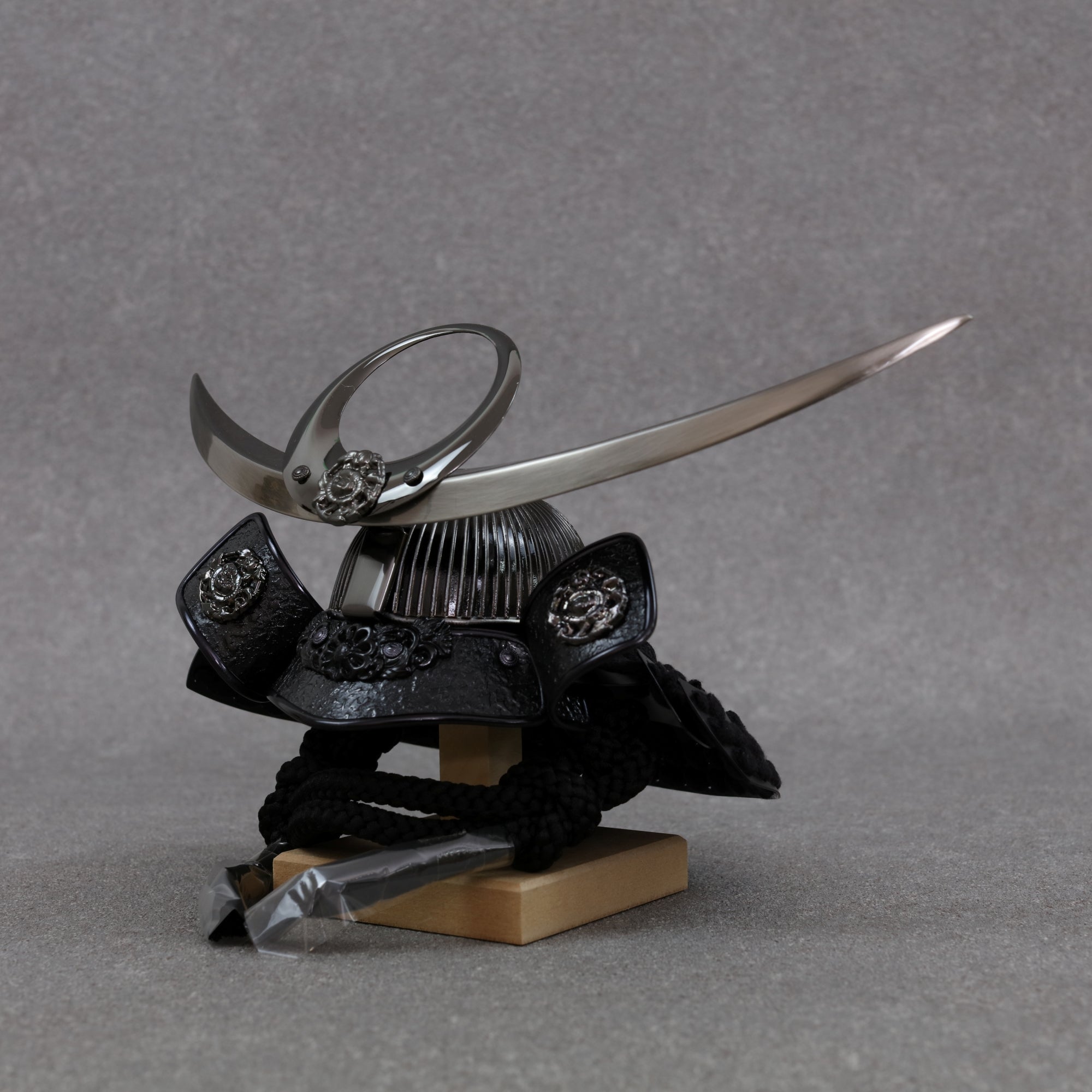 古来より武士たちに愛され続けてきた伝統的な兜の形です。 その特徴的な曲線美と重厚感は、力強いさと調和を象徴し、戦勝祈願や安全を願う縁起物としても高く評価されています。