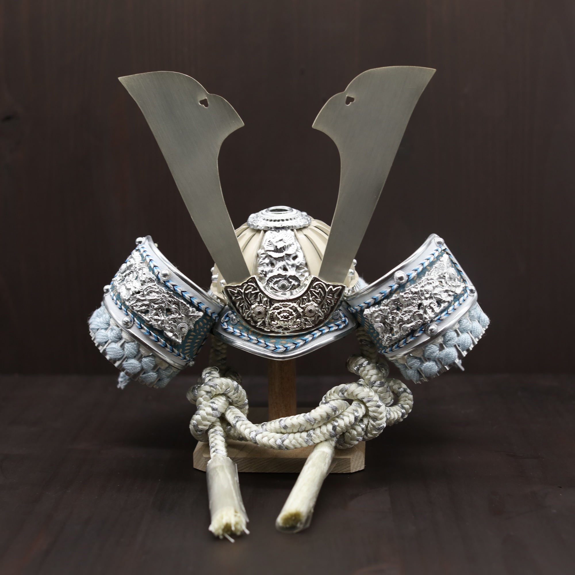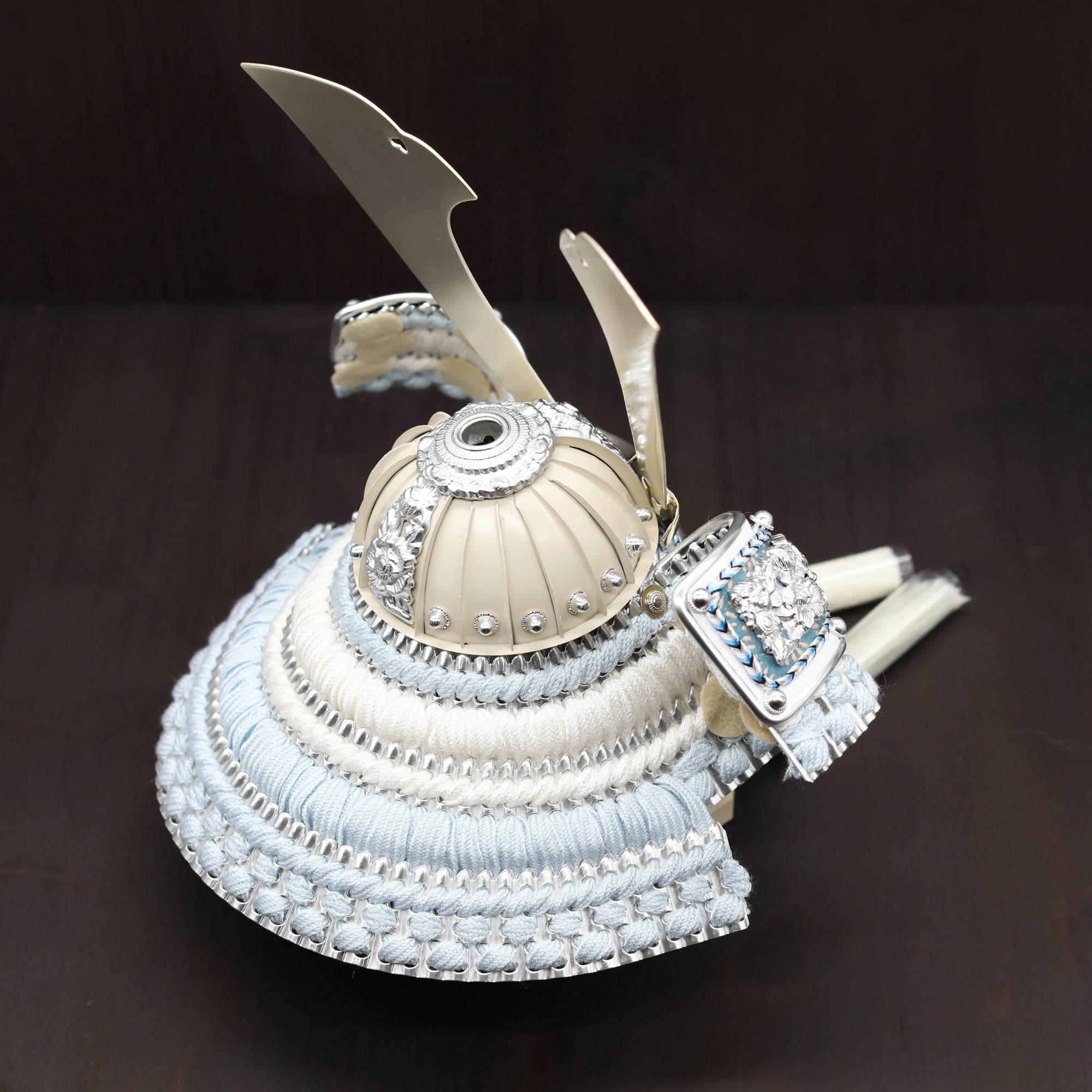銀の装飾とも美しく溶け合い、上品で穏やかな存在感を放つ鍬形です。