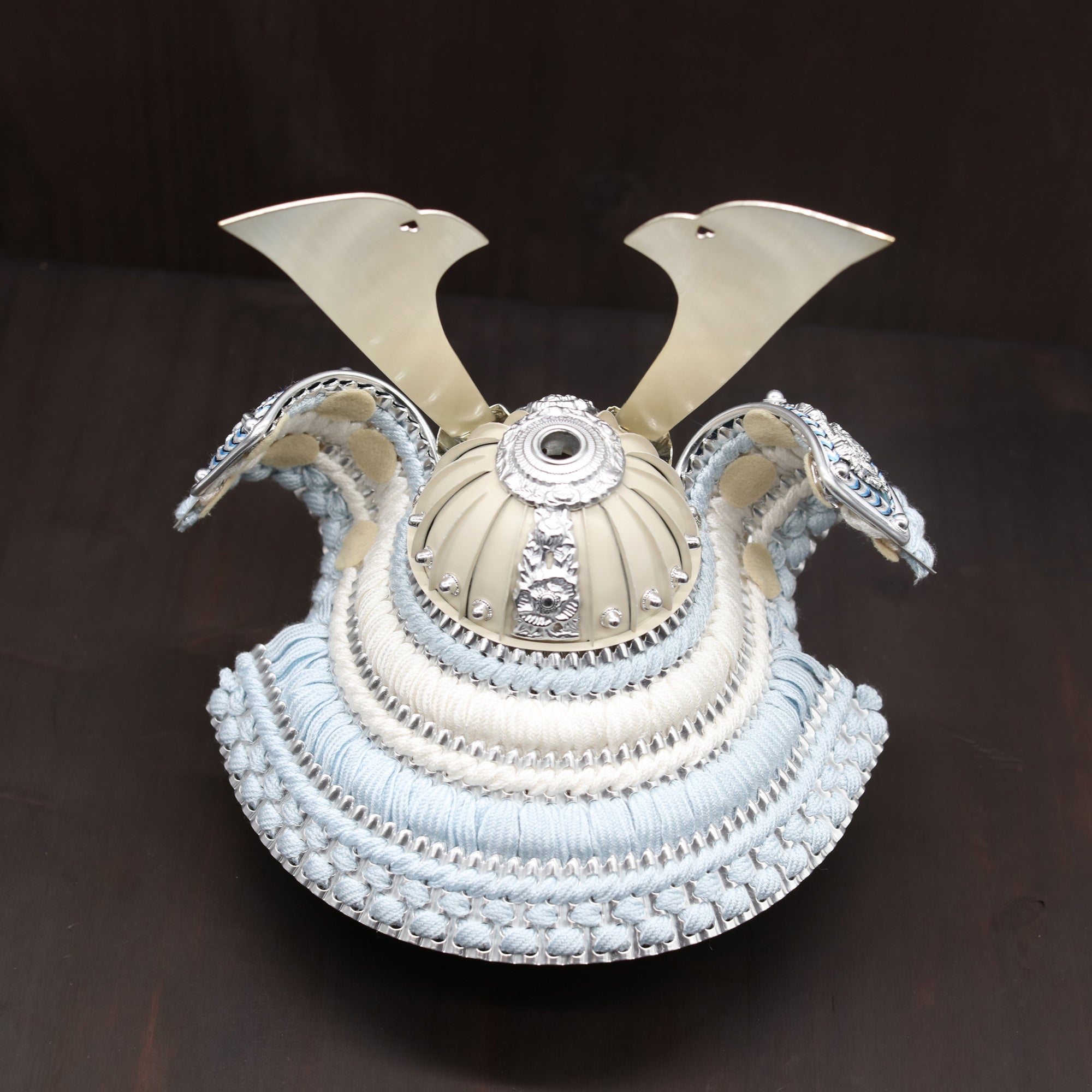 堂々とした大鍬形を、淡くやわらかな金色で仕立てました。