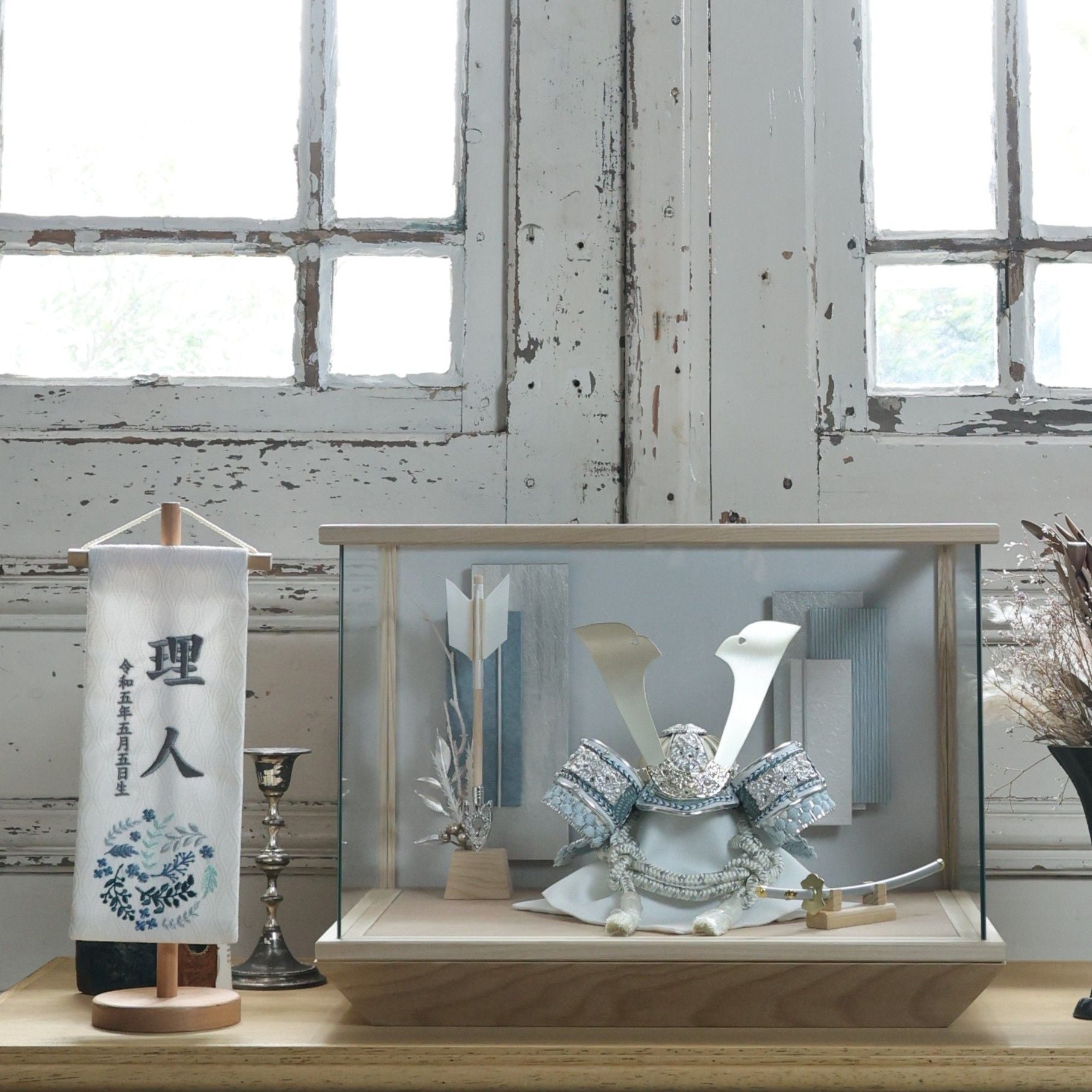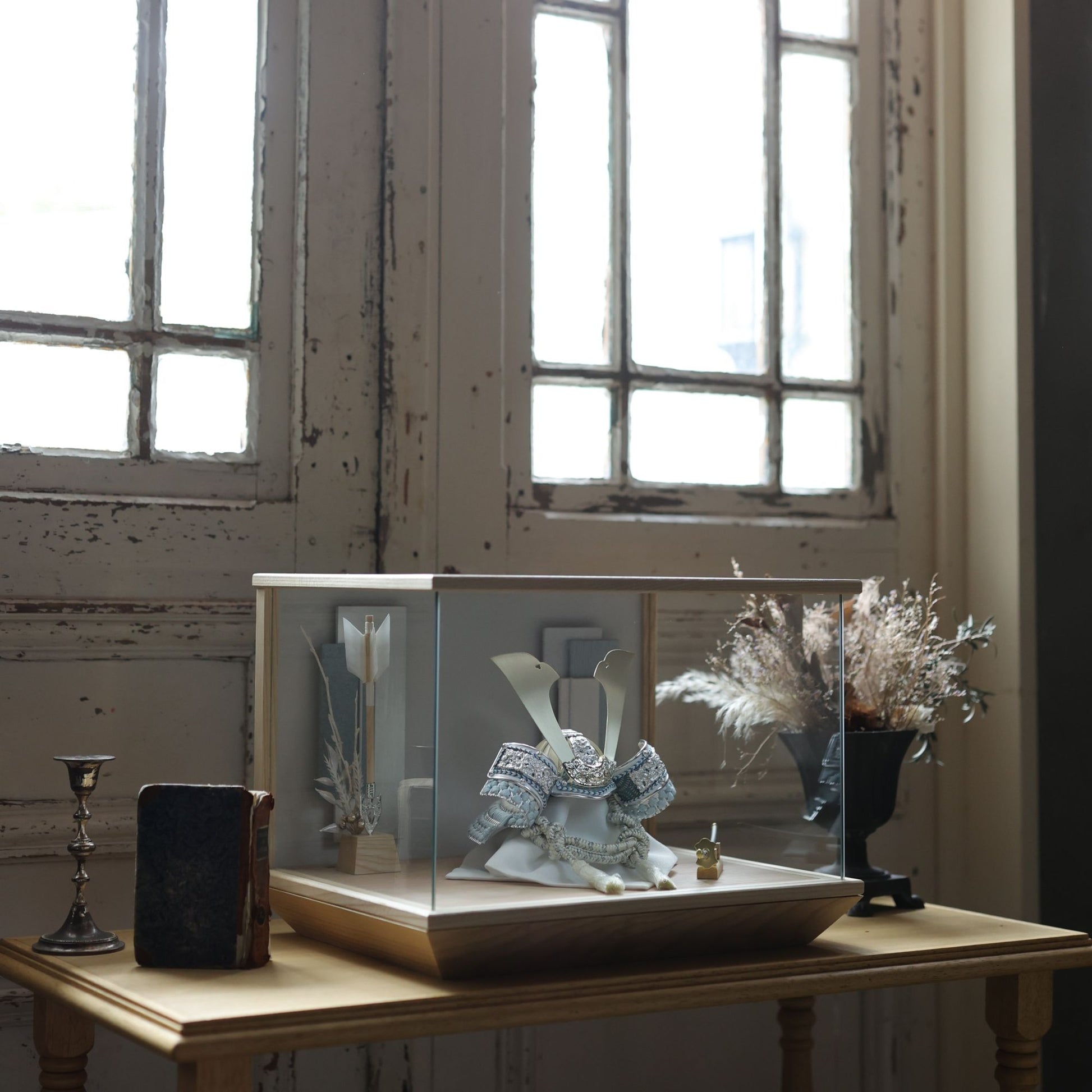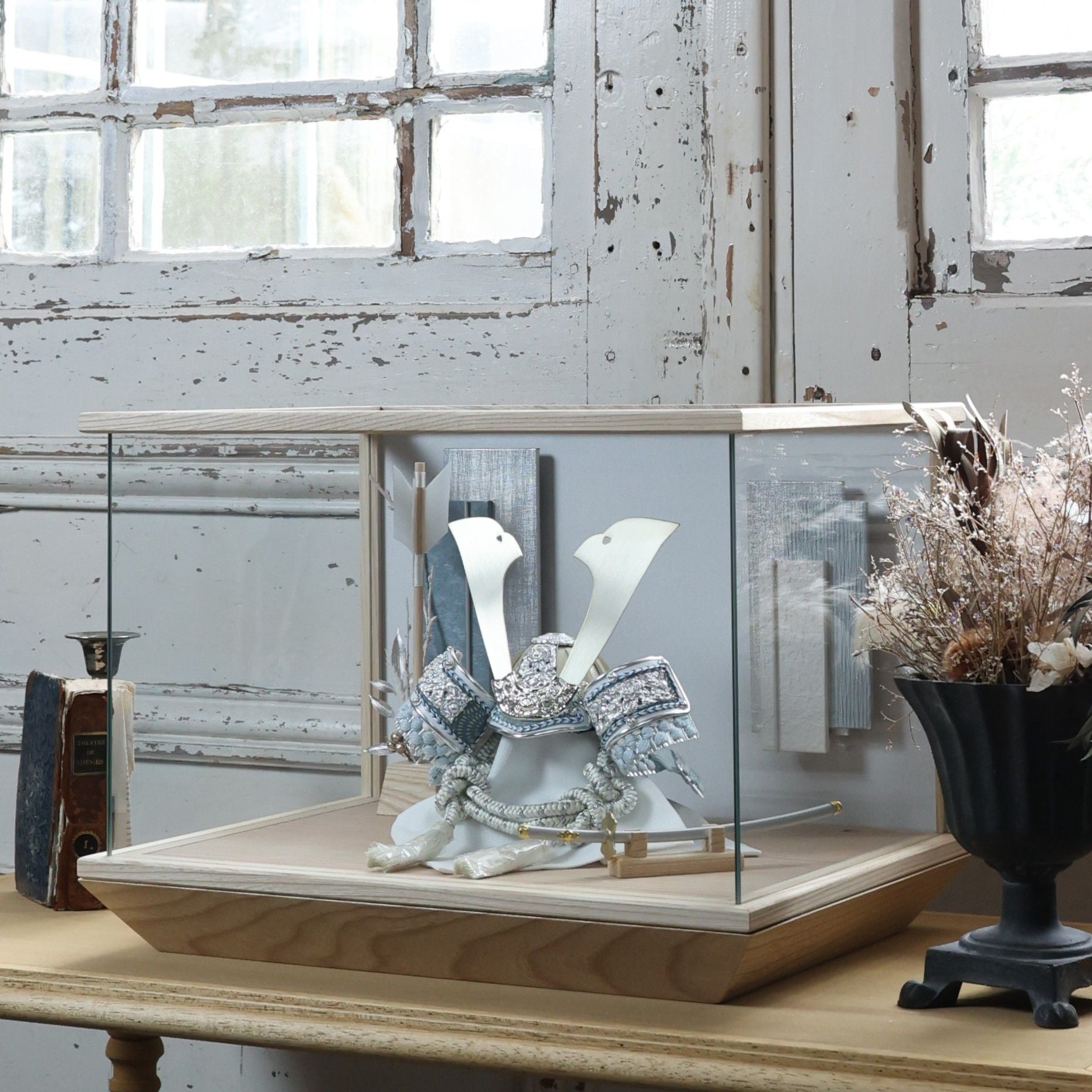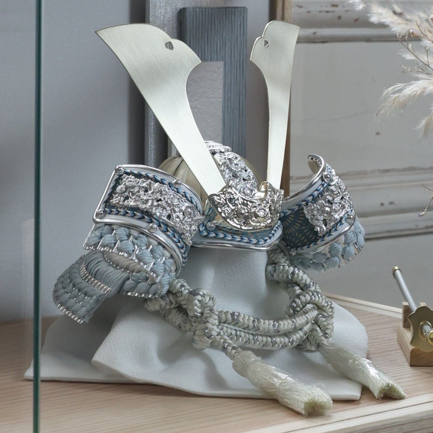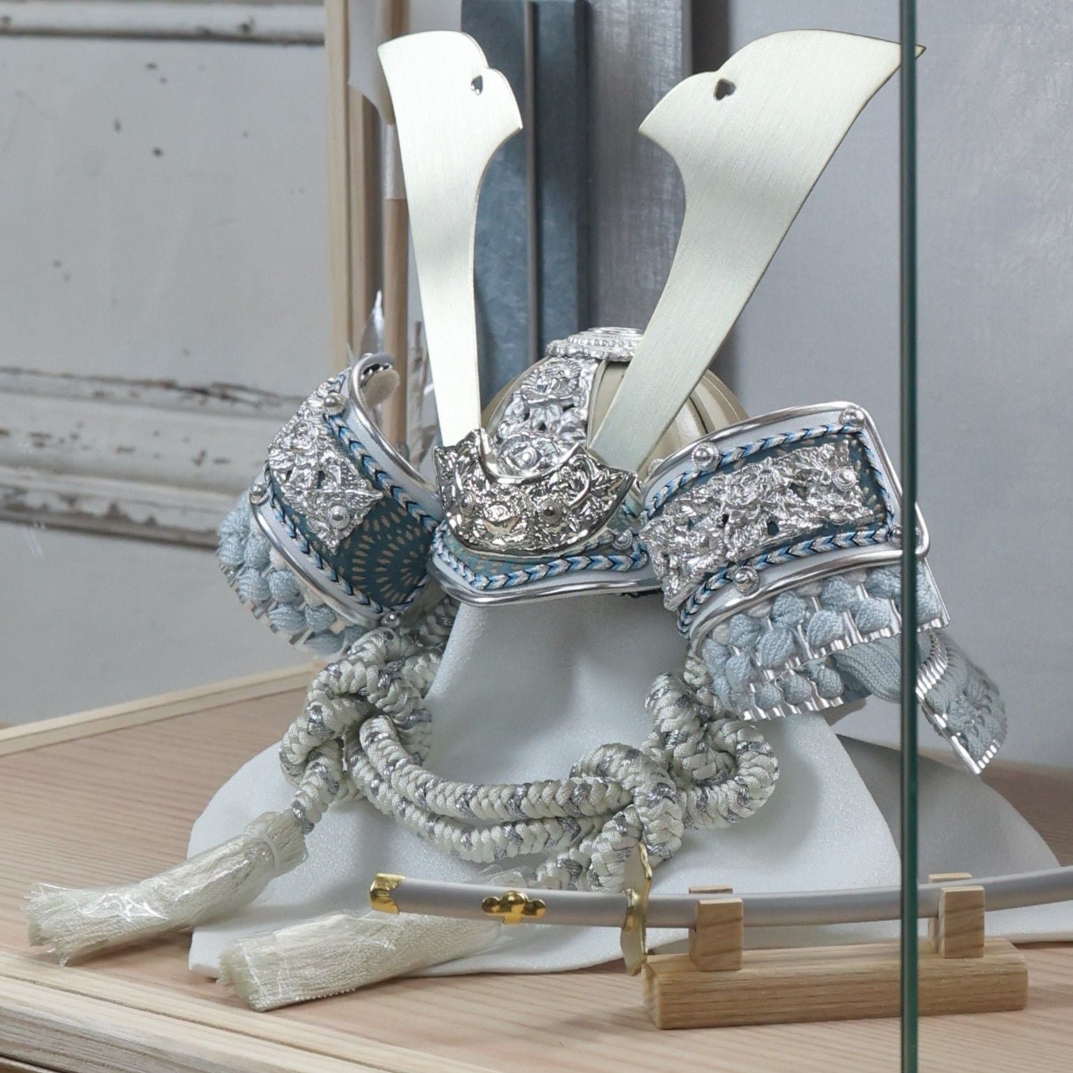 淡金の大鍬形。白の世界に、やさしい光を添えて。