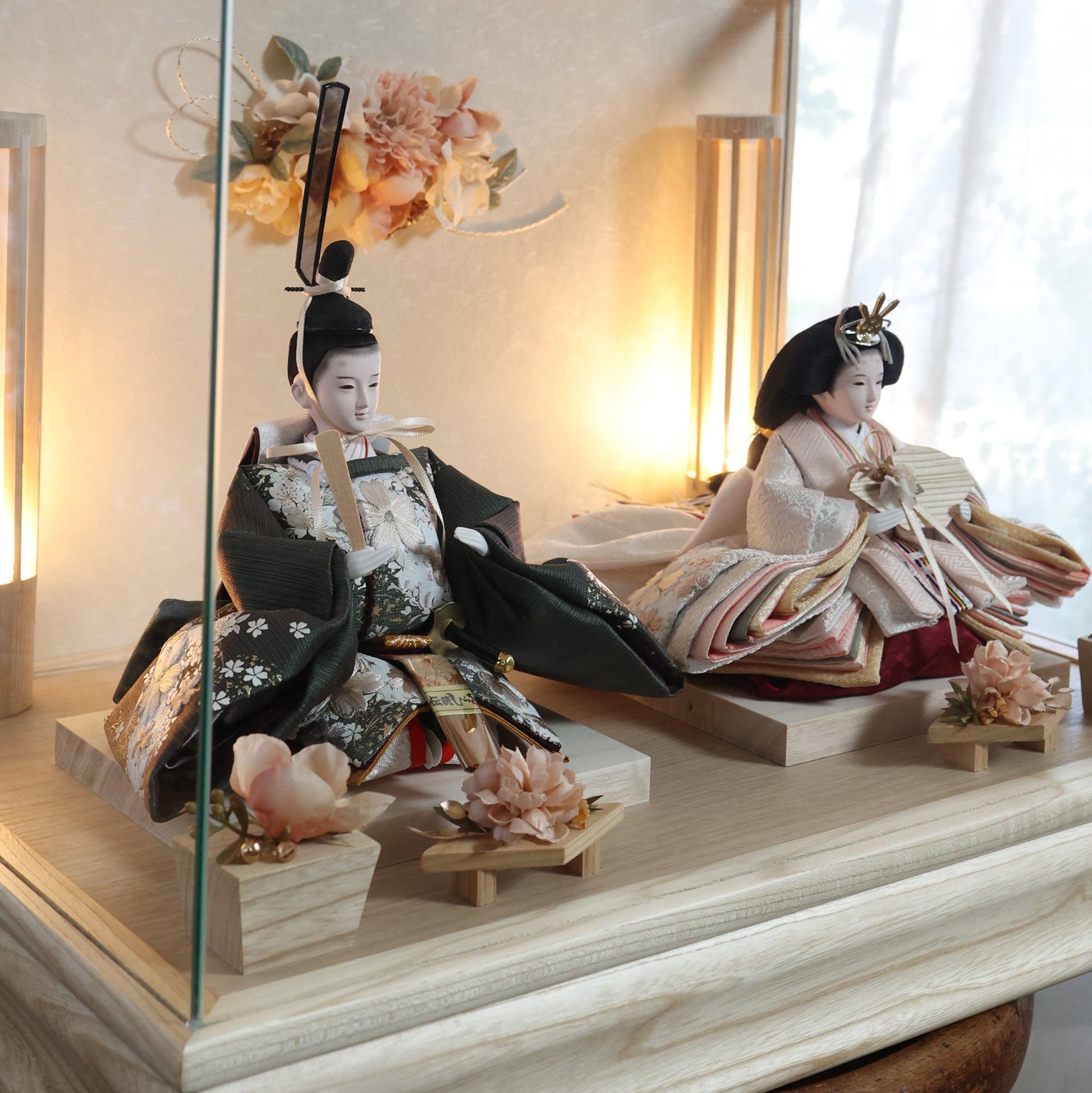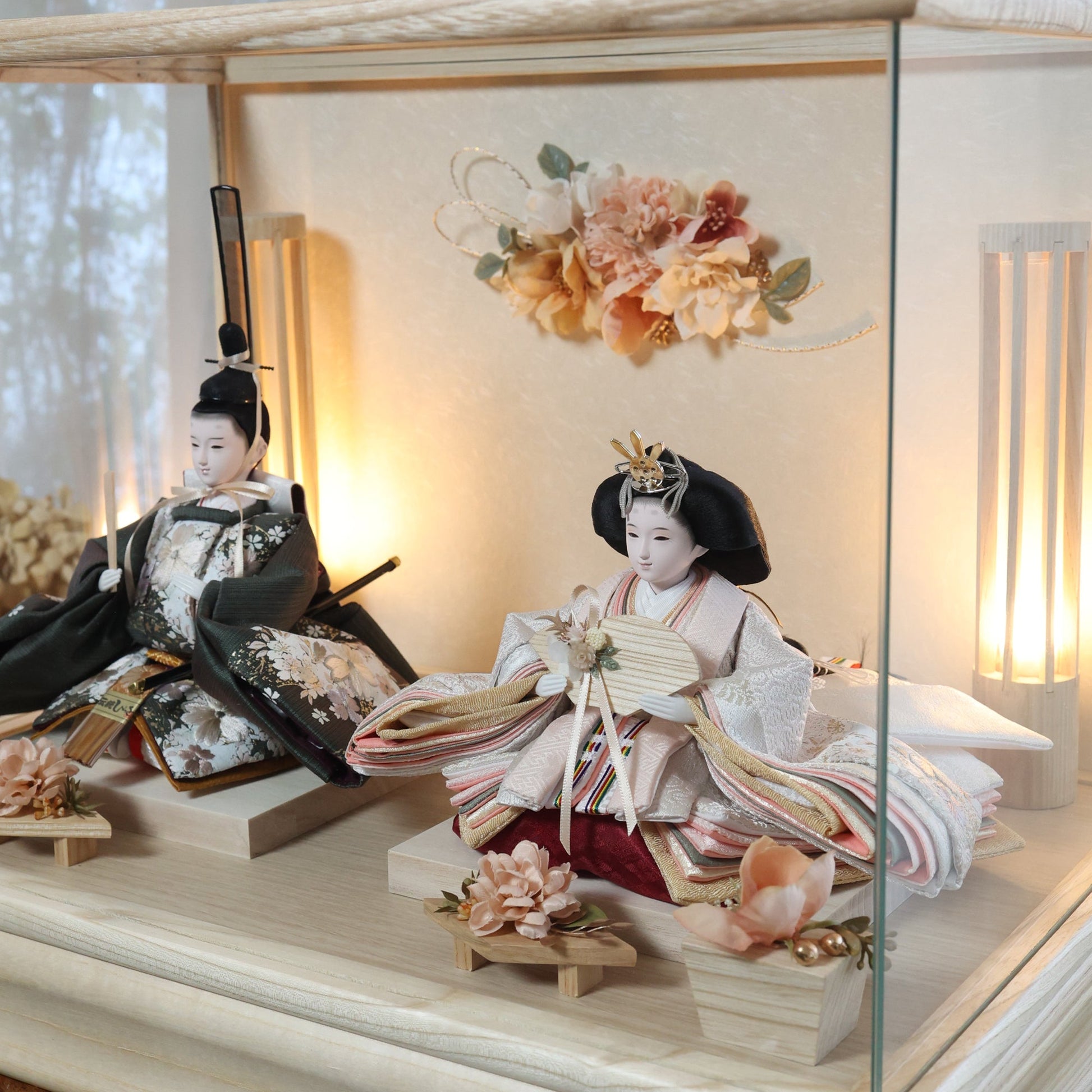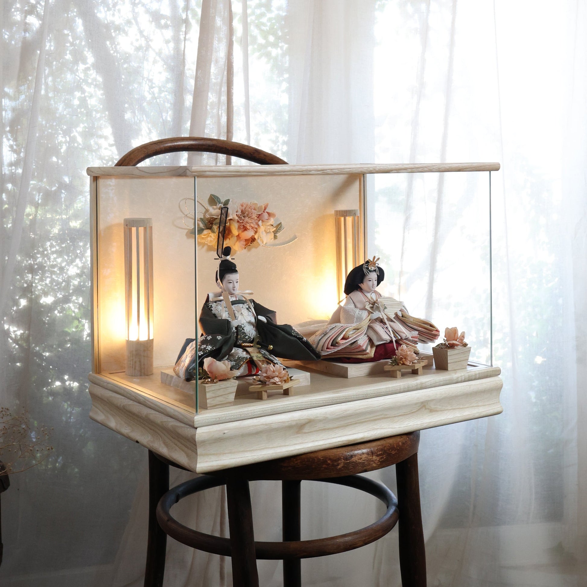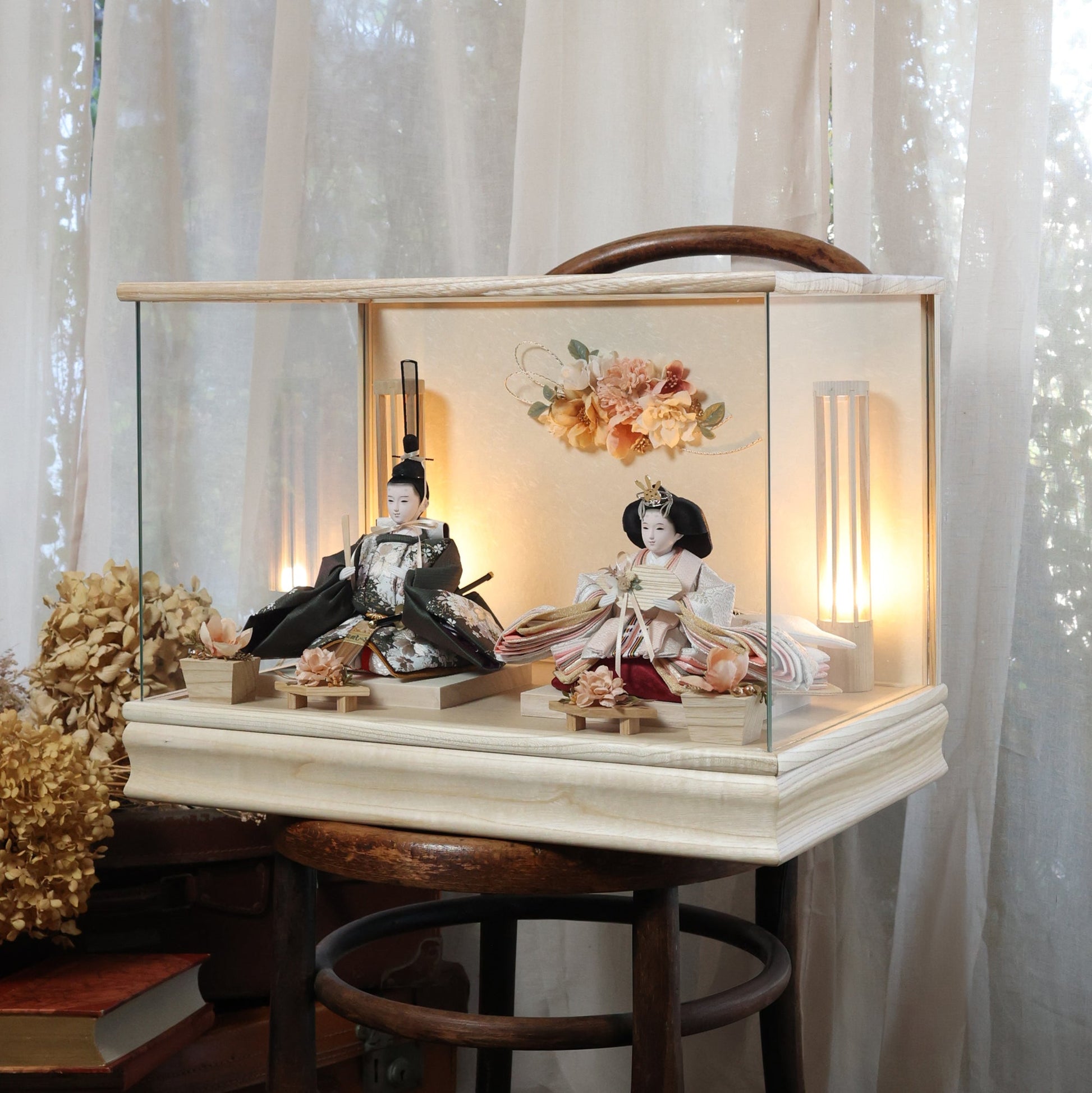 通常2mm厚が一般的な中、当店ではより高品質なAGC製3mmガラスを採用しています。厚みが増すことで強度と安全性が高まり、透明度の高いクリアな美しさを保ちます。大切な雛人形を守りながら、高級感のある見栄えを実現しています。