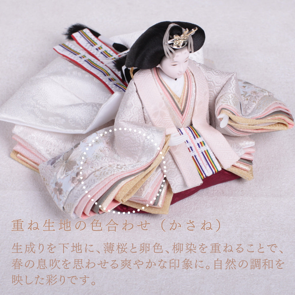 国産の栓(せん)は、美しい木目と温もりある質感が魅力の天然木です。耐久性に優れ、経年とともに味わいを深めます。台座や屏風などに使用することで、自然素材ならではの落ち着いた風合いと上質感を演出し、雛人形全体をより品格ある印象に仕上げます。