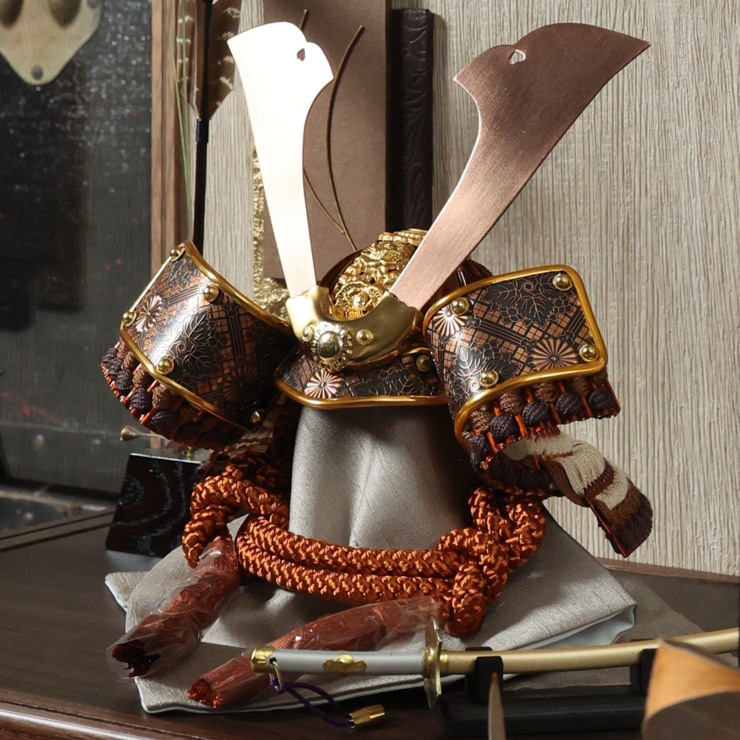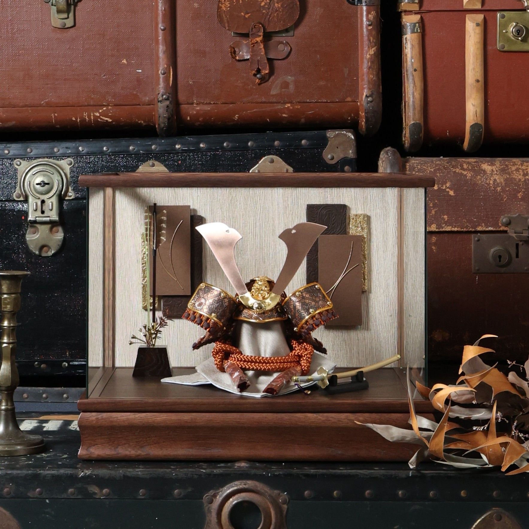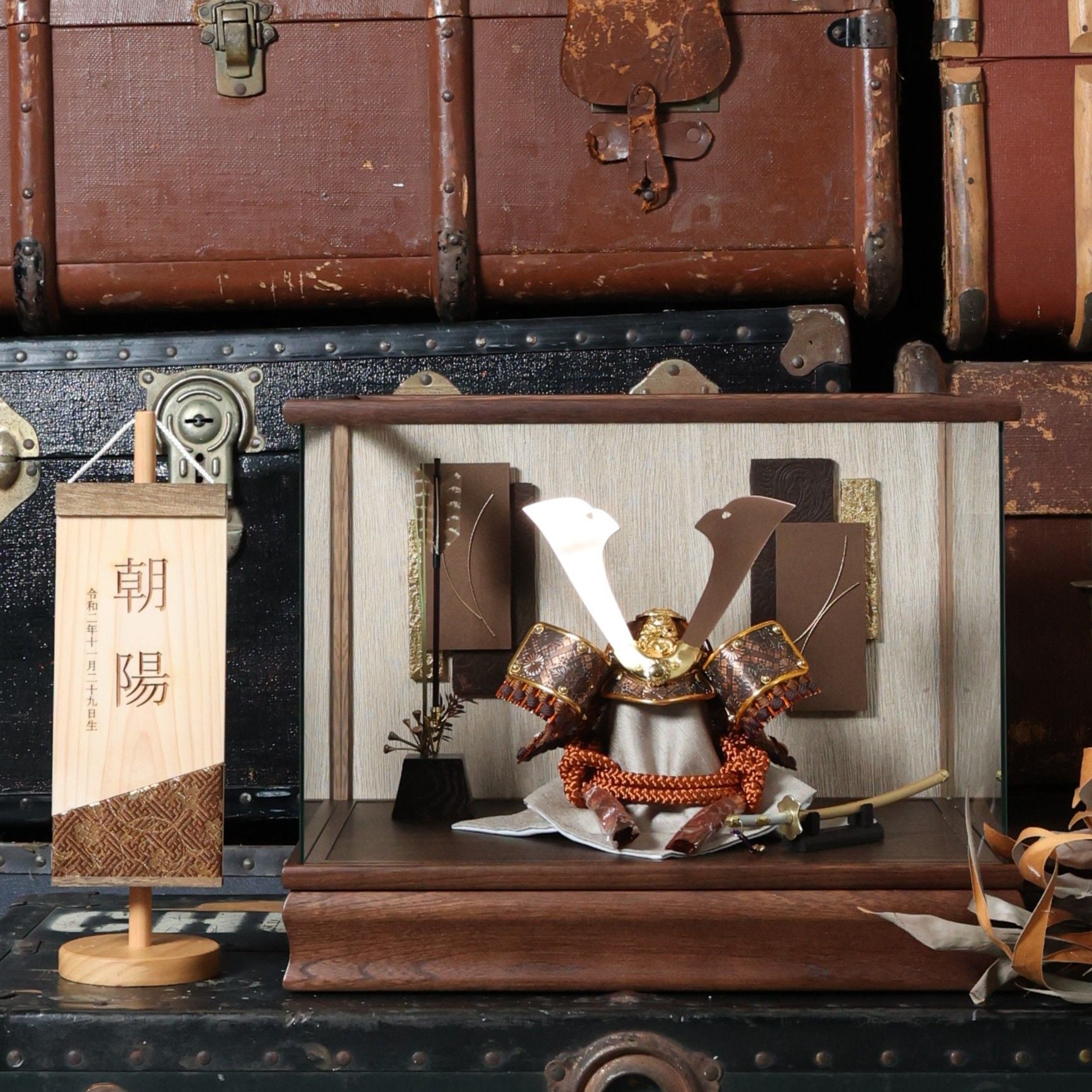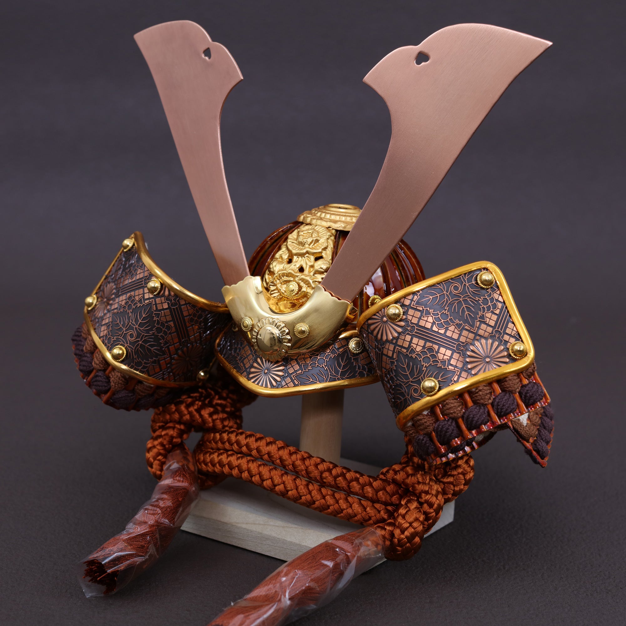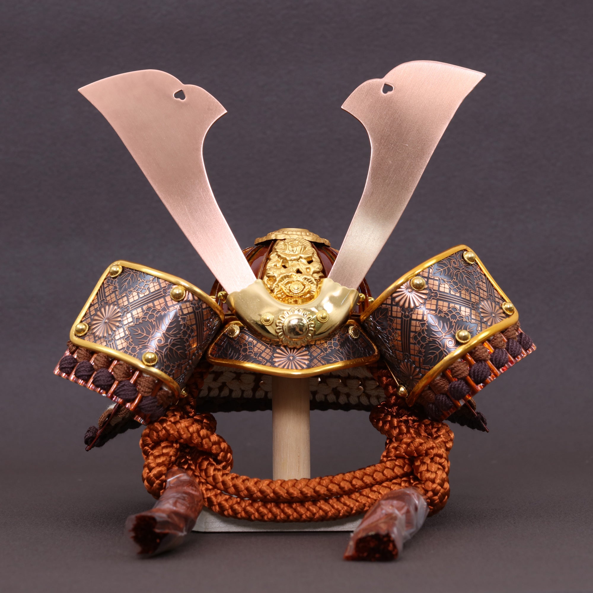 落ち着いた艶が兜の輪郭をすっと引き立て、深みのある色合わせに上品な華やぎを添えます。