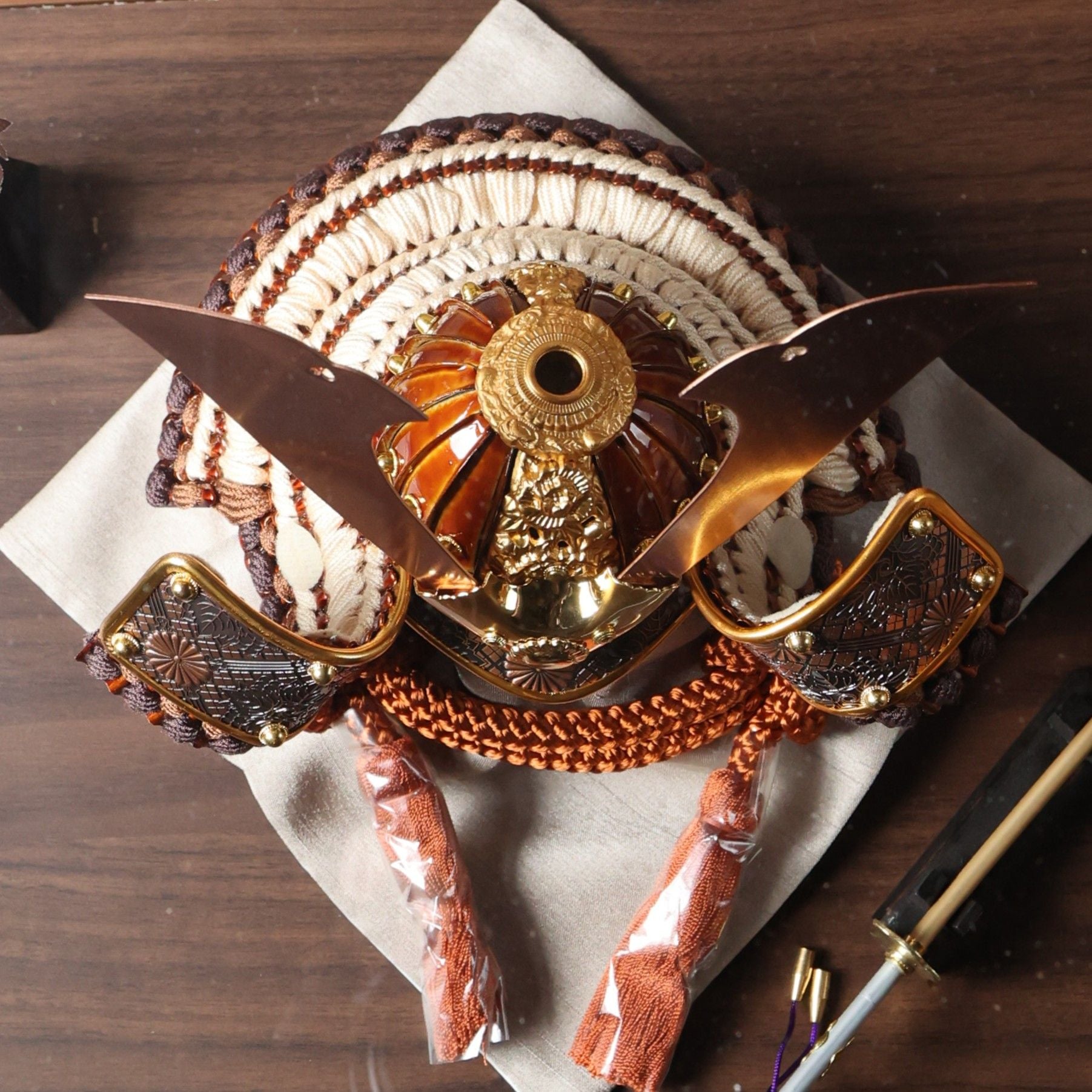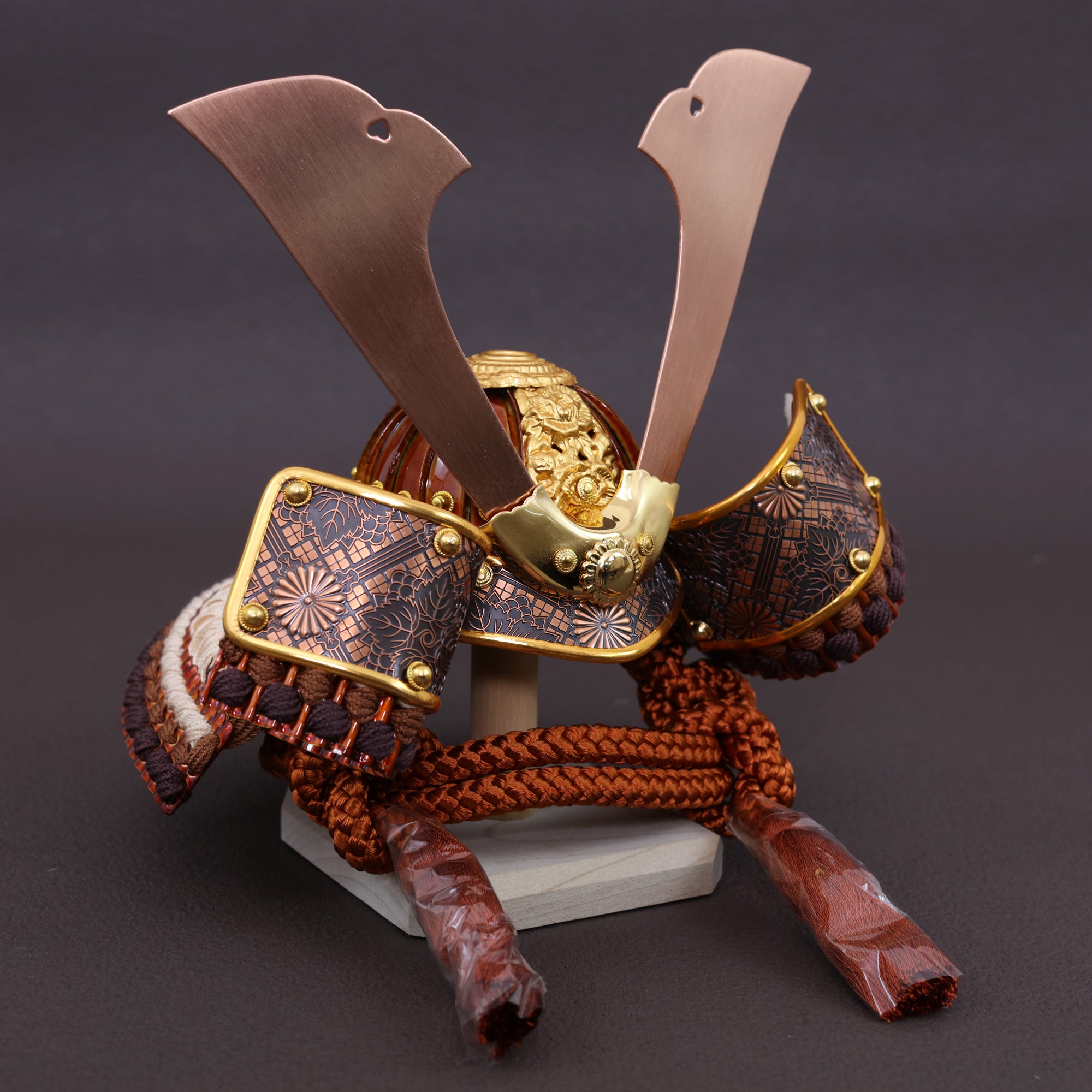 堂々とした大鍬形を、やわらかな金色で仕立てました。