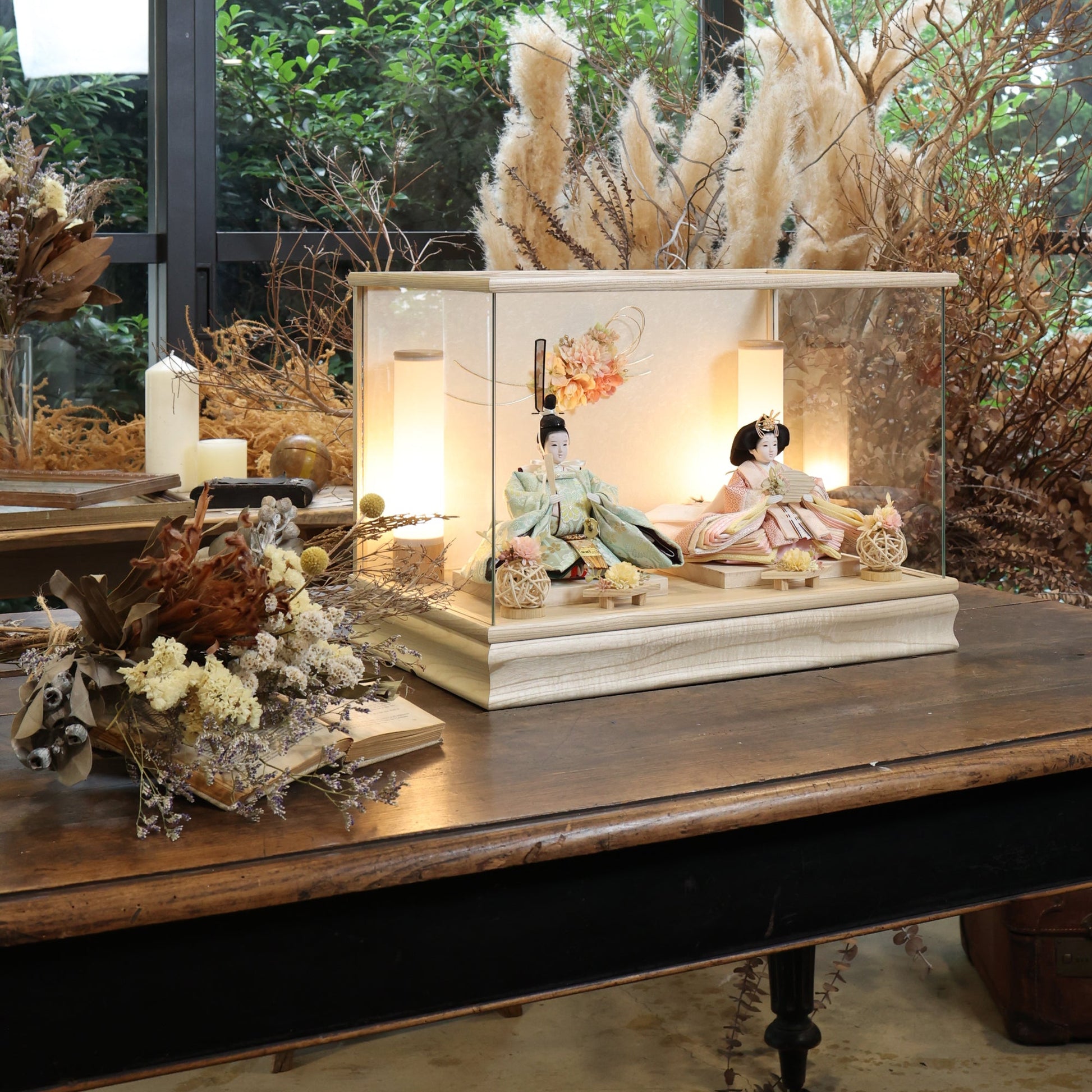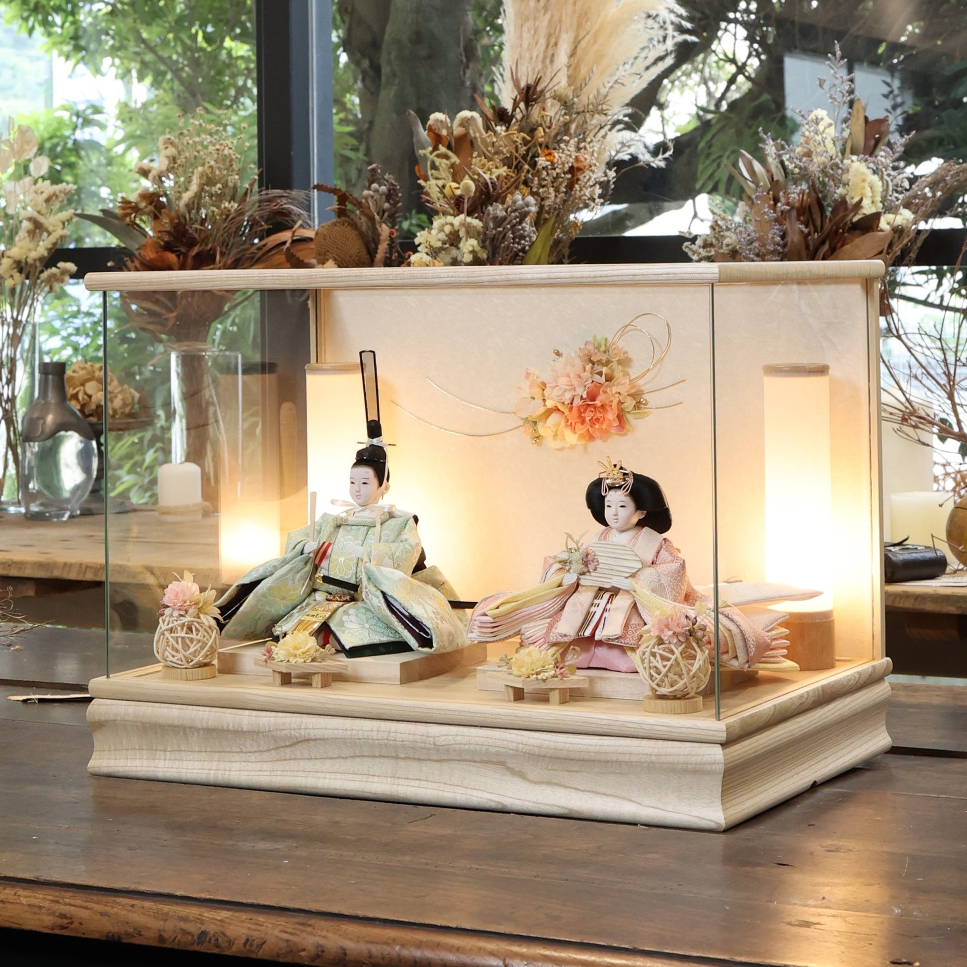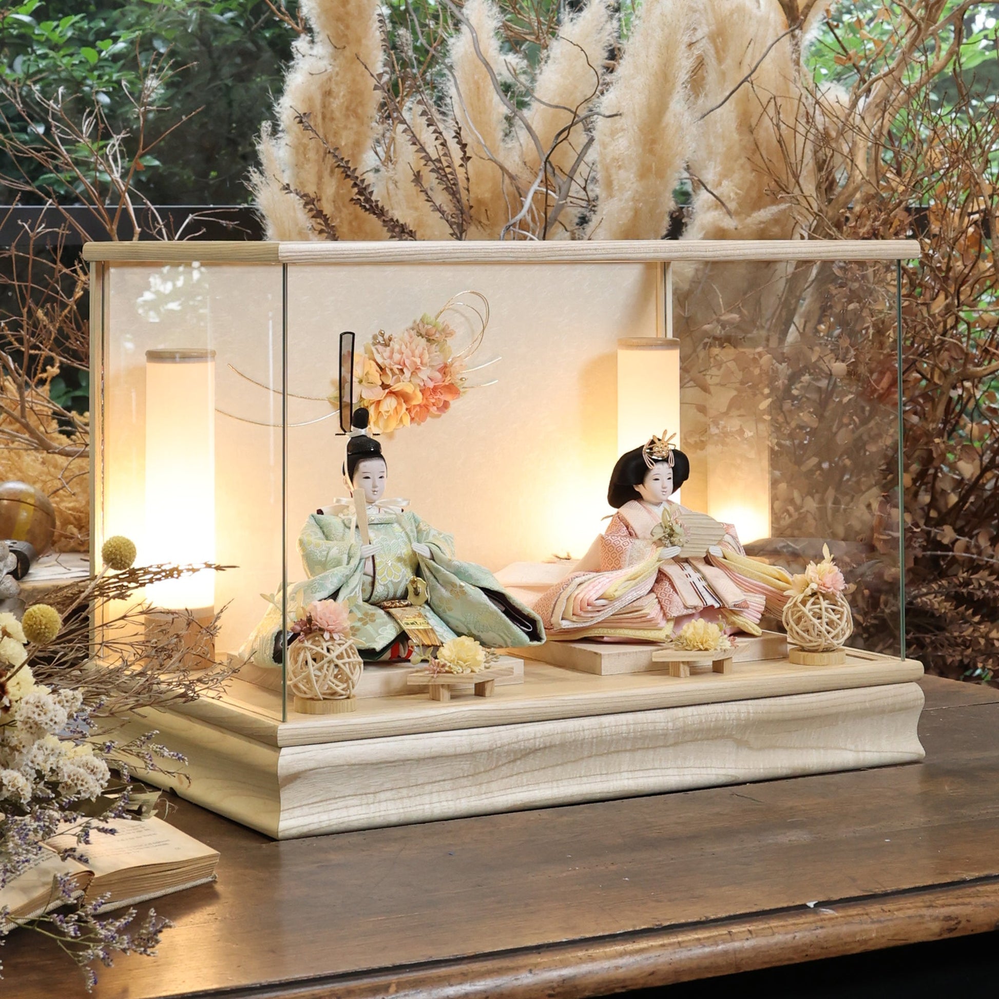 通常2mm厚が一般的な中、当店ではより高品質なAGC製3mmガラスを採用しています。厚みが増すことで強度と安全性が高まり、透明度の高いクリアな美しさを保ちます。大切な雛人形を守りながら、高級感のある見栄えを実現しています。