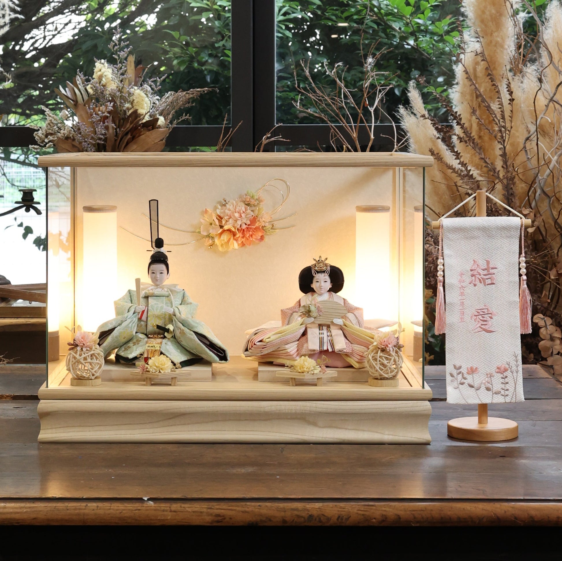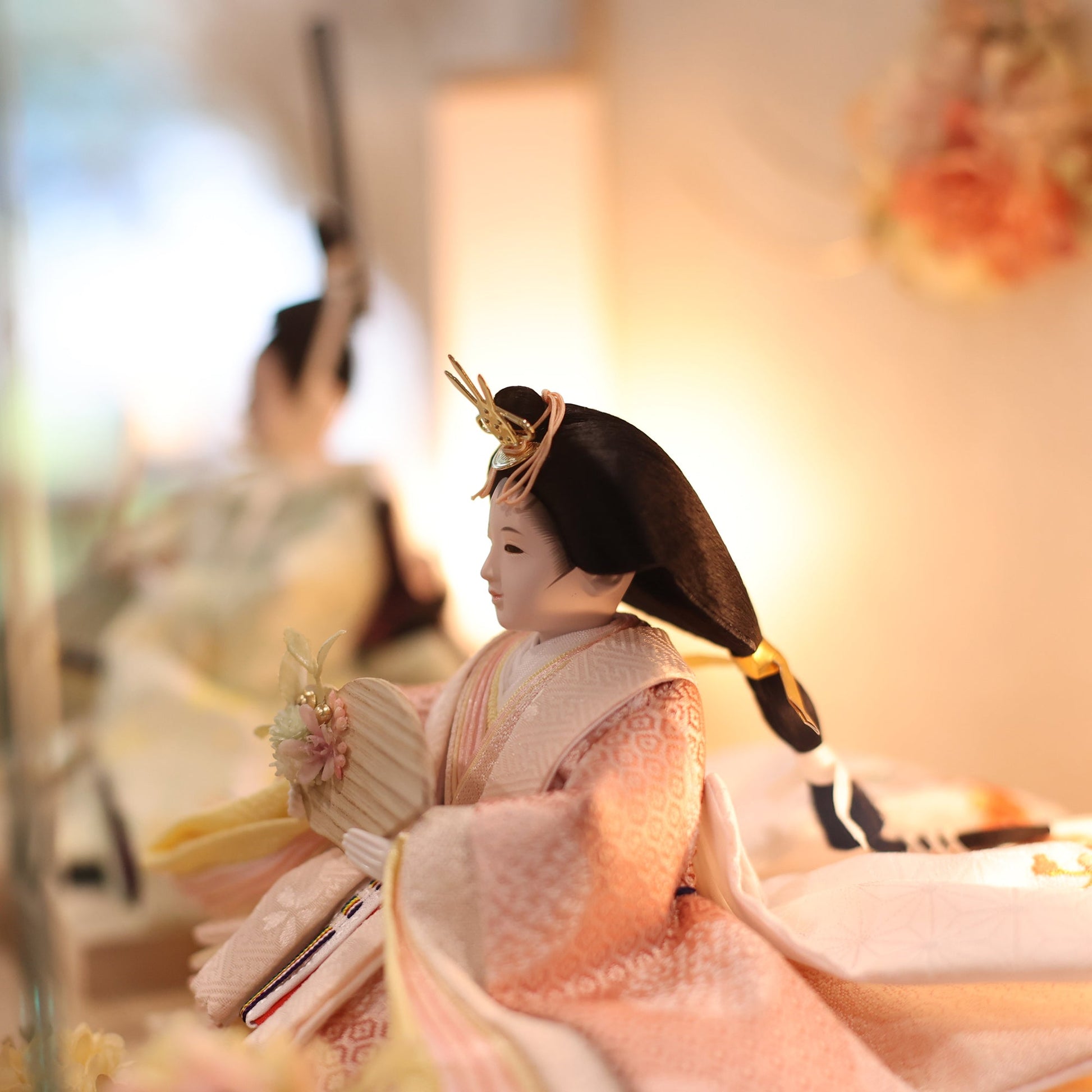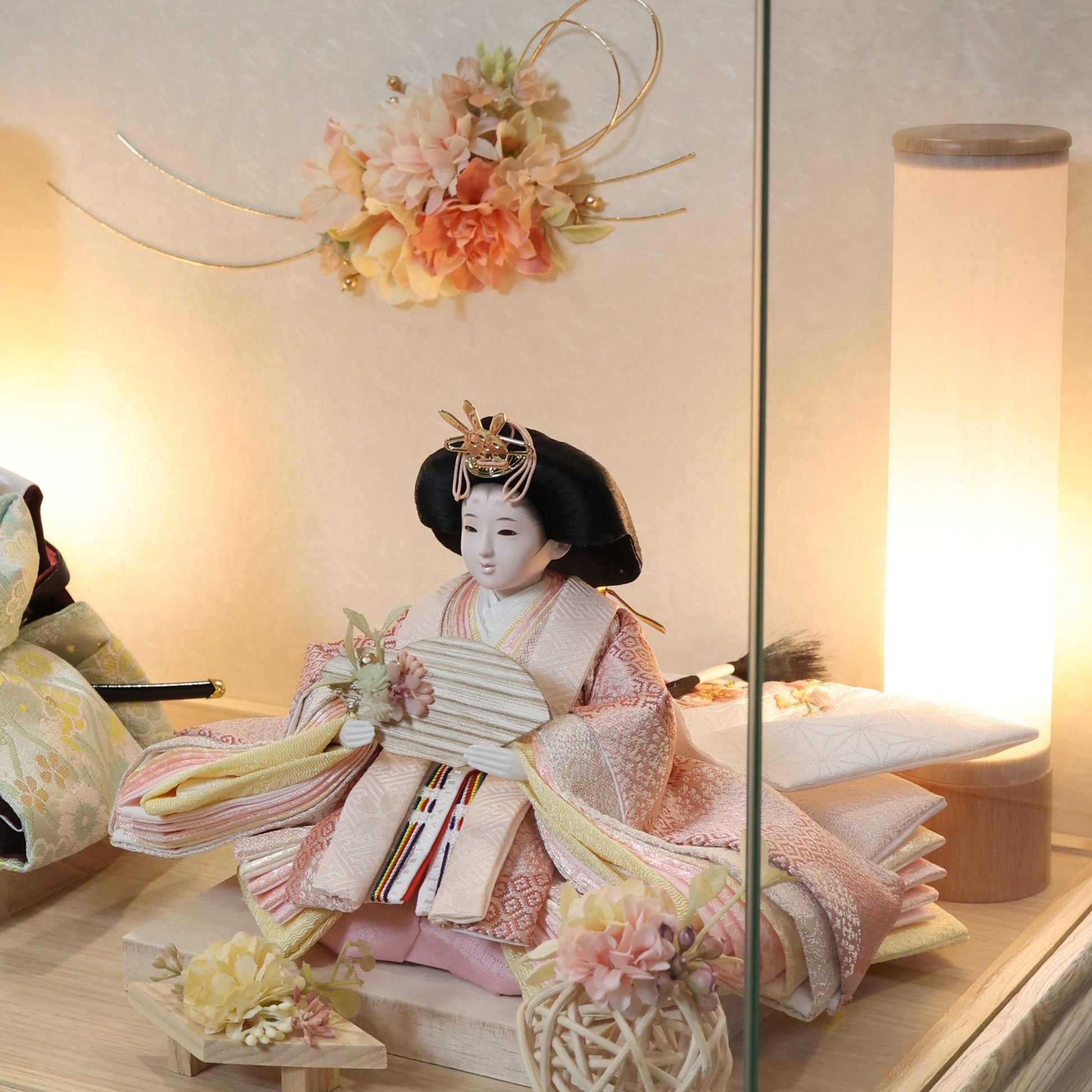 通常2mm厚が一般的な中、当店ではより高品質なAGC製3mmガラスを採用しています。厚みが増すことで強度と安全性が高まり、透明度の高いクリアな美しさを保ちます。大切な雛人形を守りながら、高級感のある見栄えを実現しています。