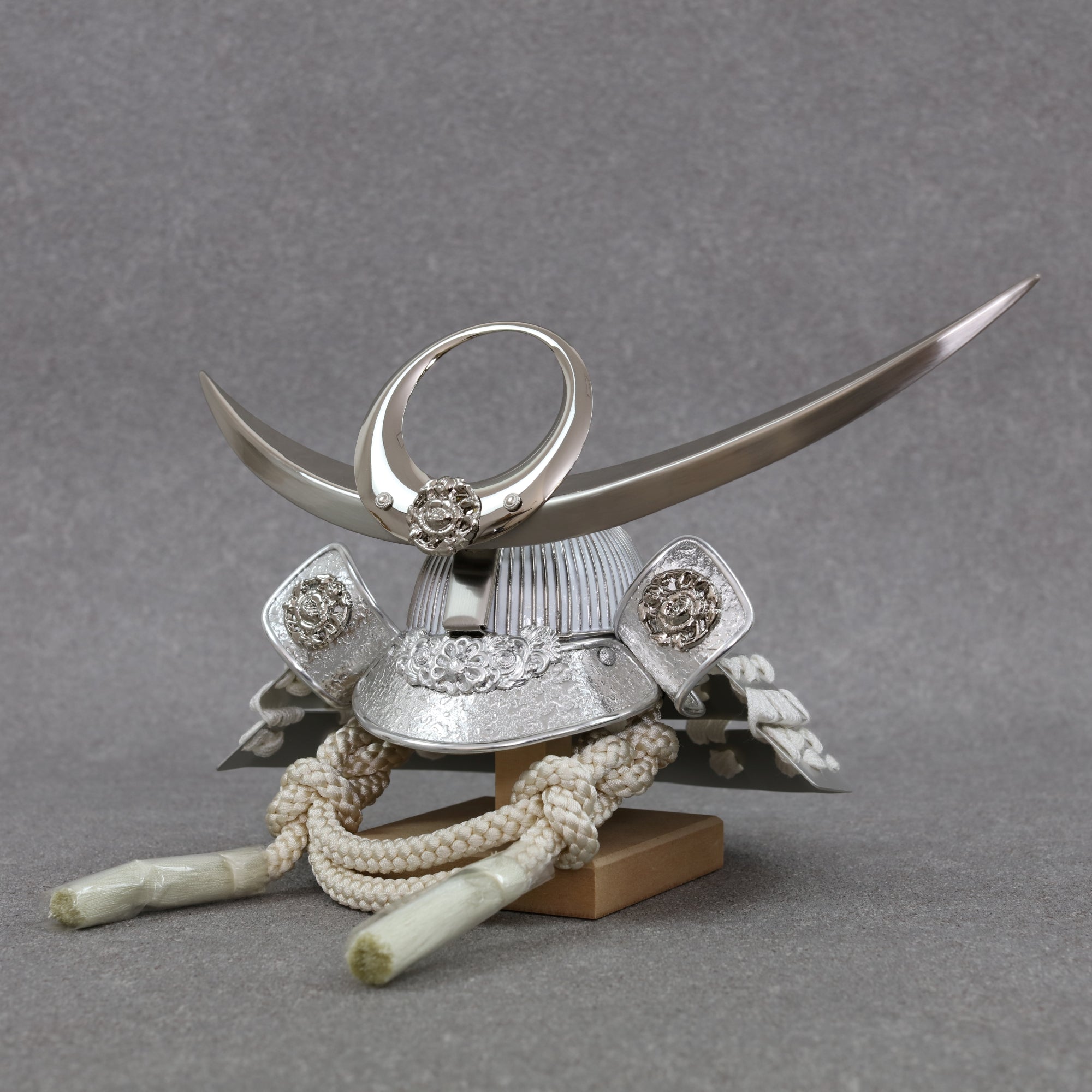 古来より武士たちに愛され続けてきた伝統的な兜の形です。 その特徴的な曲線美と重厚感は、力強いさと調和を象徴し、戦勝祈願や安全を願う縁起物としても高く評価されています。
