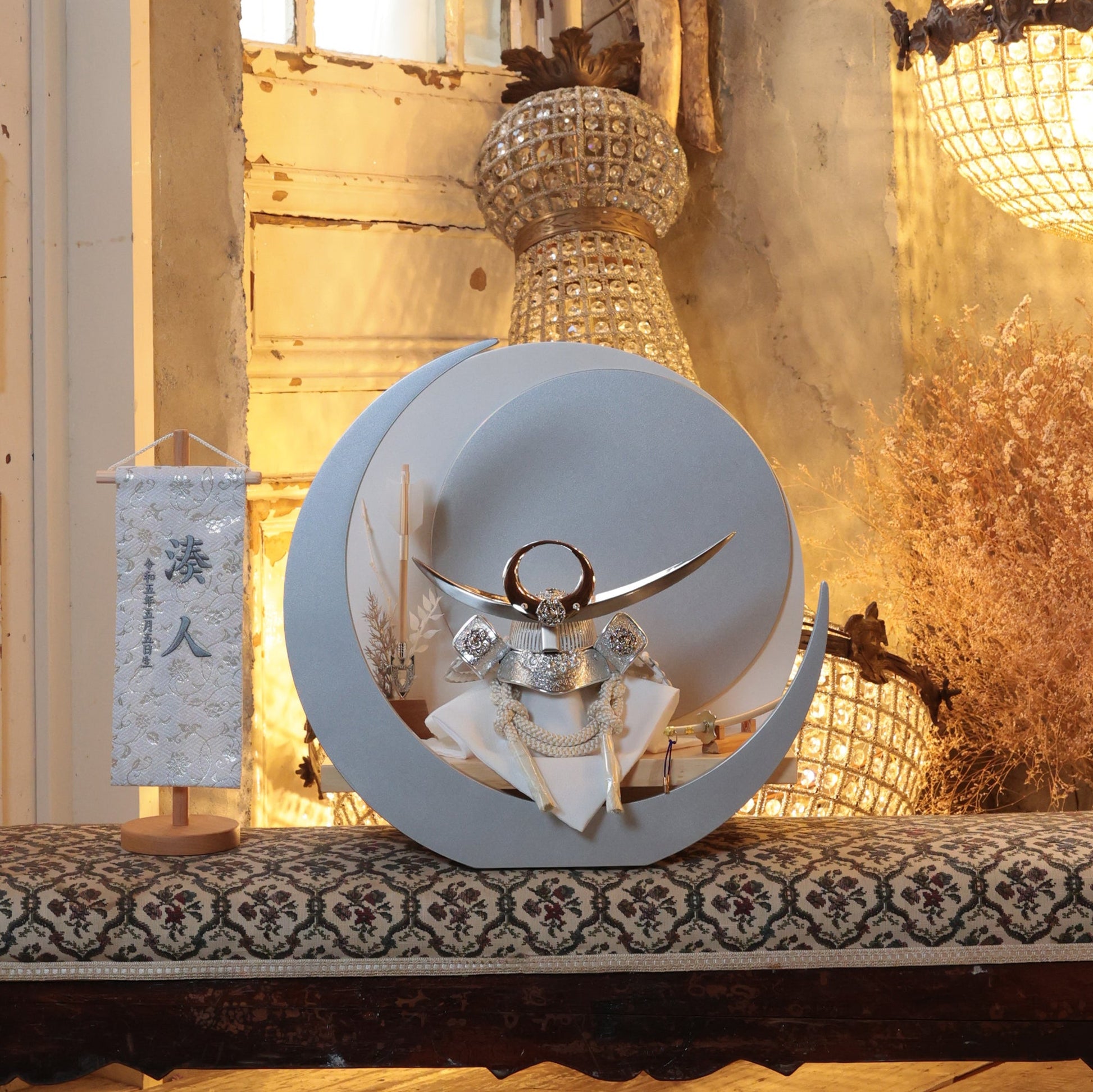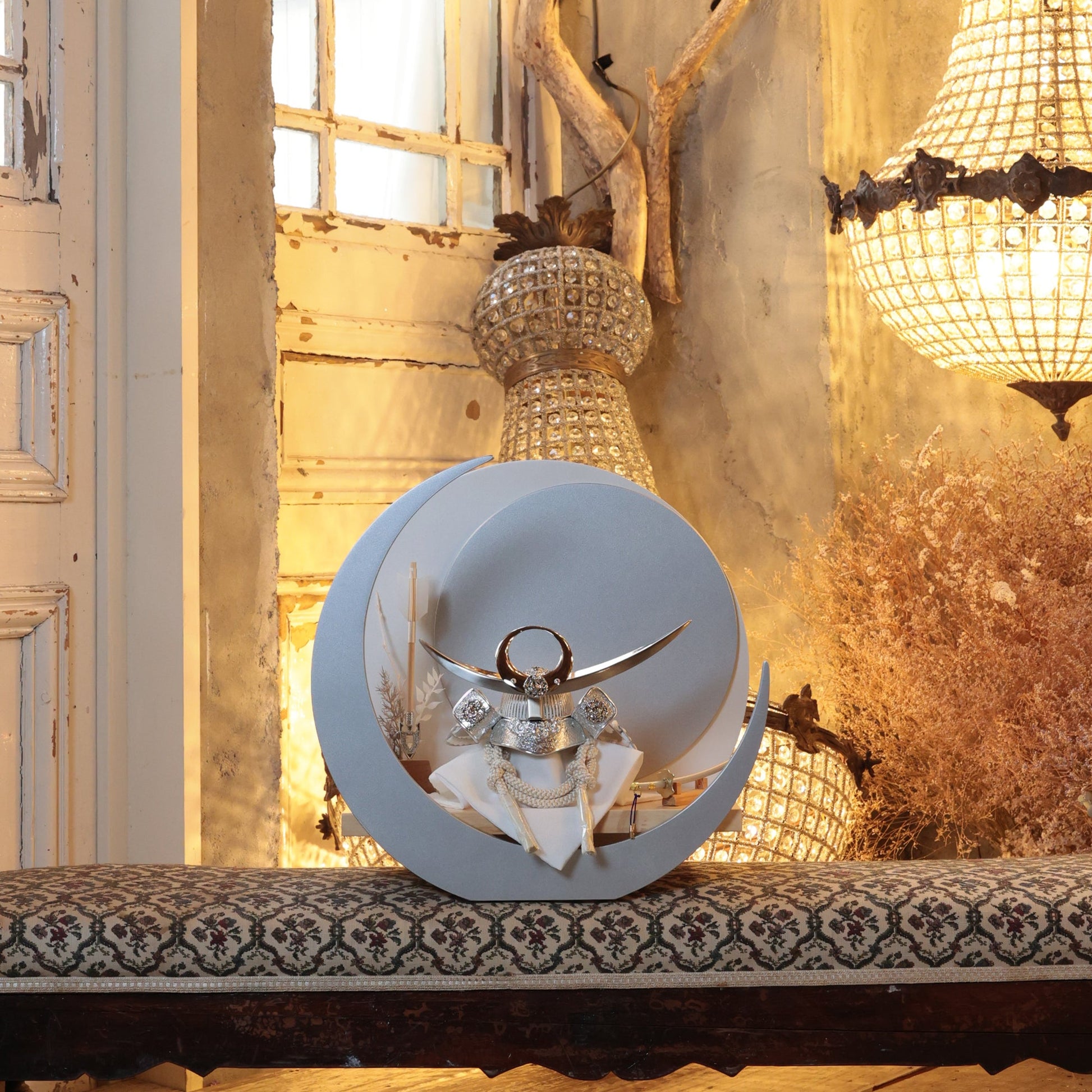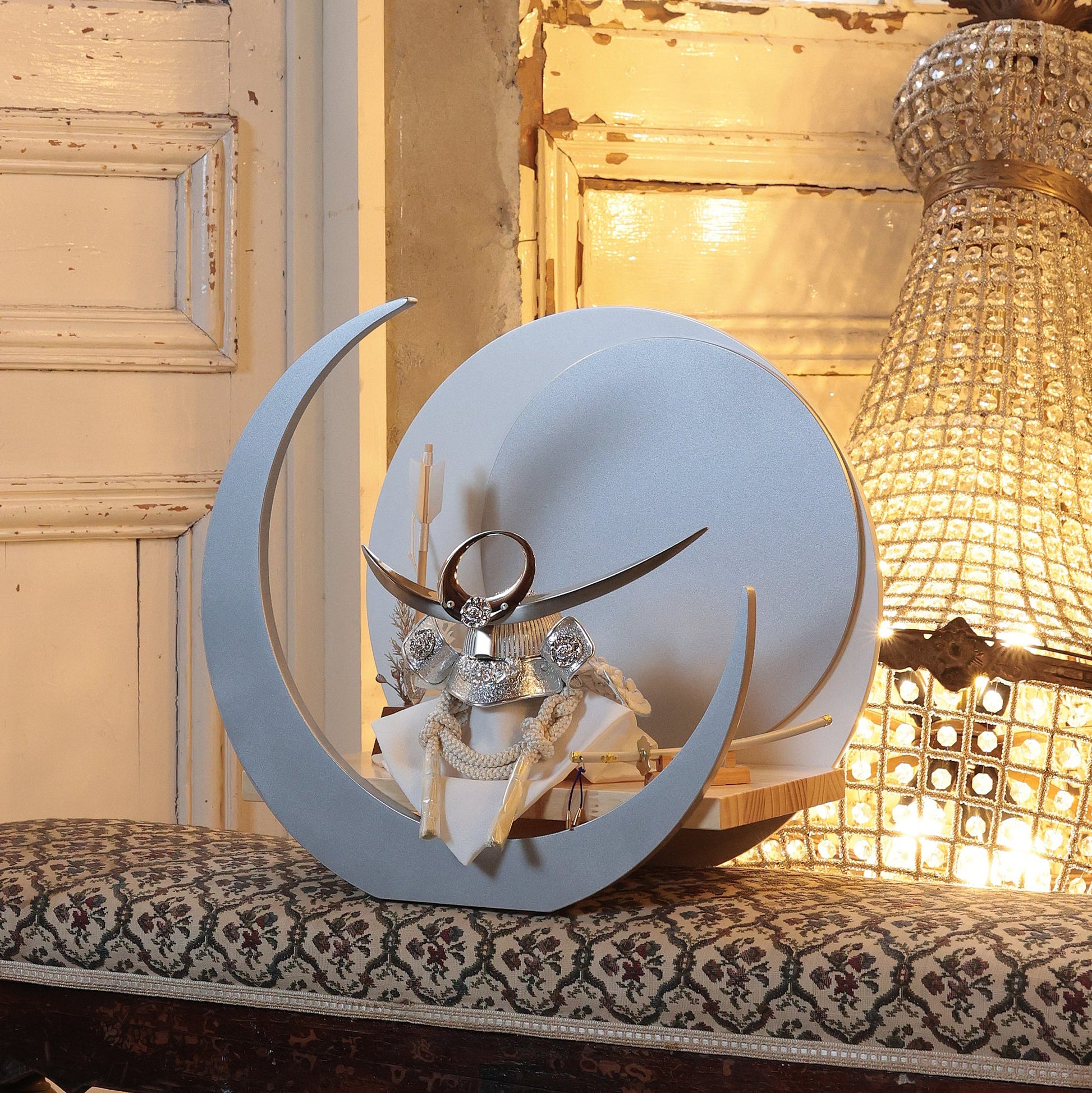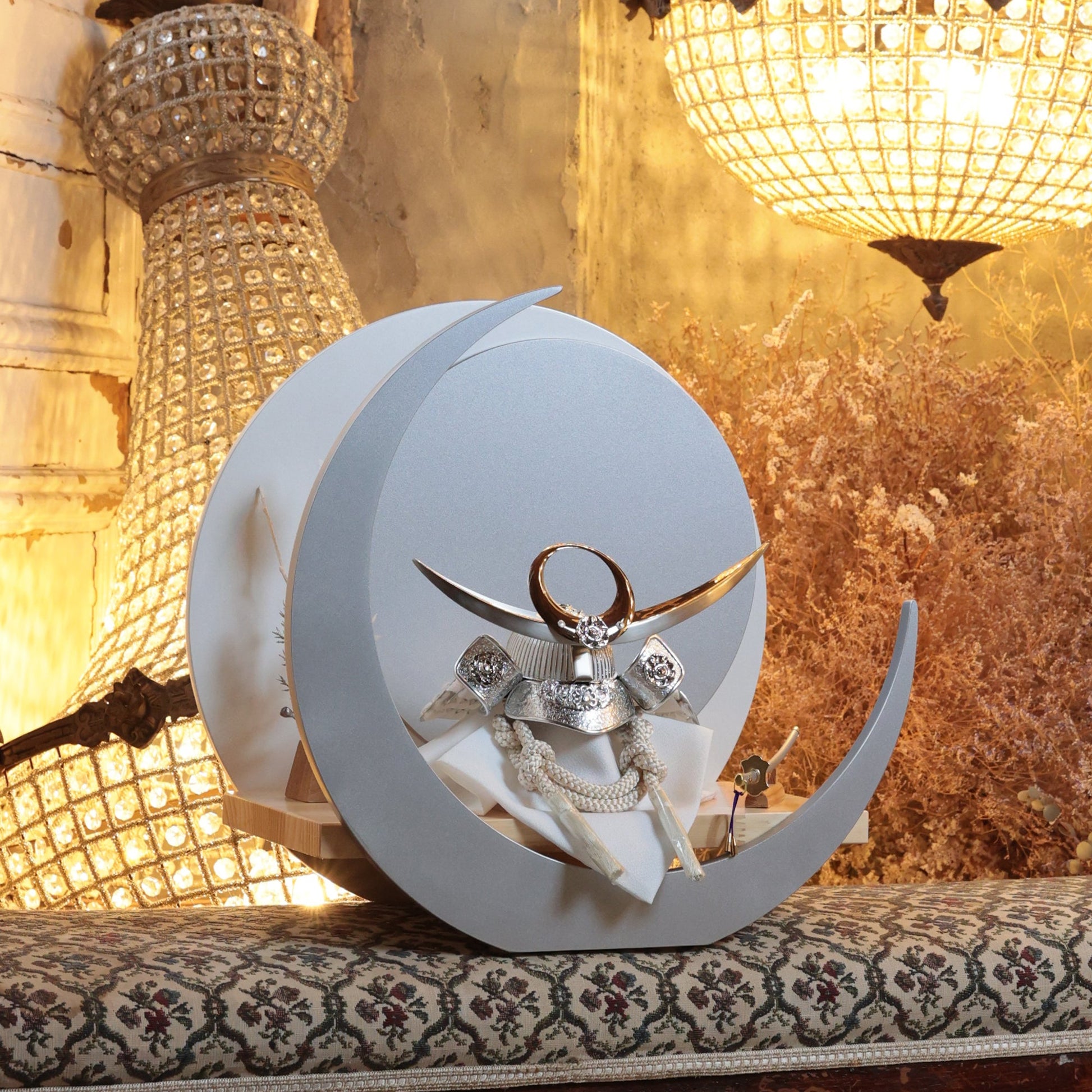 力強い造形と柔らかい曲線が調和した美しい三日月台飾り