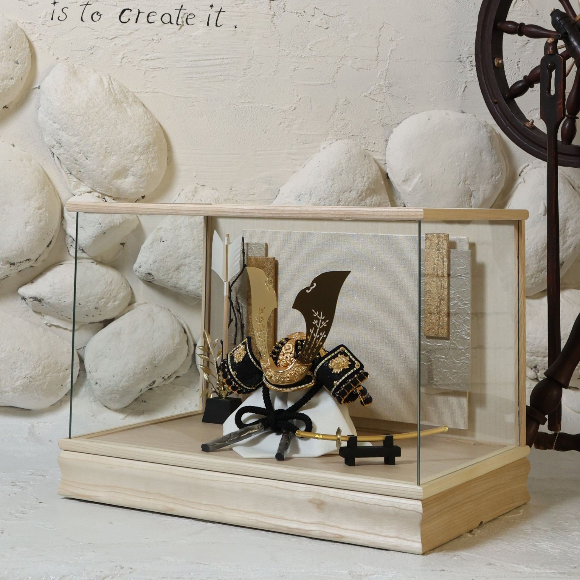 黒糸で威した兜の後ろ姿は、重厚で引き締まった印象を与えます。首元を守る錣(しころ)部分には、黒糸が丁寧に通され、小札(こざね)を結び合わせています。この精緻な作りにより、武士の威厳と気品が際立ちます。