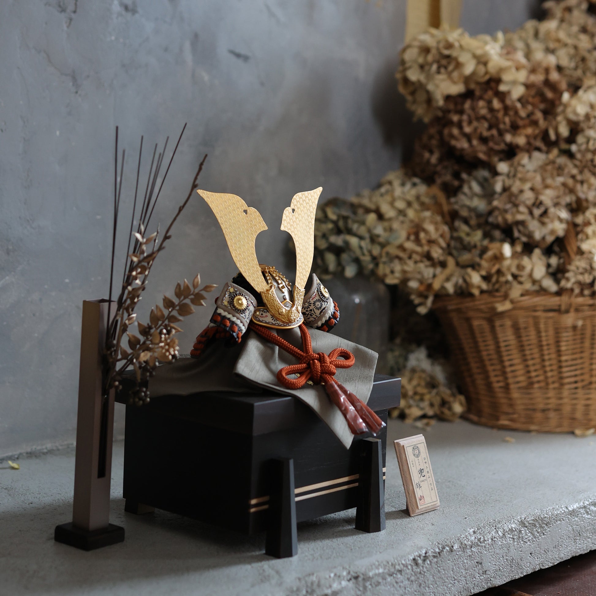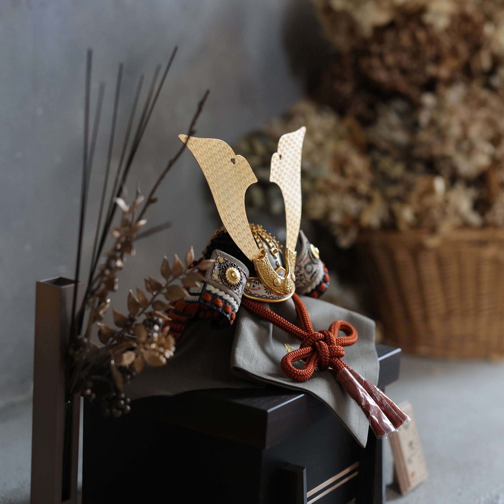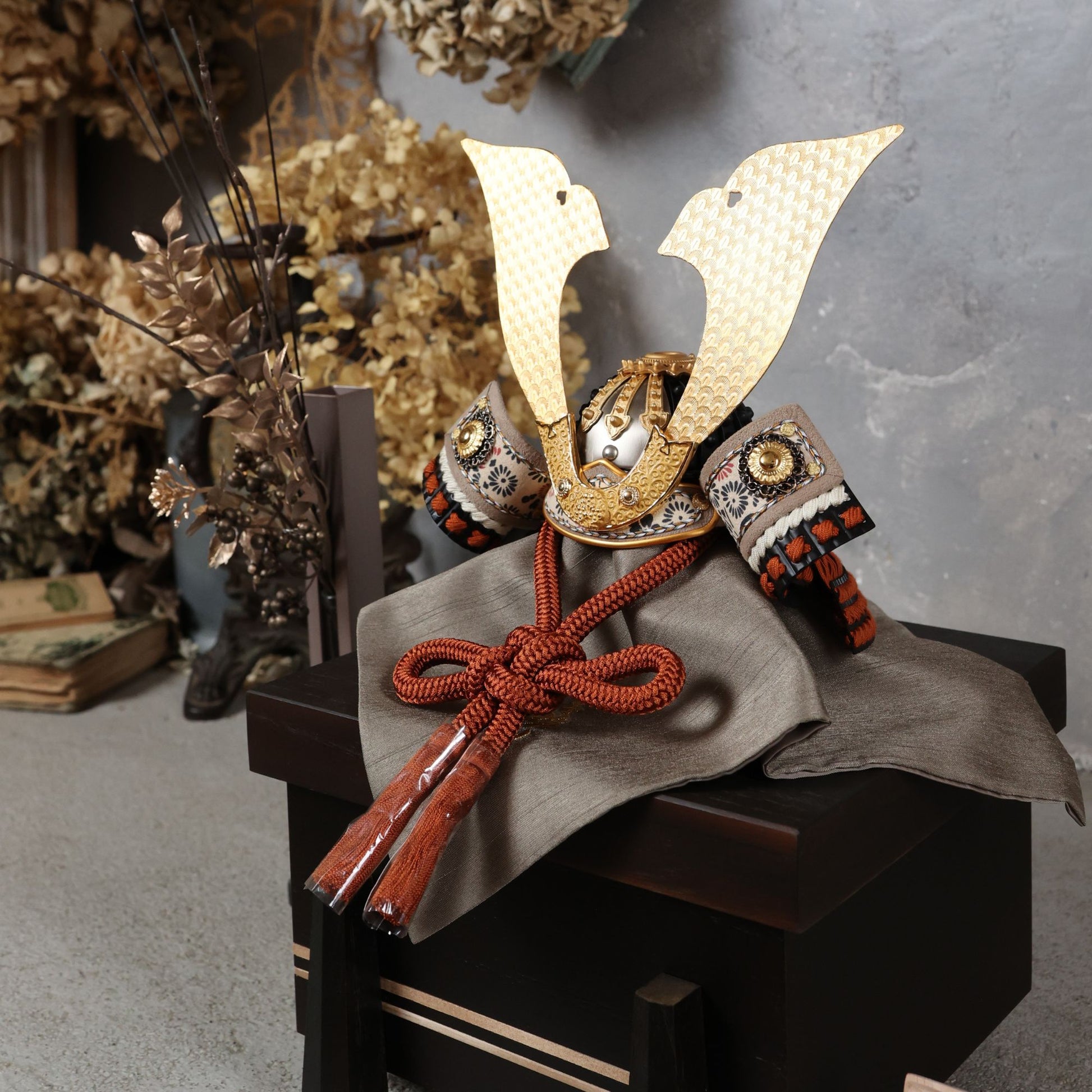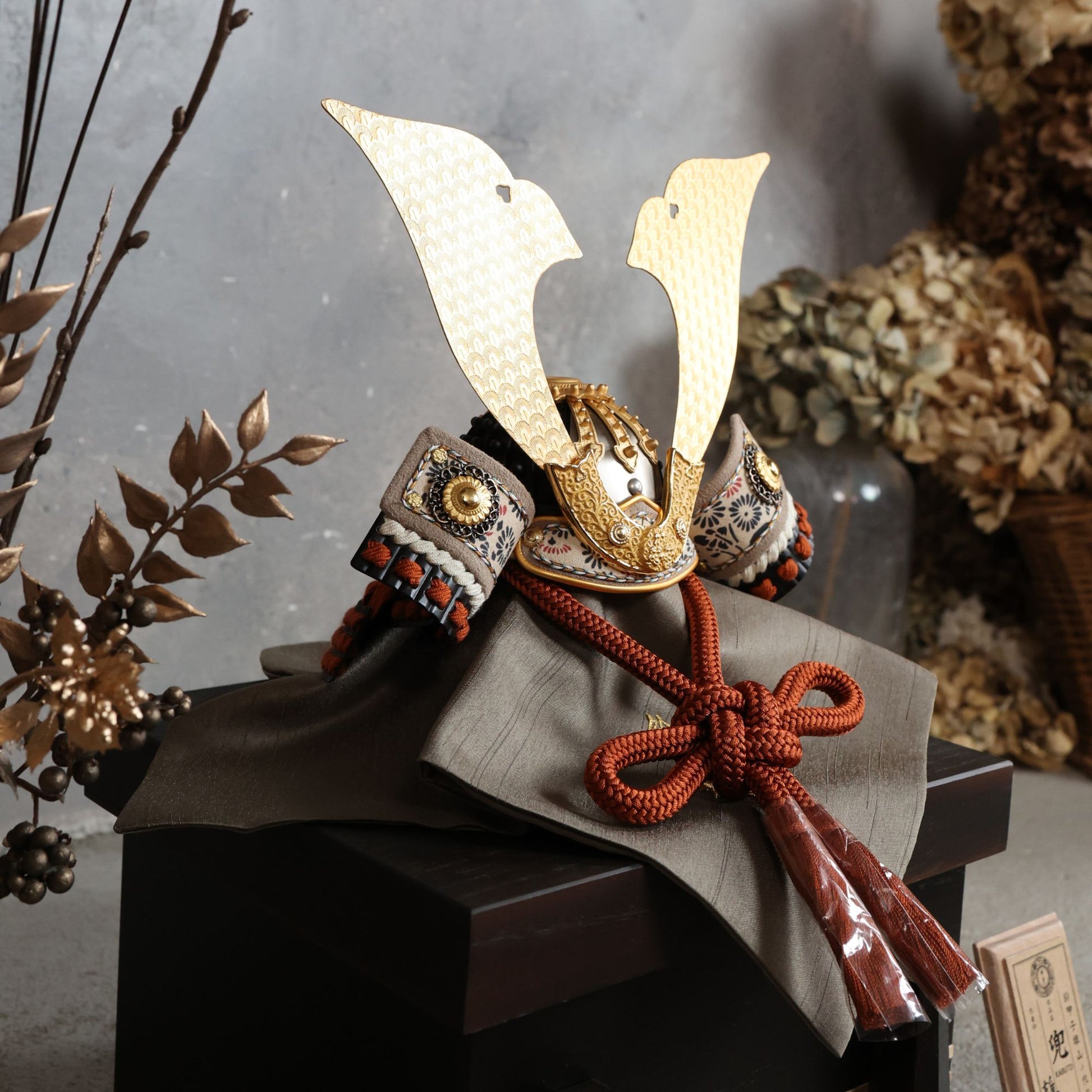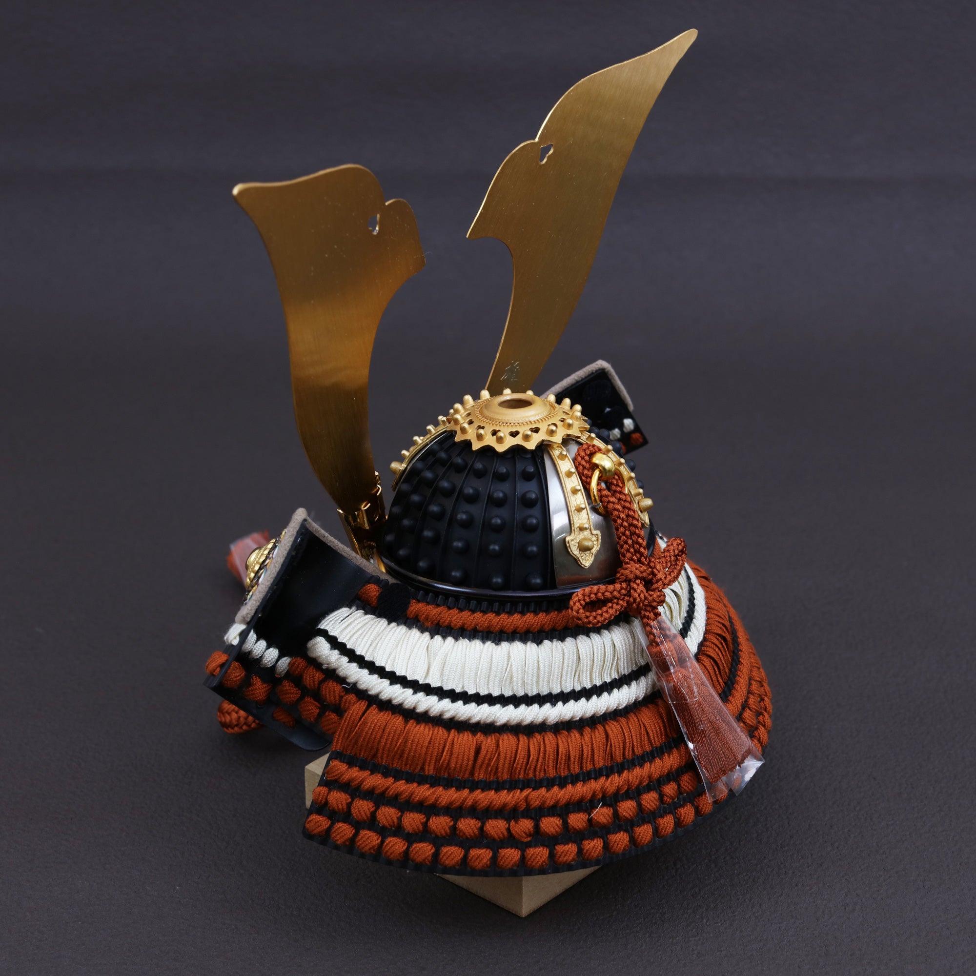 まっすぐ伸びるラインと柔らかな曲線が、兜全体を凛と引き締めます。
