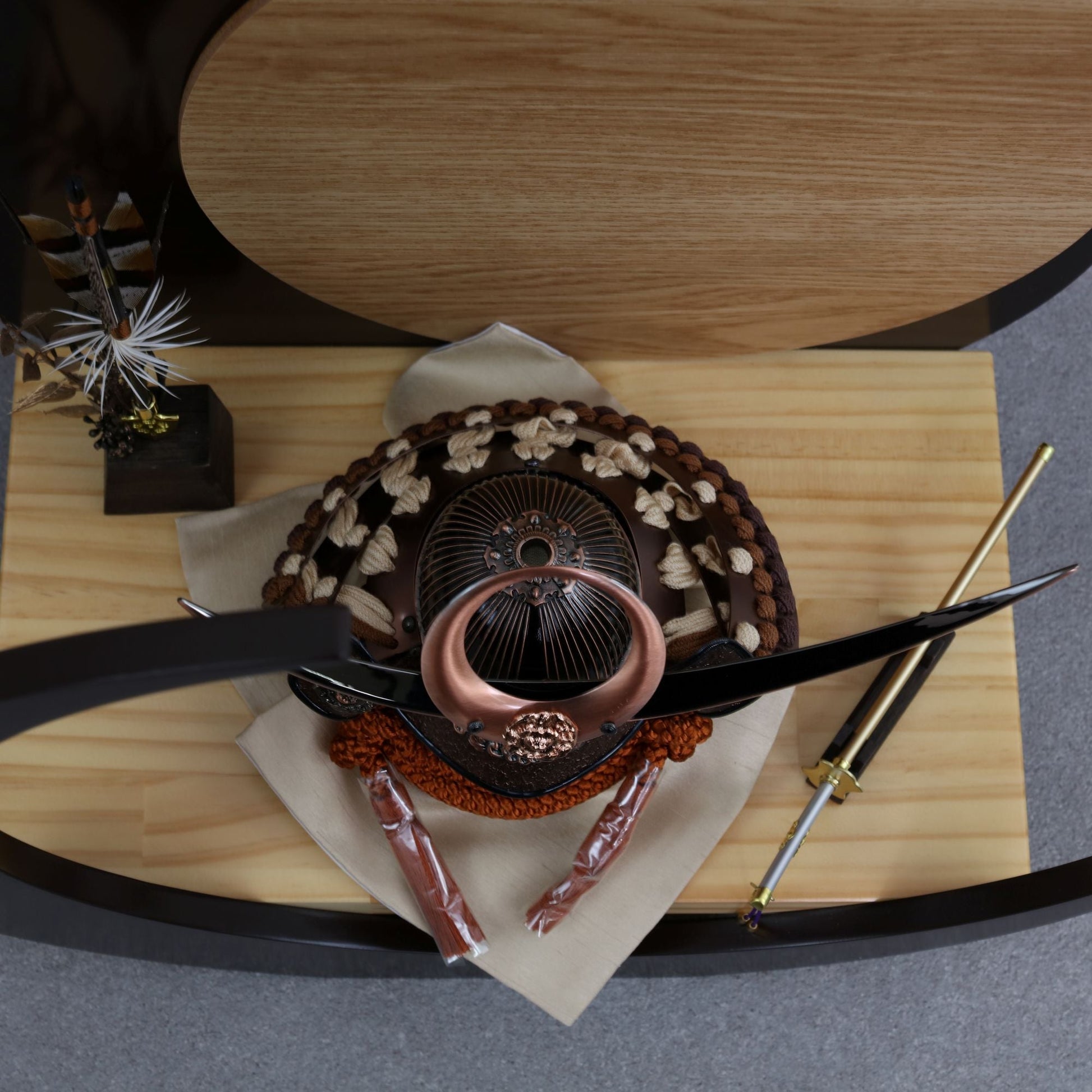 古来より武士たちに愛され続けてきた伝統的な兜の形です。 その特徴的な曲線美と重厚感は、力強いさと調和を象徴し、戦勝祈願や安全を願う縁起物としても高く評価されています。