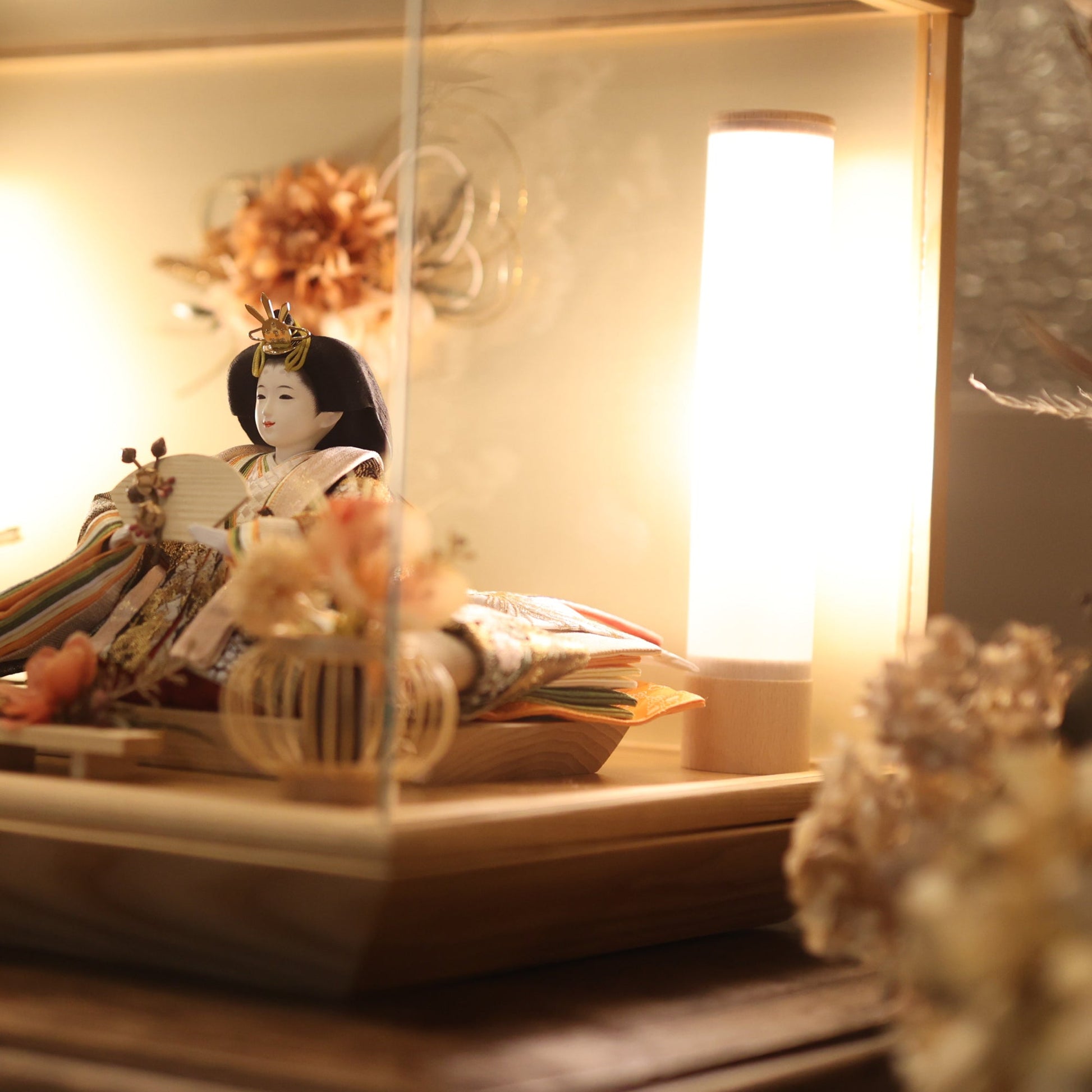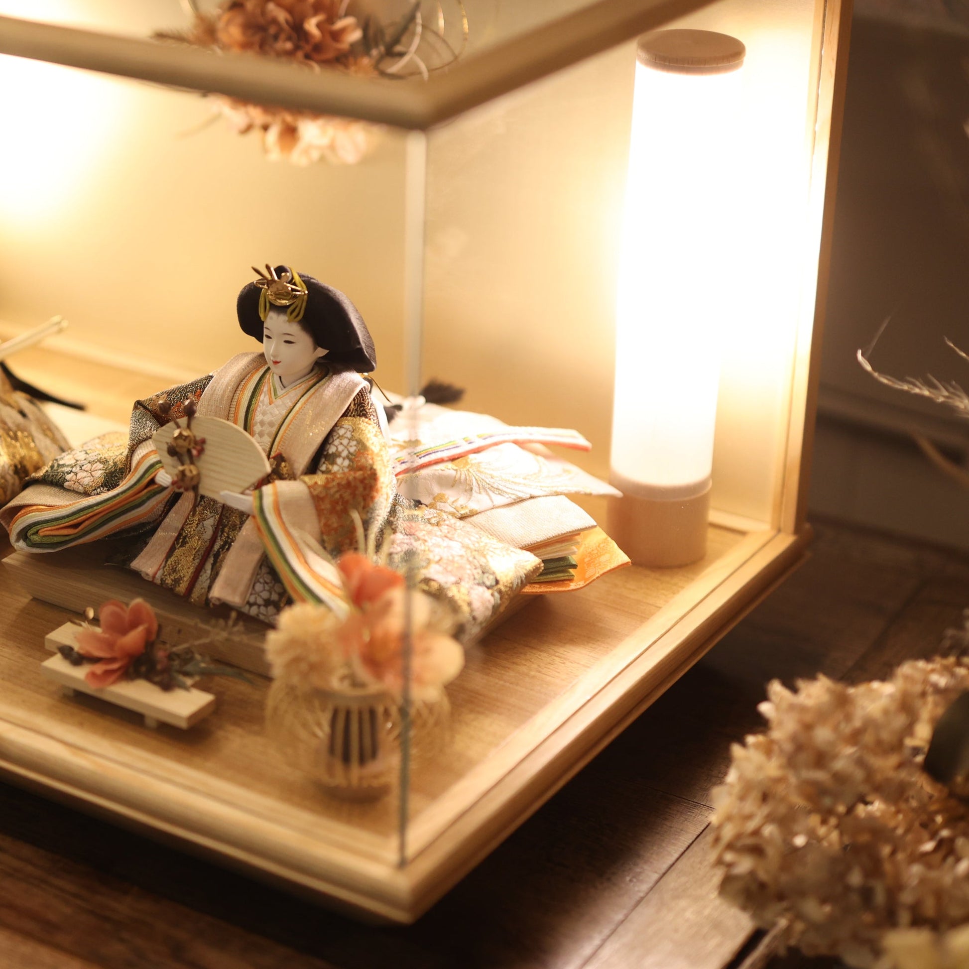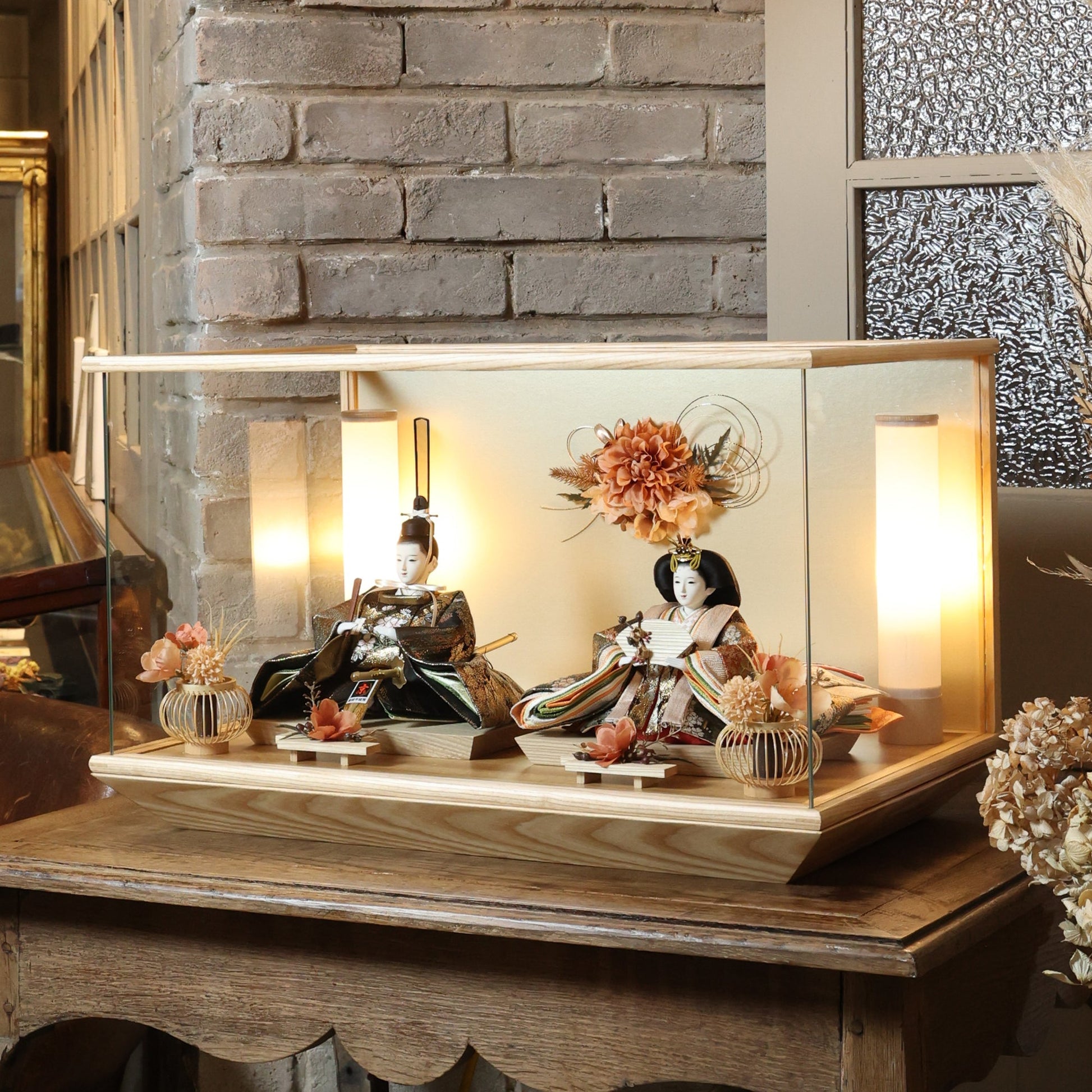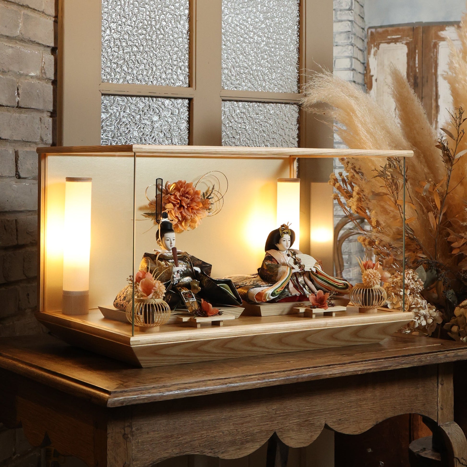 通常2mm厚が一般的な中、当店ではより高品質なAGC製3mmガラスを採用しています。厚みが増すことで強度と安全性が高まり、透明度の高いクリアな美しさを保ちます。大切な雛人形を守りながら、高級感のある見栄えを実現しています。