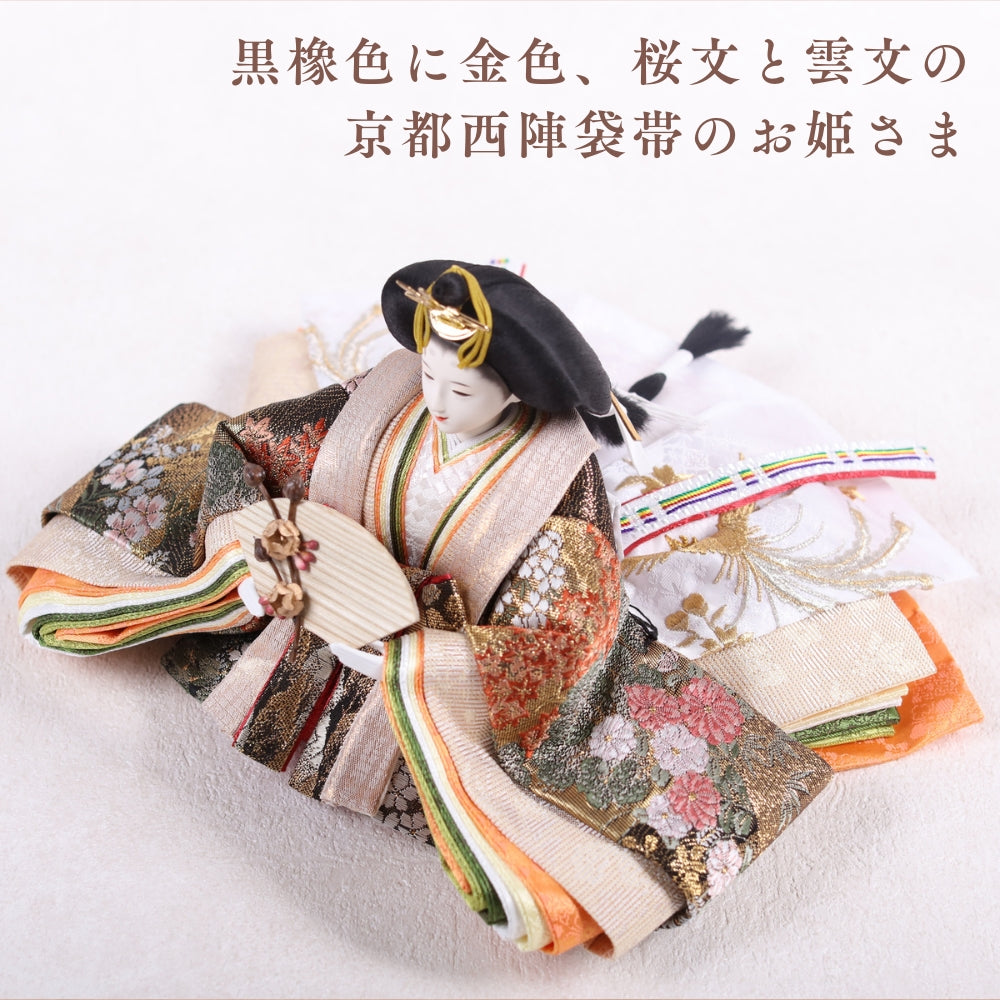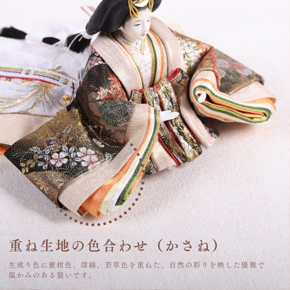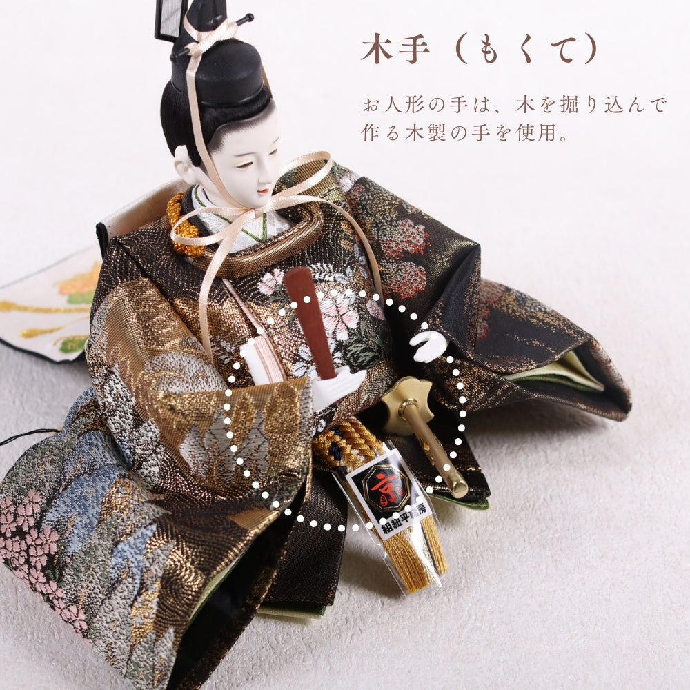 国産の栓(せん)は、美しい木目と温もりある質感が魅力の天然木です。耐久性に優れ、経年とともに味わいを深めます。台座や屏風などに使用することで、自然素材ならではの落ち着いた風合いと上質感を演出し、雛人形全体をより品格ある印象に仕上げます。