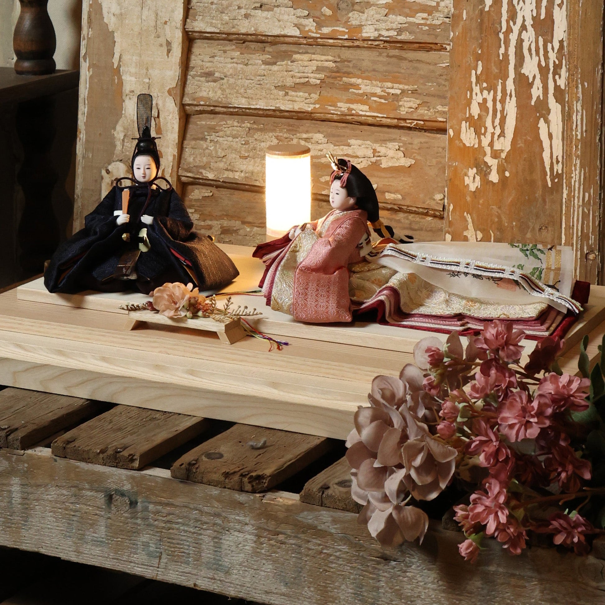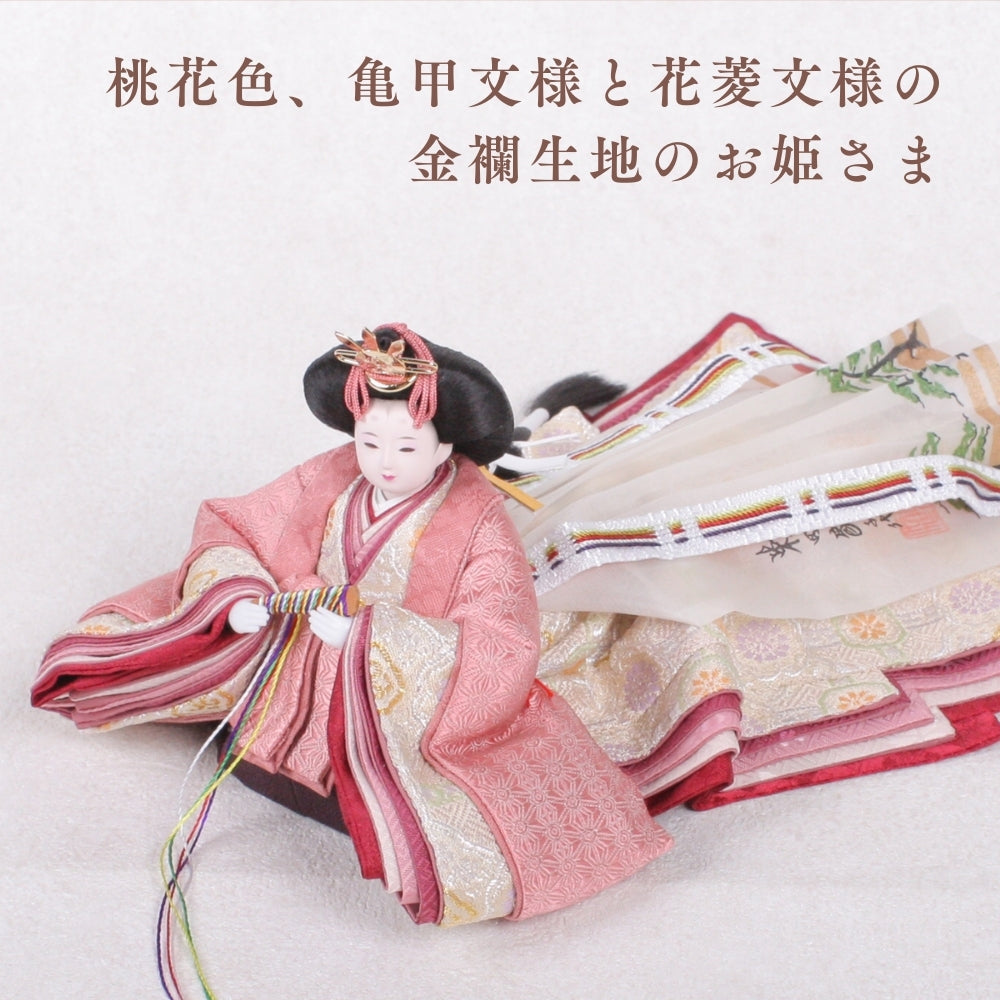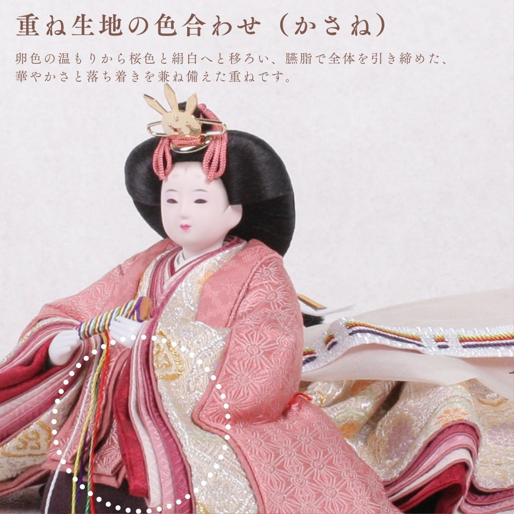 国産の栓(せん)は、美しい木目と温もりある質感が魅力の天然木です。耐久性に優れ、経年とともに味わいを深めます。台座や屏風などに使用することで、自然素材ならではの落ち着いた風合いと上質感を演出し、雛人形全体をより品格ある印象に仕上げます。