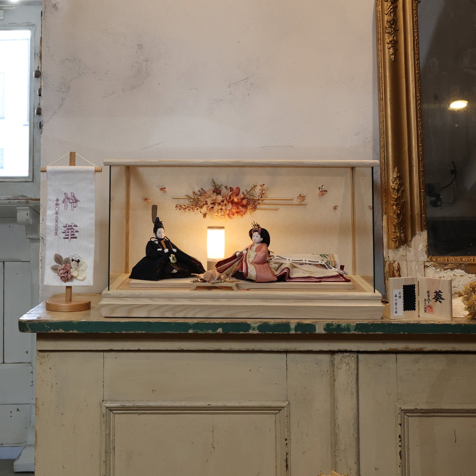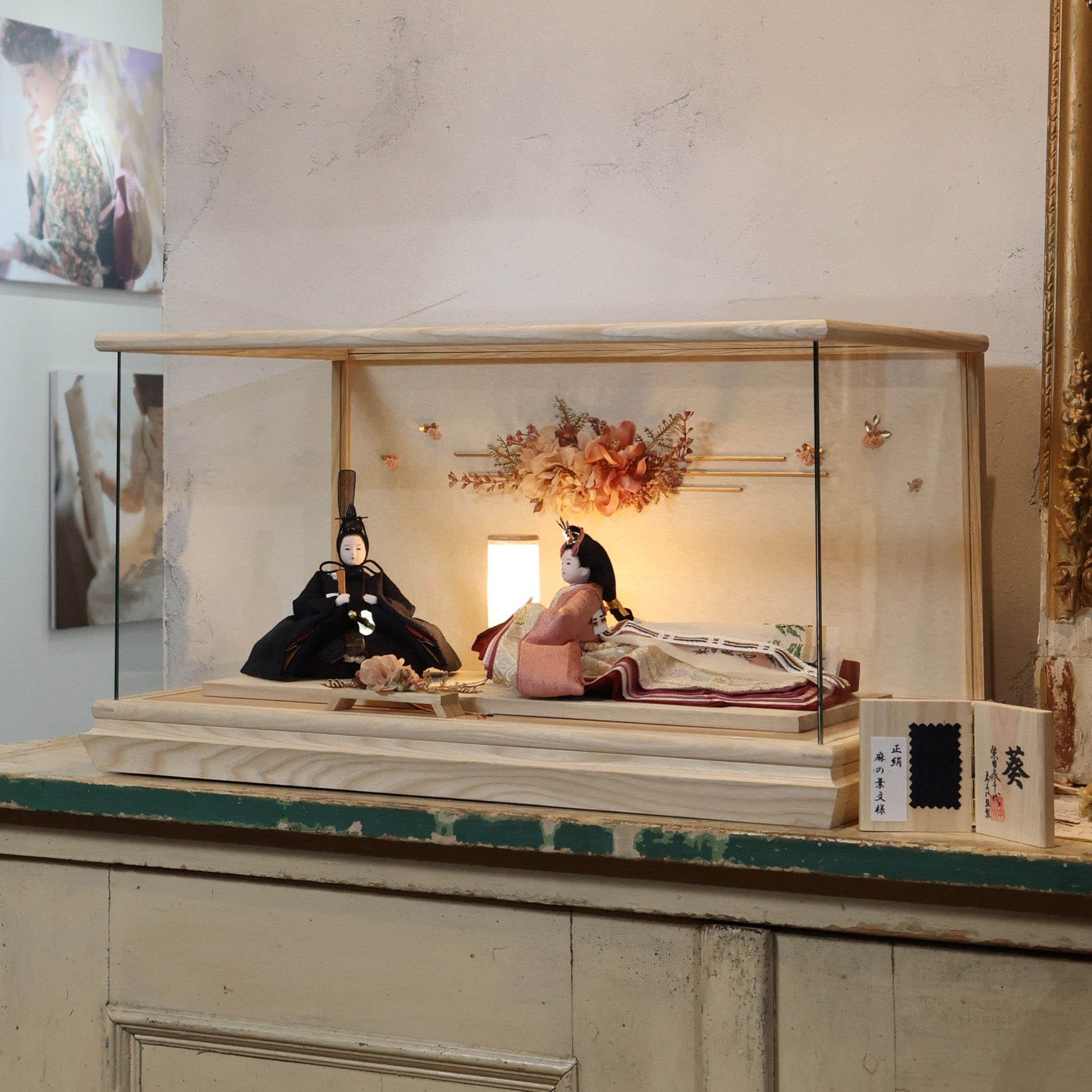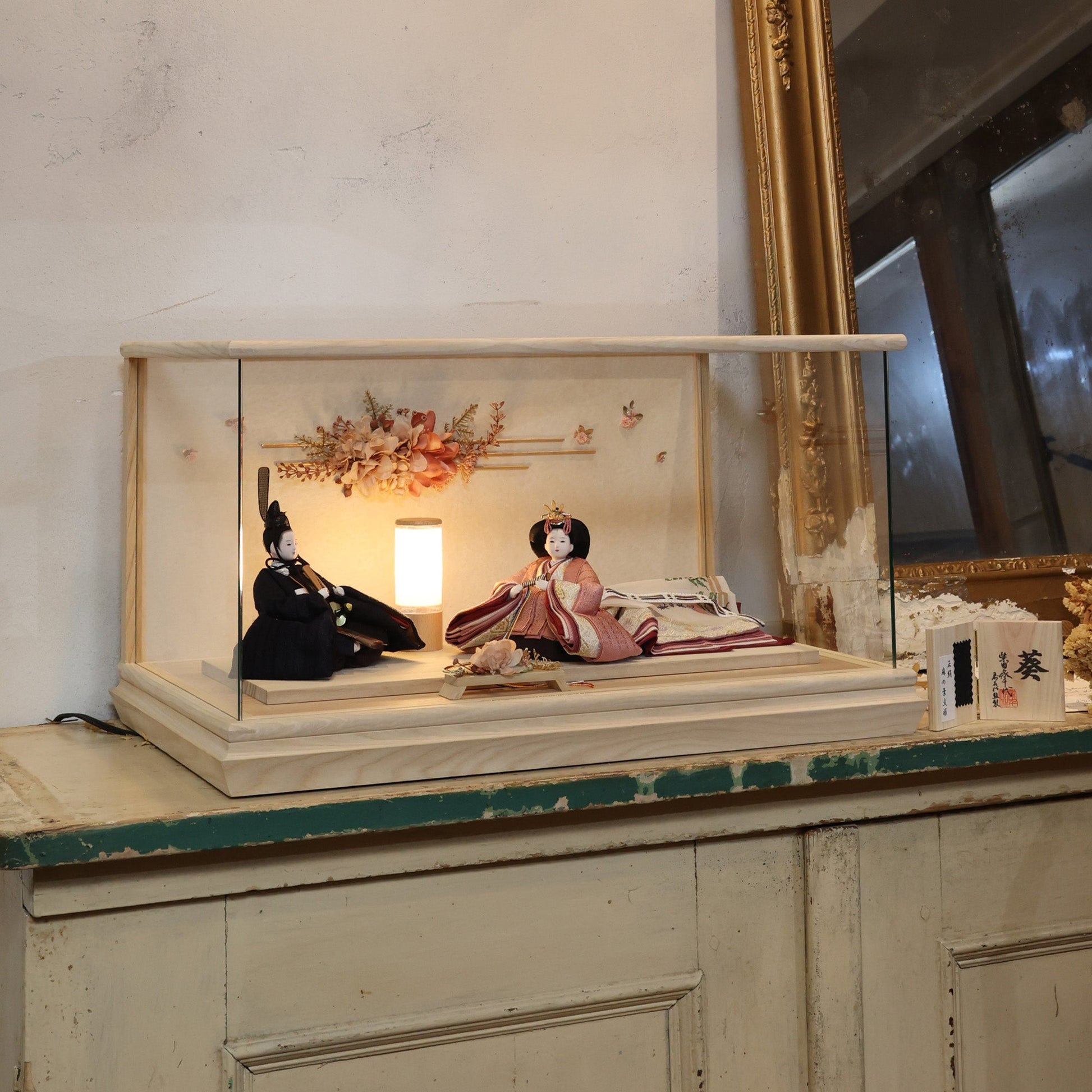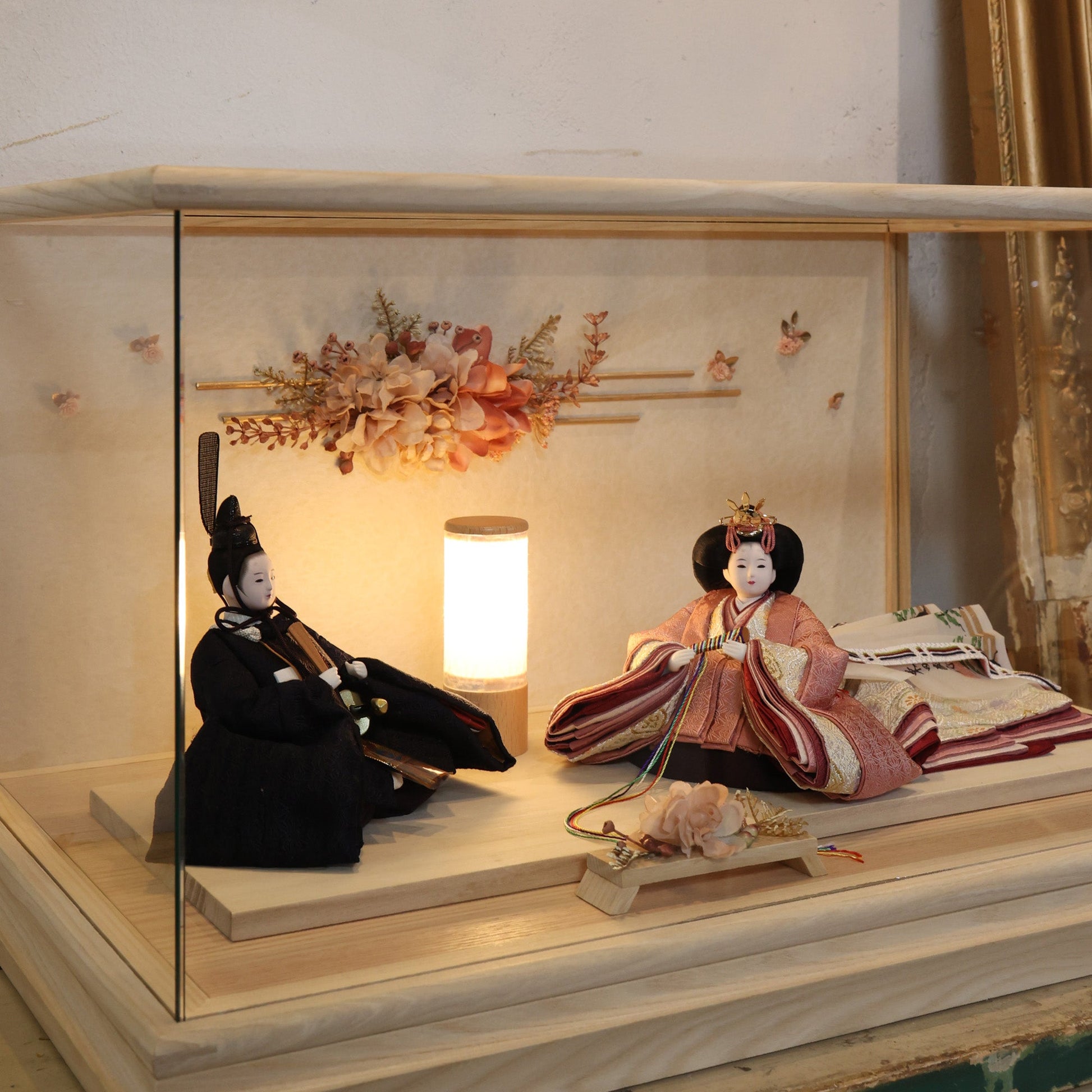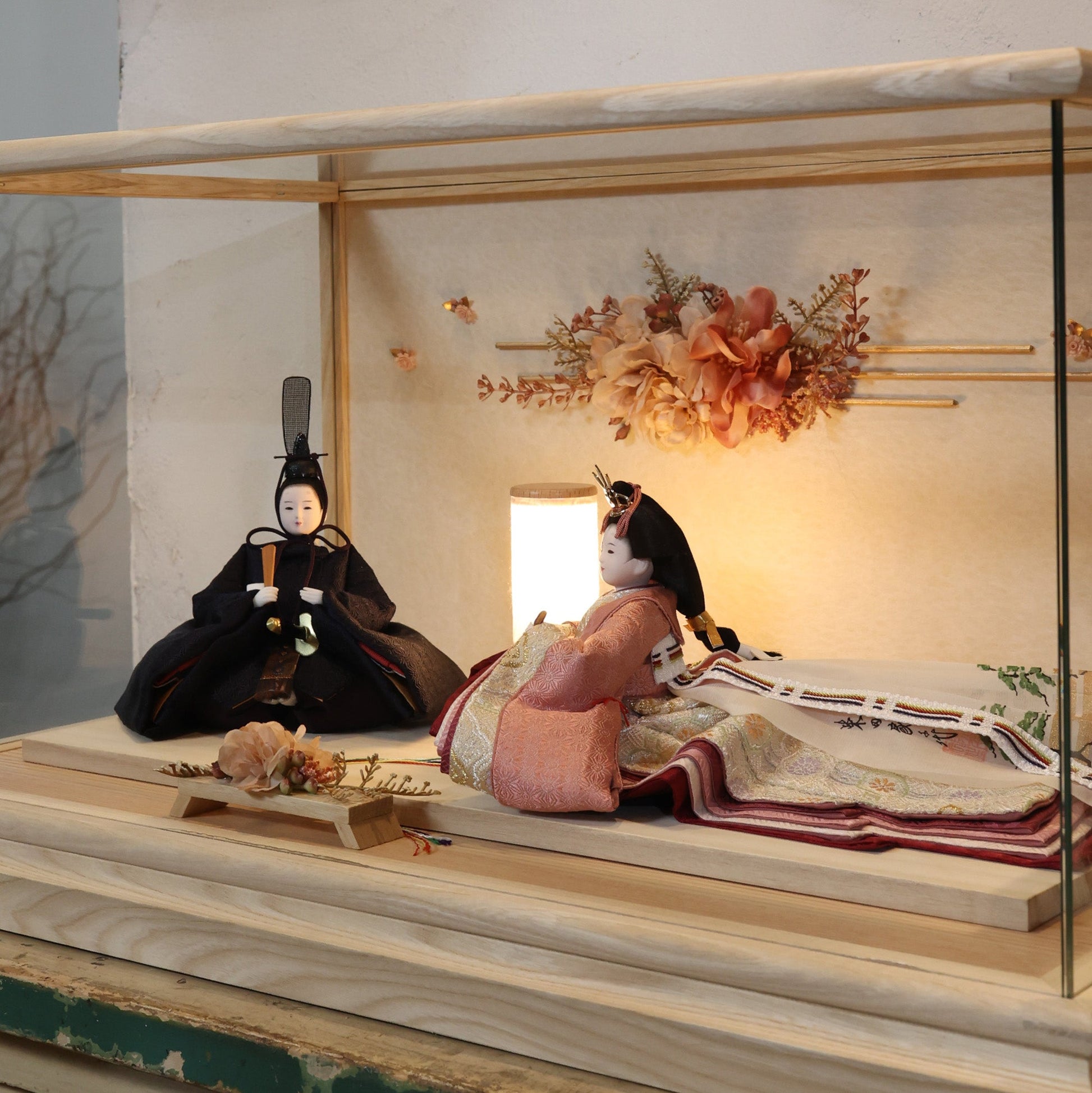 通常2mm厚が一般的な中、当店ではより高品質なAGC製3mmガラスを採用しています。厚みが増すことで強度と安全性が高まり、透明度の高いクリアな美しさを保ちます。大切な雛人形を守りながら、高級感のある見栄えを実現しています。