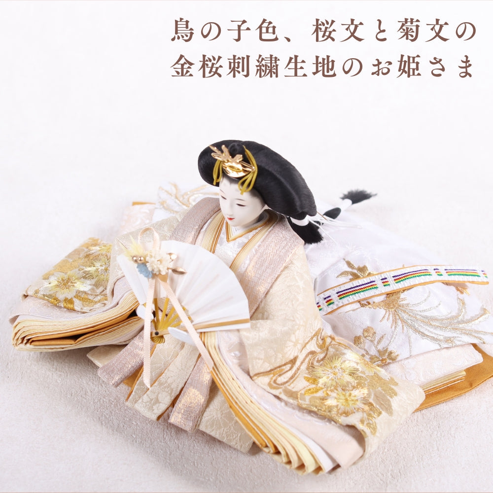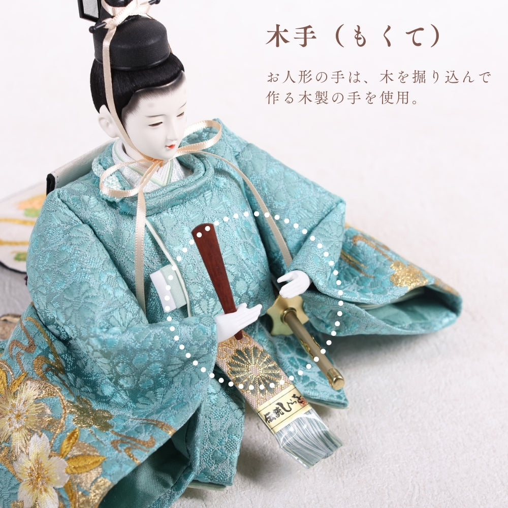 国産の栓(せん)は、美しい木目と温もりある質感が魅力の天然木です。耐久性に優れ、経年とともに味わいを深めます。台座や屏風などに使用することで、自然素材ならではの落ち着いた風合いと上質感を演出し、雛人形全体をより品格ある印象に仕上げます。