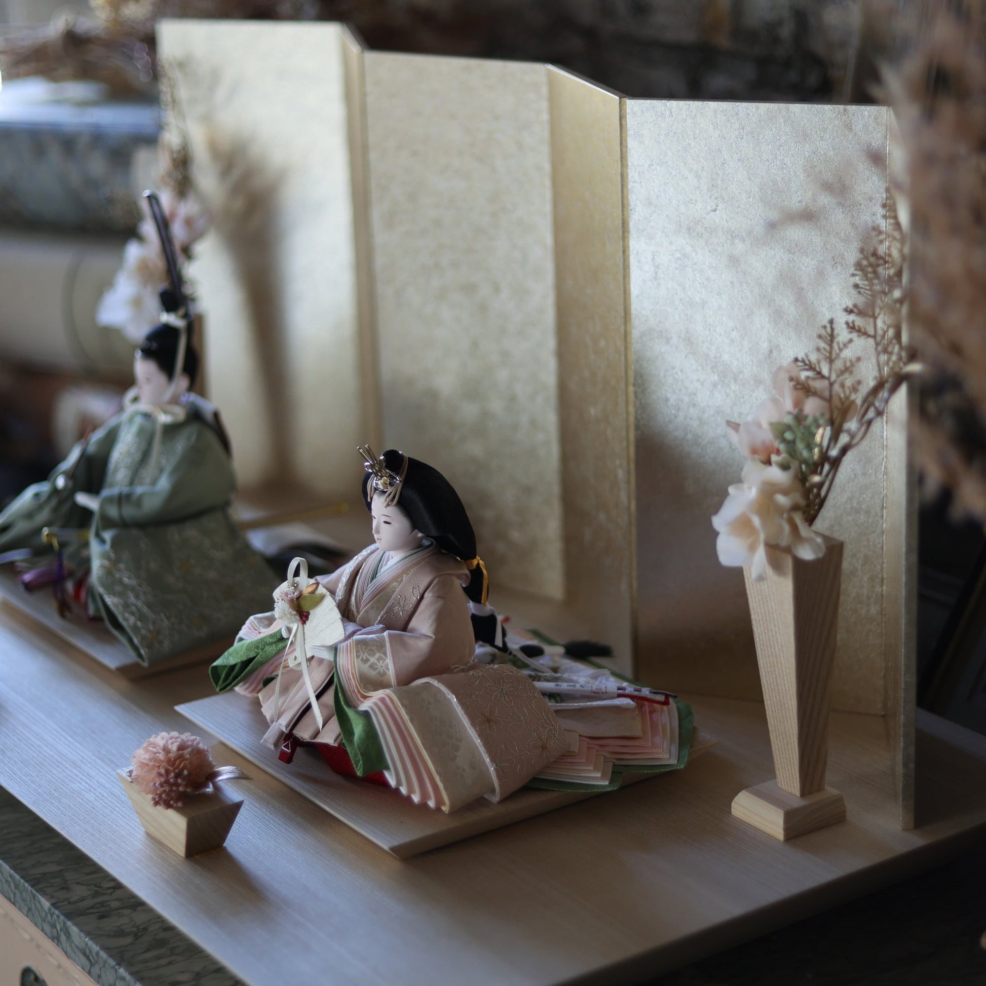 国産の栓(せん)は、美しい木目と温もりある質感が魅力の天然木です。耐久性に優れ、経年とともに味わいを深めます。台座や屏風などに使用することで、自然素材ならではの落ち着いた風合いと上質感を演出し、雛人形全体をより品格ある印象に仕上げます。