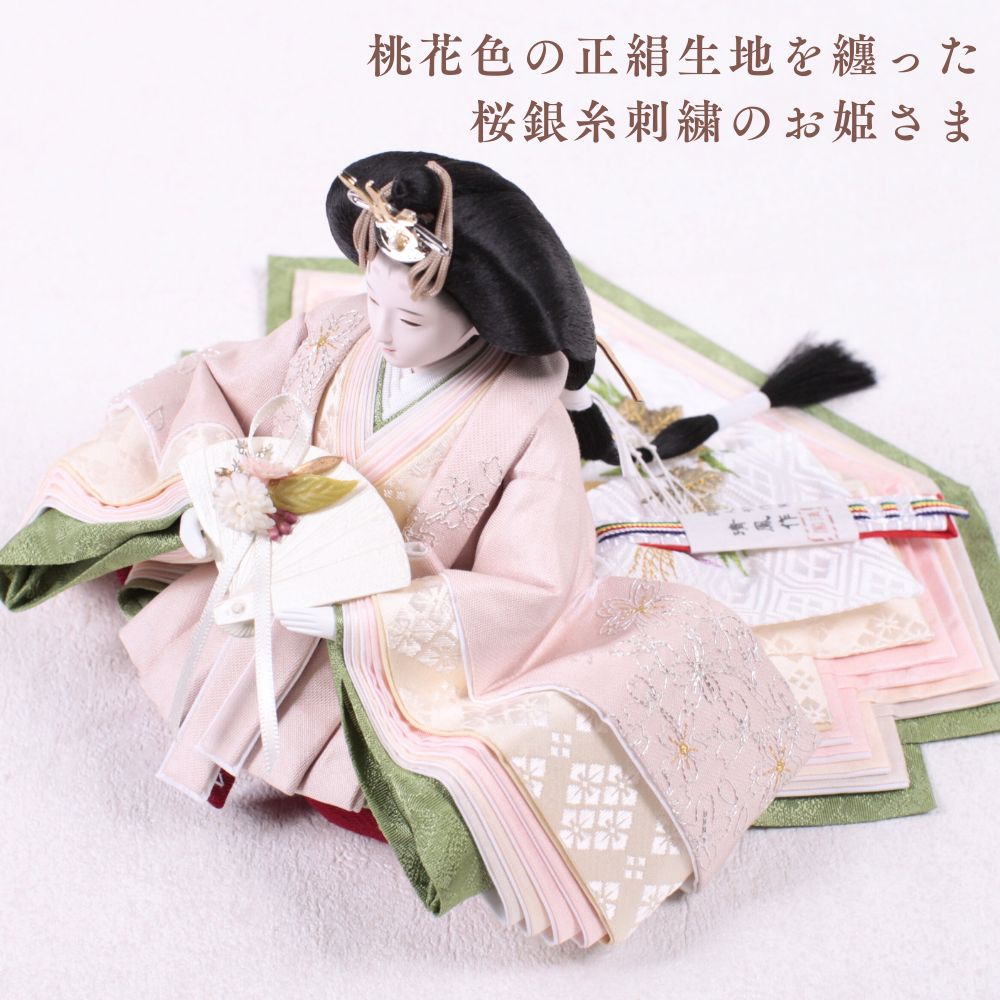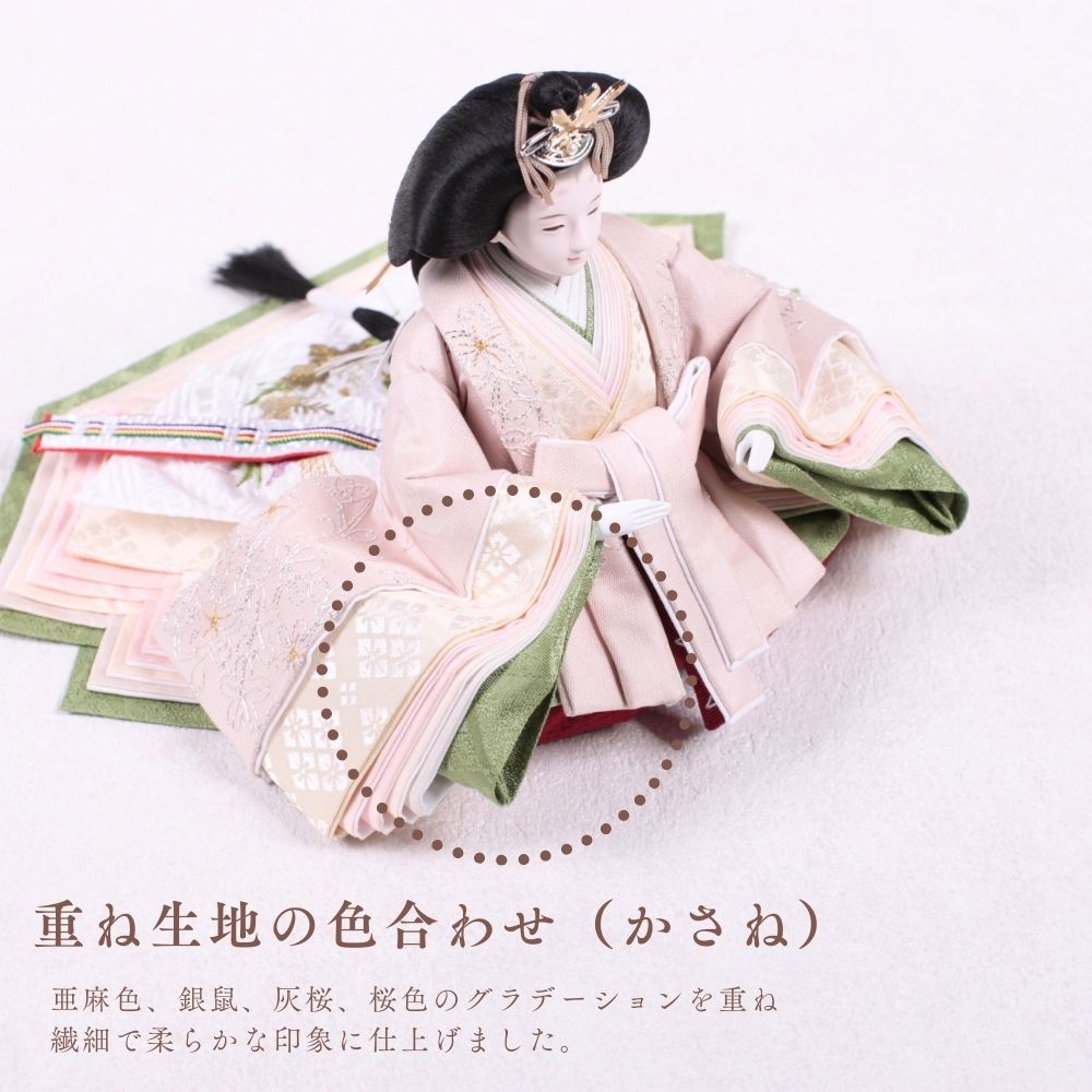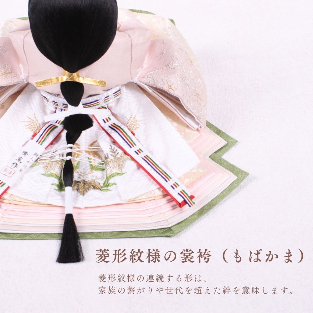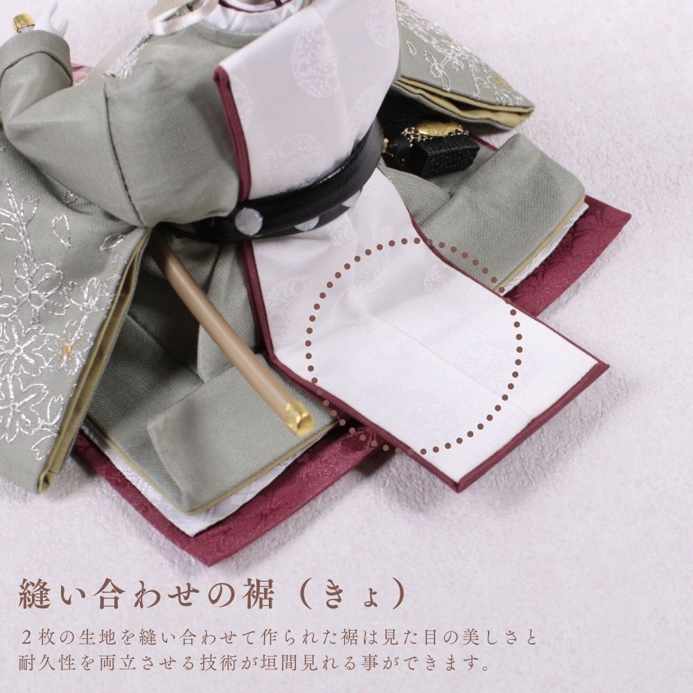 正絹は、100%絹から作られた生地で、「本絹」とも呼ばれます。蚕の繭を原料にし、複雑な工程を経て製造されます。絹糸を織って生地に仕上げることで、独特の光沢と滑らかな質感が生まれ、高級感のあるお人形が完成します。正絹は伝統的な工芸品に広く用いられ、その美しさが際立っています。