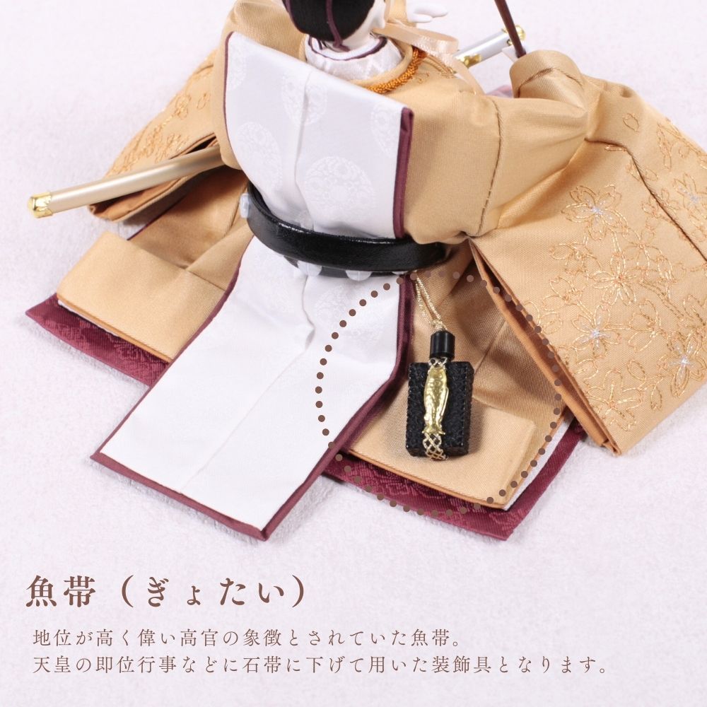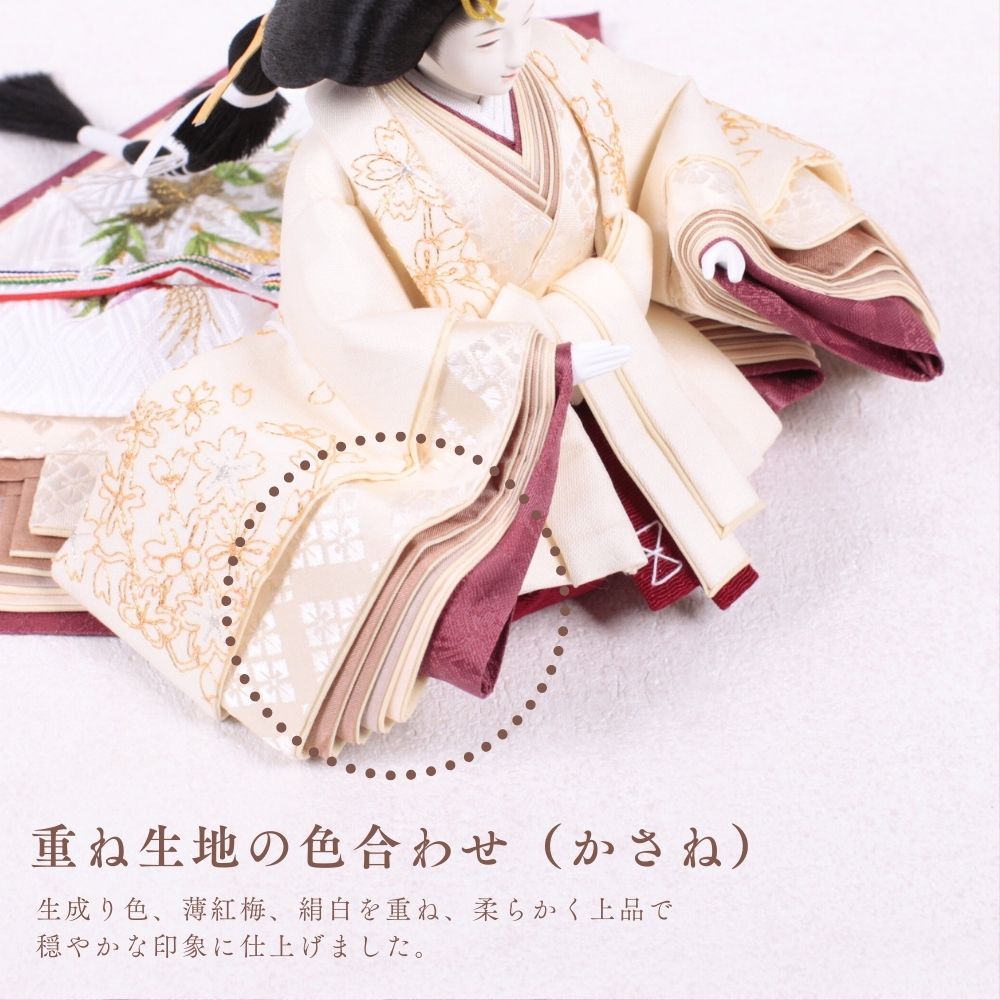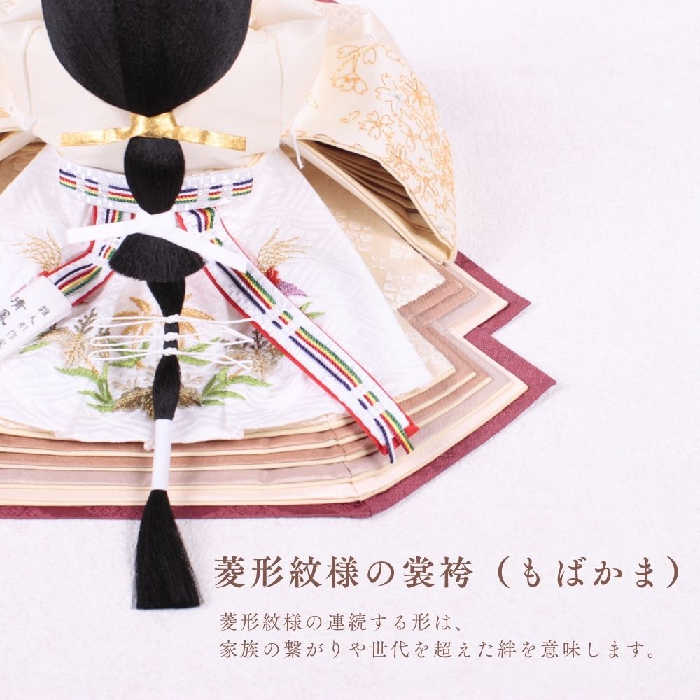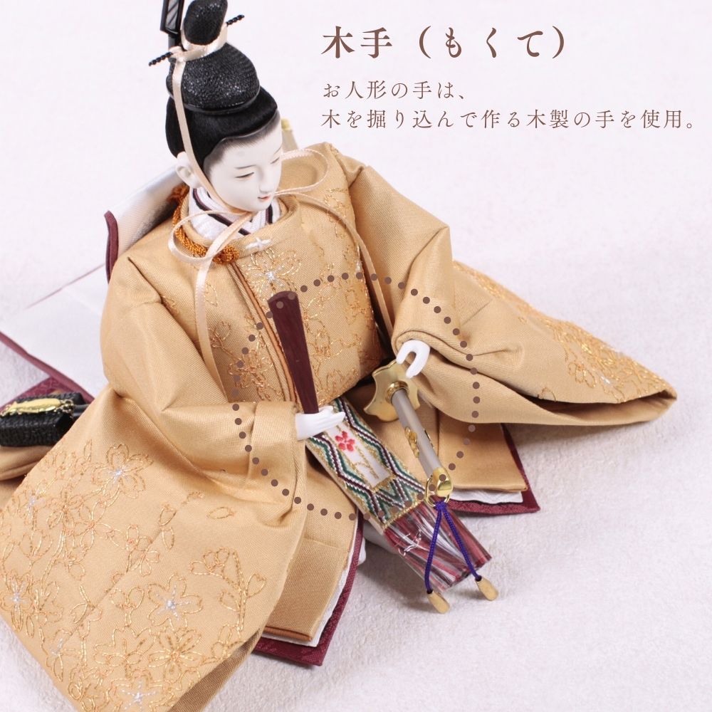 国産の栓(せん)は、美しい木目と温もりある質感が魅力の天然木です。耐久性に優れ、経年とともに味わいを深めます。台座や屏風などに使用することで、自然素材ならではの落ち着いた風合いと上質感を演出し、雛人形全体をより品格ある印象に仕上げます。