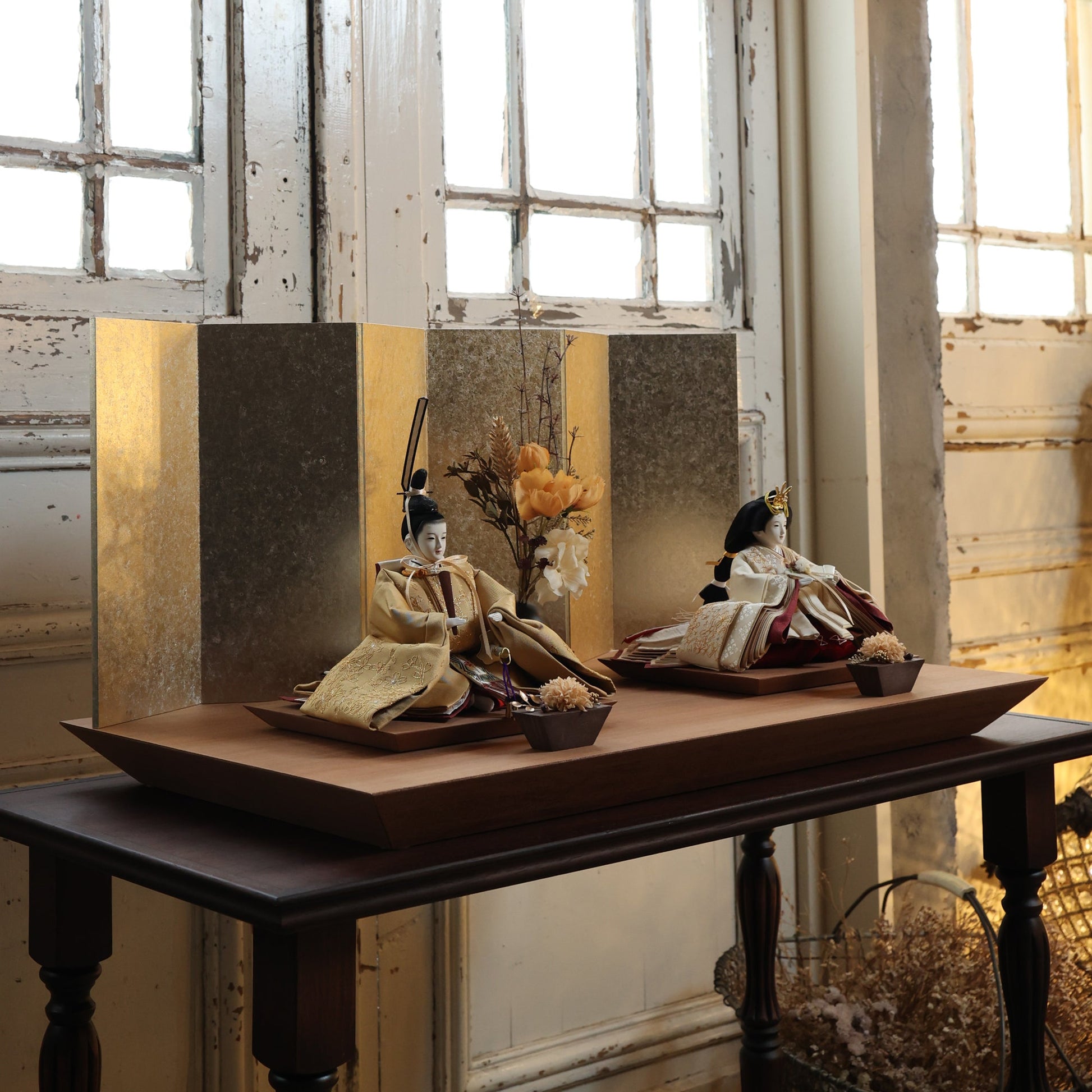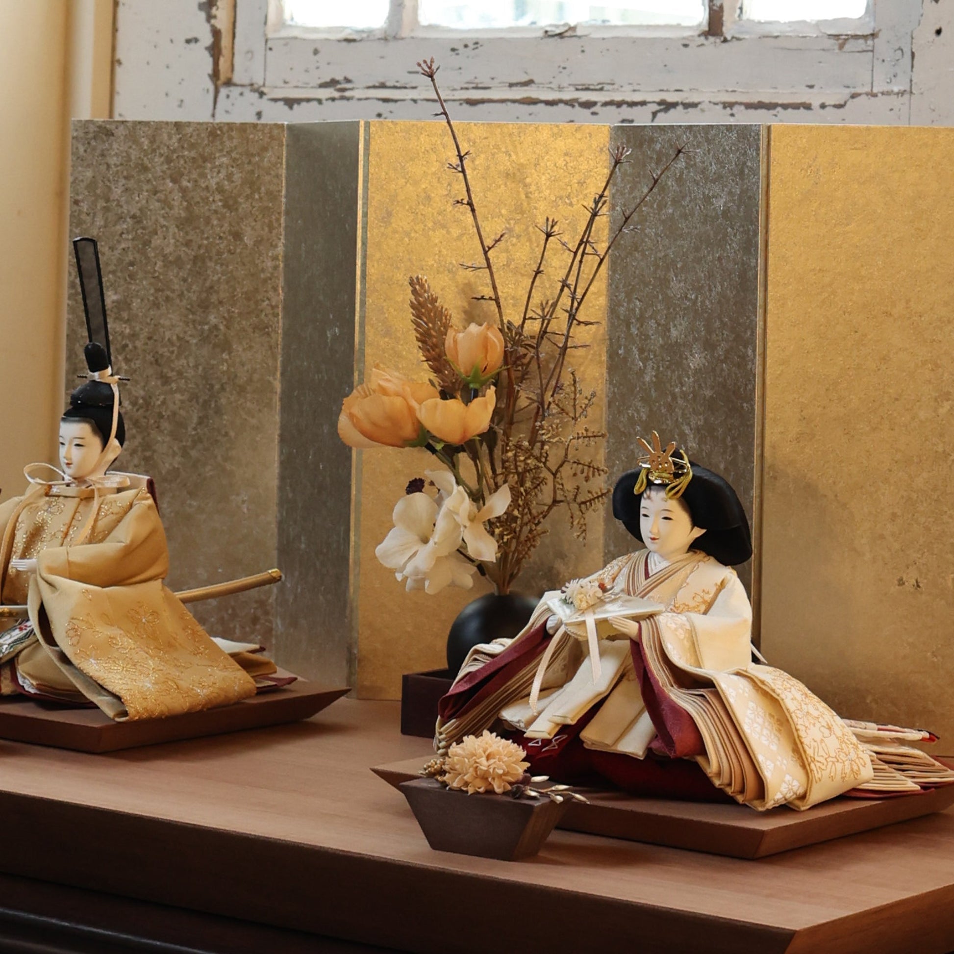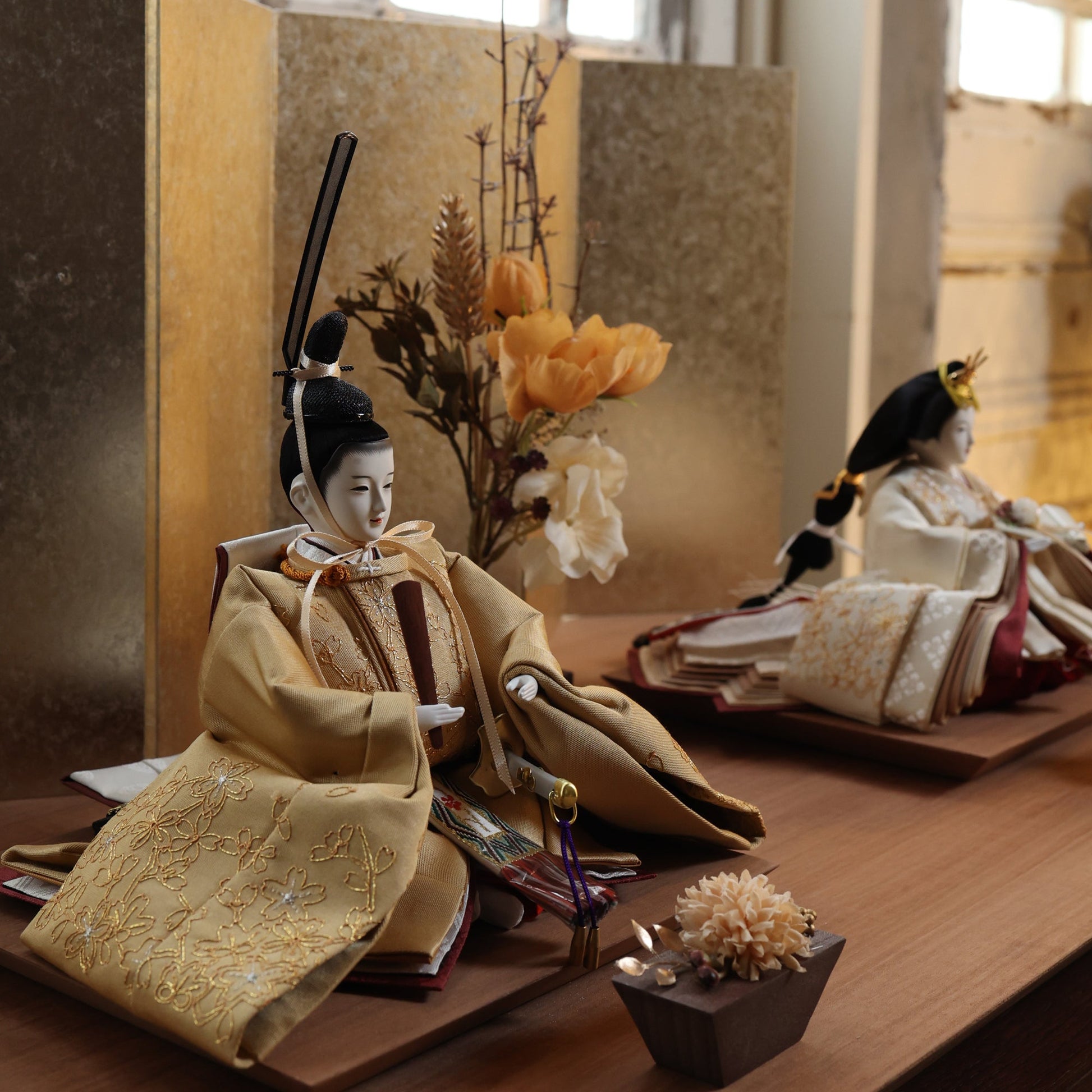 国産の栓(せん)は、美しい木目と温もりある質感が魅力の天然木です。耐久性に優れ、経年とともに味わいを深めます。台座や屏風などに使用することで、自然素材ならではの落ち着いた風合いと上質感を演出し、雛人形全体をより品格ある印象に仕上げます。