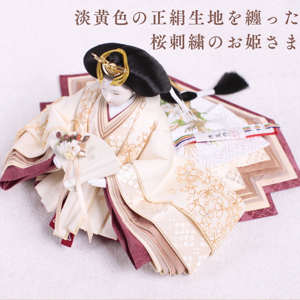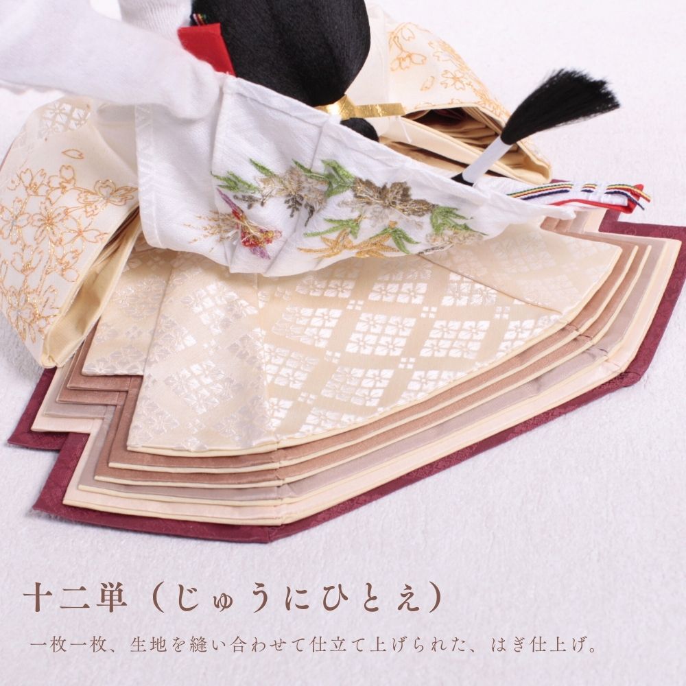 正絹は、100%絹から作られた生地で、「本絹」とも呼ばれます。蚕の繭を原料にし、複雑な工程を経て製造されます。絹糸を織って生地に仕上げることで、独特の光沢と滑らかな質感が生まれ、高級感のあるお人形が完成します。正絹は伝統的な工芸品に広く用いられ、その美しさが際立っています。