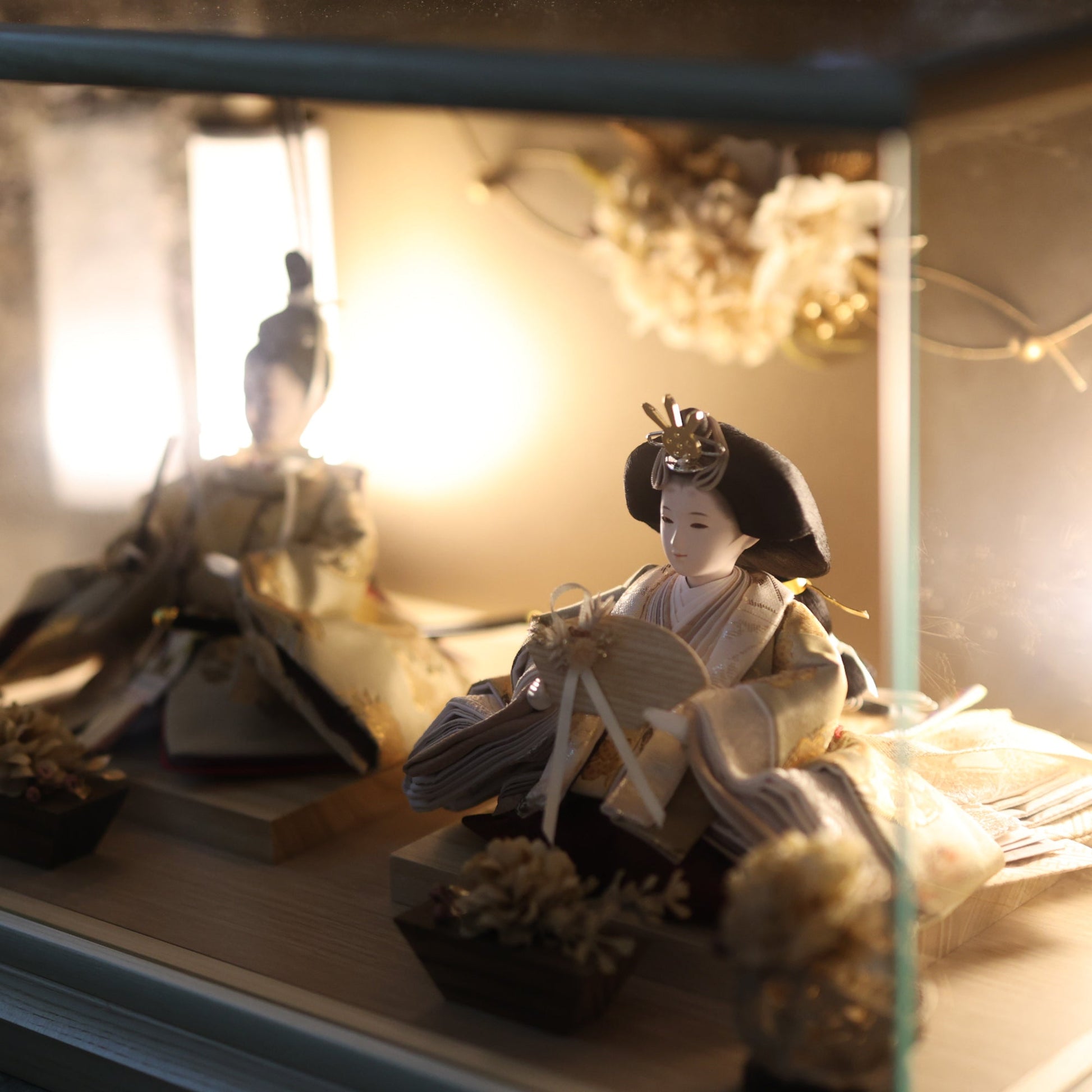 通常2mm厚が一般的な中、当店ではより高品質なAGC製3mmガラスを採用しています。厚みが増すことで強度と安全性が高まり、透明度の高いクリアな美しさを保ちます。大切な雛人形を守りながら、高級感のある見栄えを実現しています。
