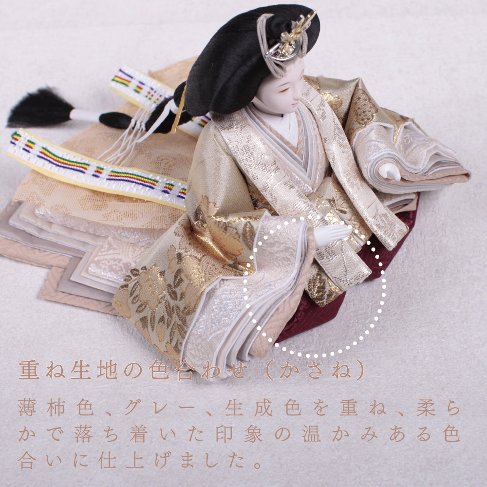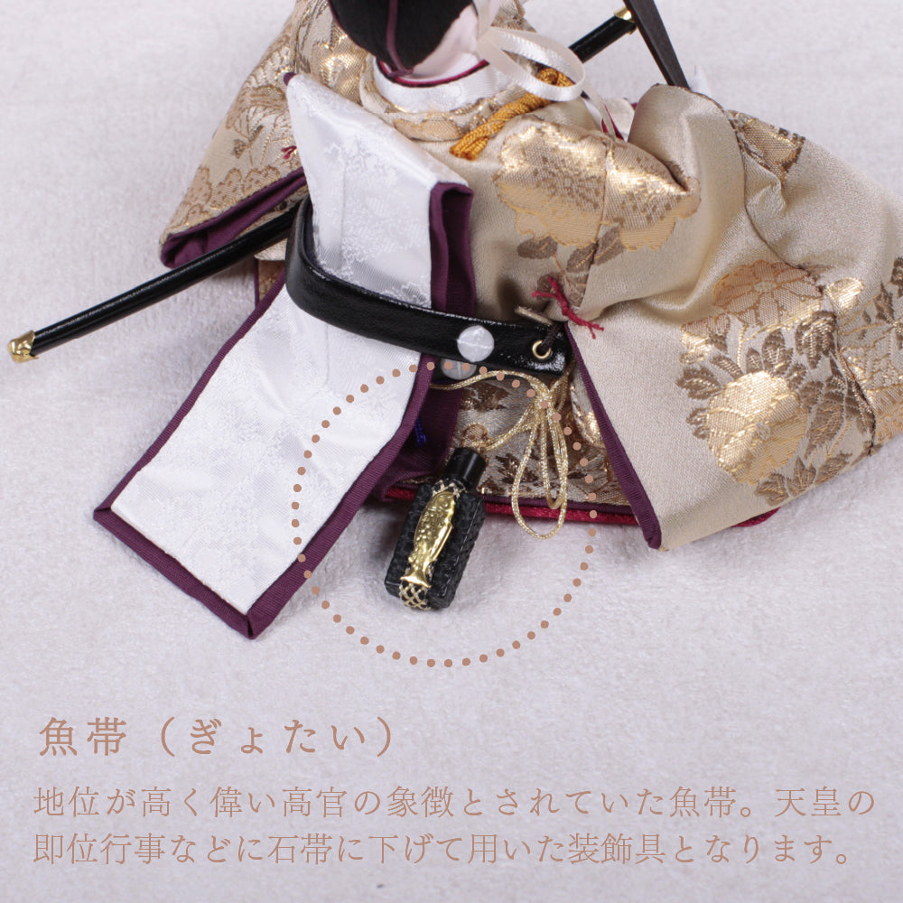国産の栓(せん)は、美しい木目と温もりある質感が魅力の天然木です。耐久性に優れ、経年とともに味わいを深めます。台座や屏風などに使用することで、自然素材ならではの落ち着いた風合いと上質感を演出し、雛人形全体をより品格ある印象に仕上げます。