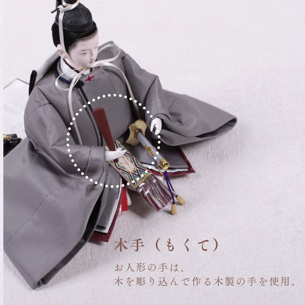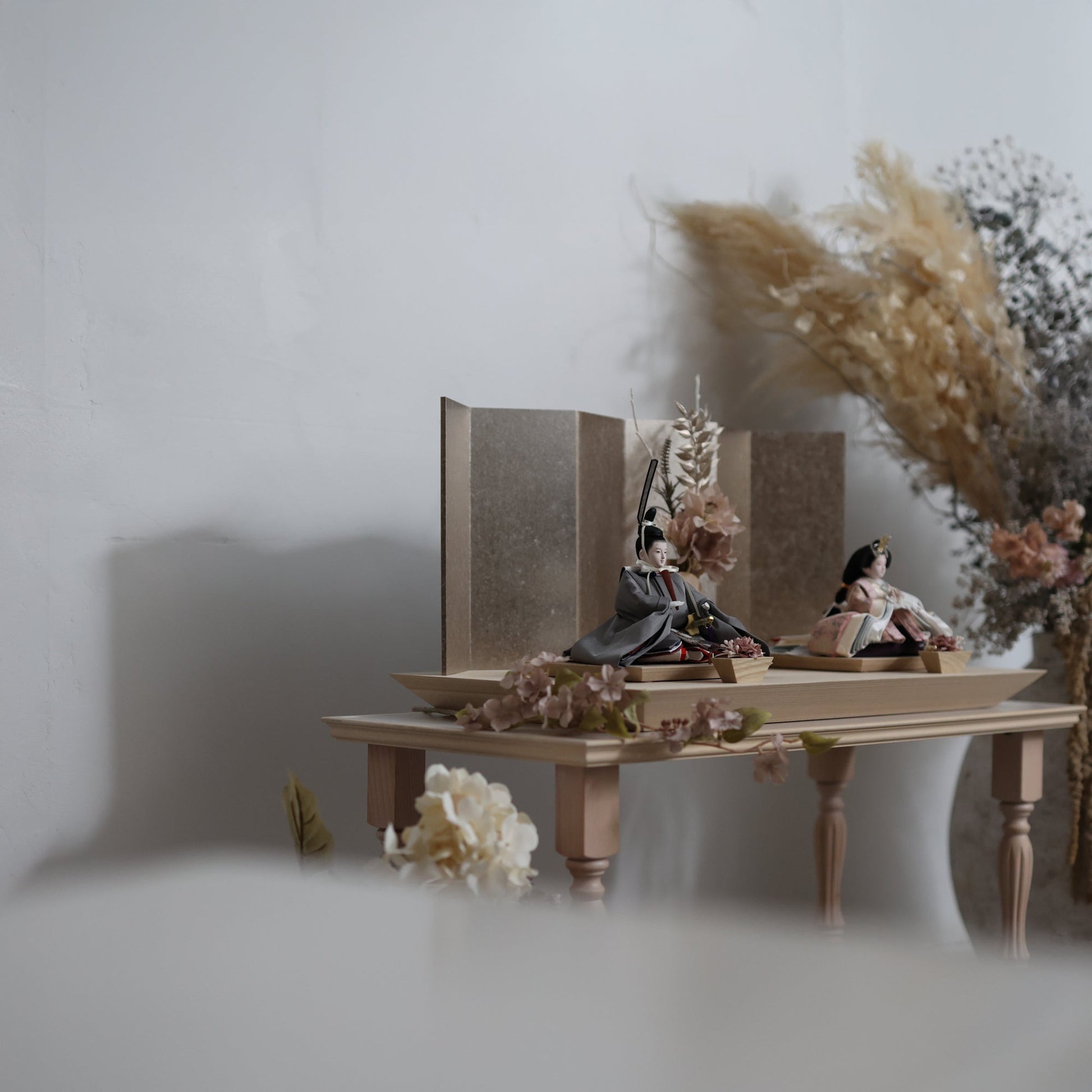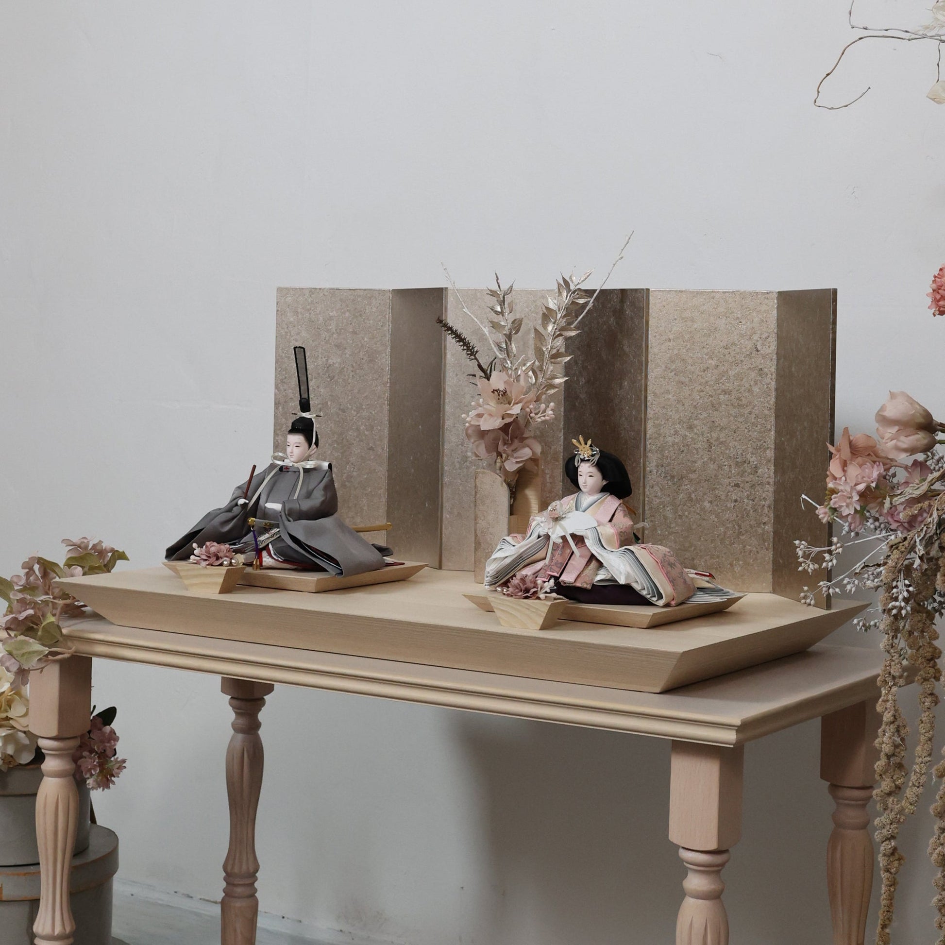 国産の栓(せん)は、美しい木目と温もりある質感が魅力の天然木です。耐久性に優れ、経年とともに味わいを深めます。台座や屏風などに使用することで、自然素材ならではの落ち着いた風合いと上質感を演出し、雛人形全体をより品格ある印象に仕上げます。