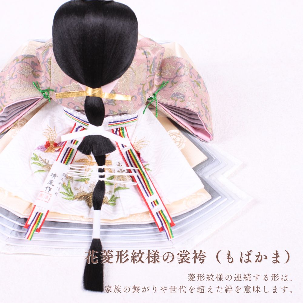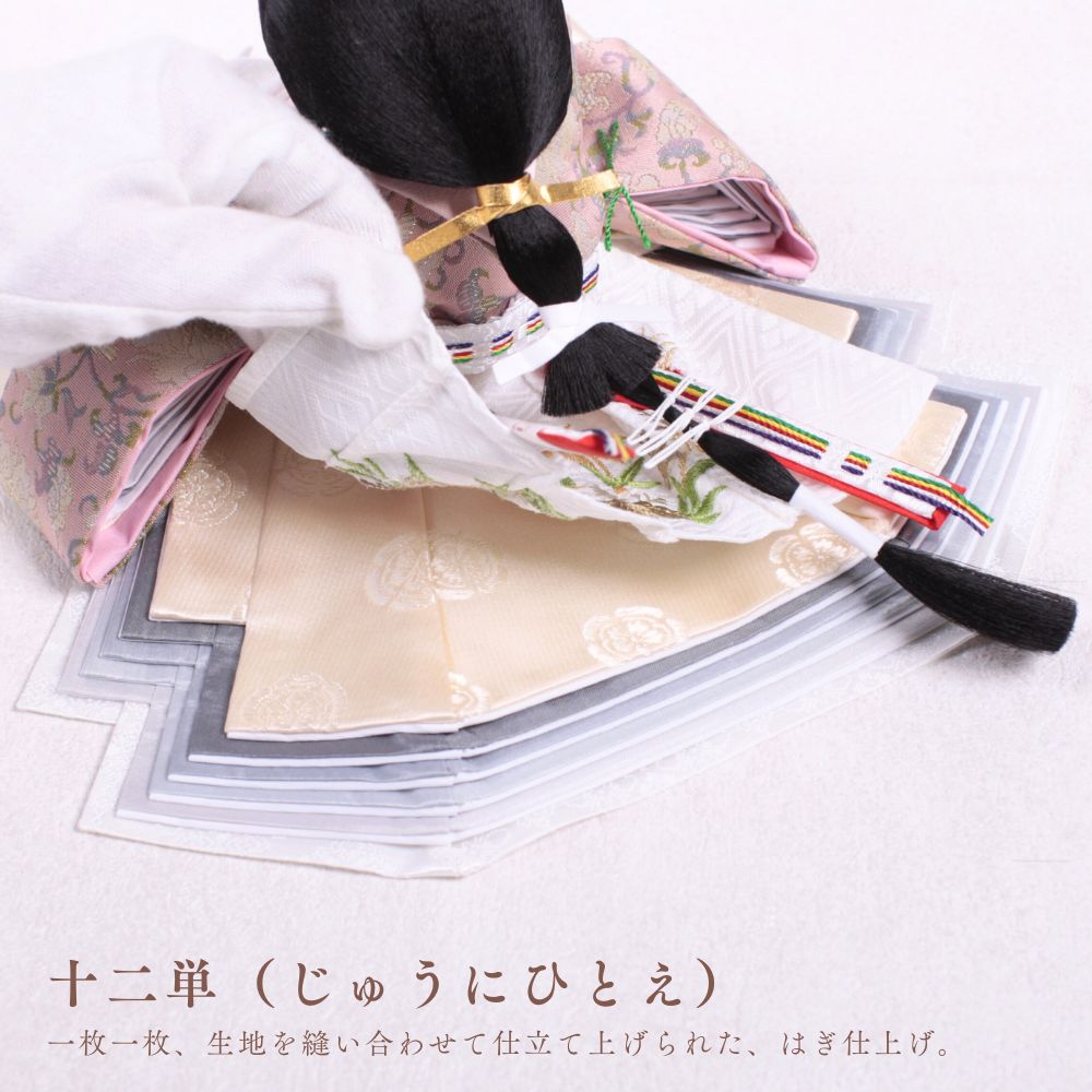正絹は、100%絹から作られた生地で、「本絹」とも呼ばれます。蚕の繭を原料にし、複雑な工程を経て製造されます。絹糸を織って生地に仕上げることで、独特の光沢と滑らかな質感が生まれ、高級感のあるお人形が完成します。正絹は伝統的な工芸品に広く用いられ、その美しさが際立っています。