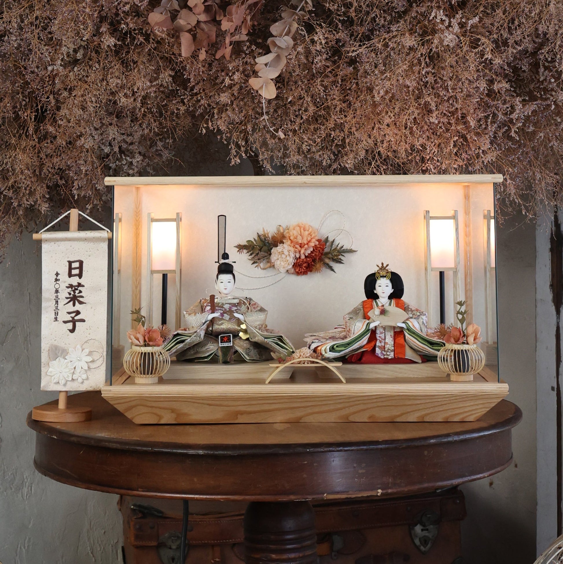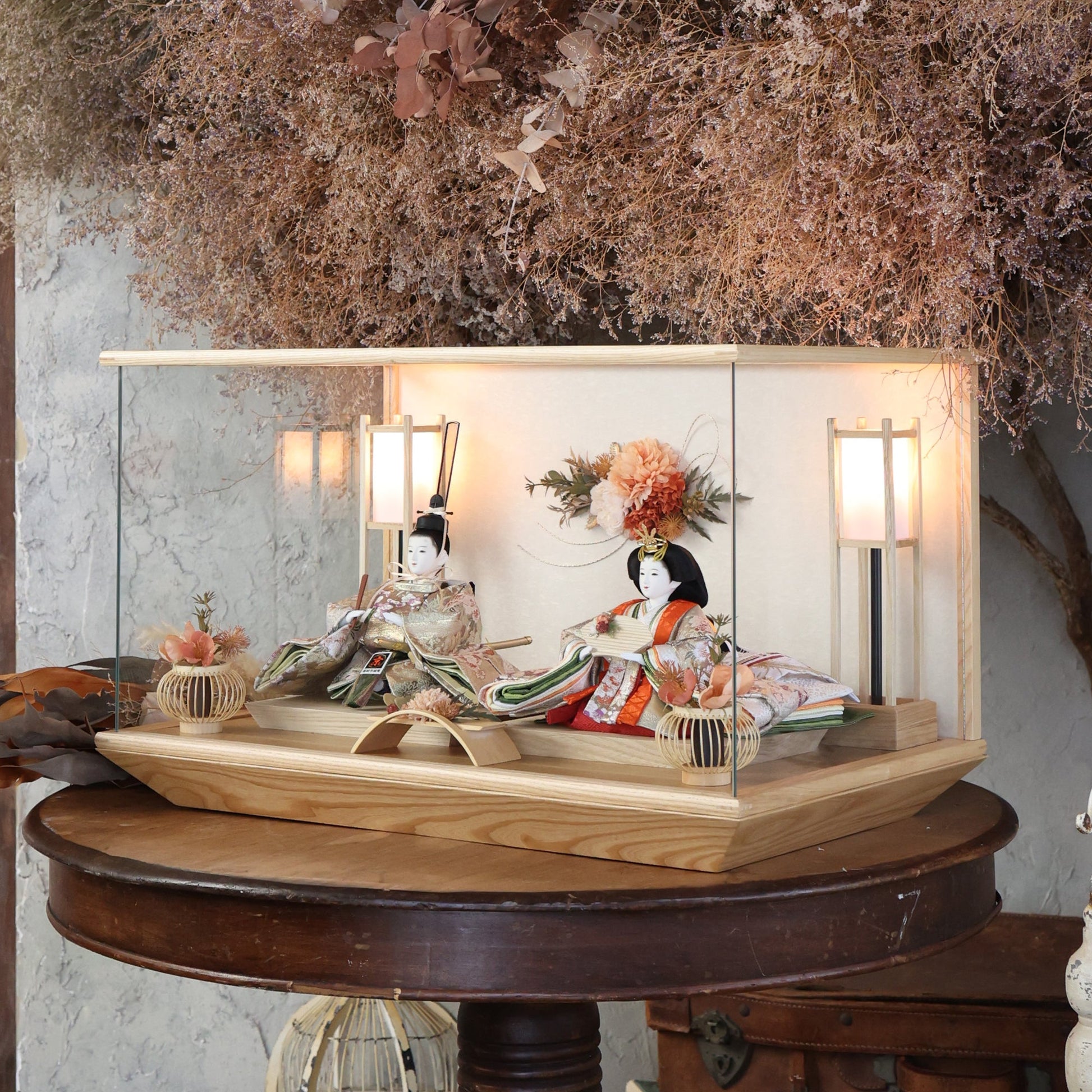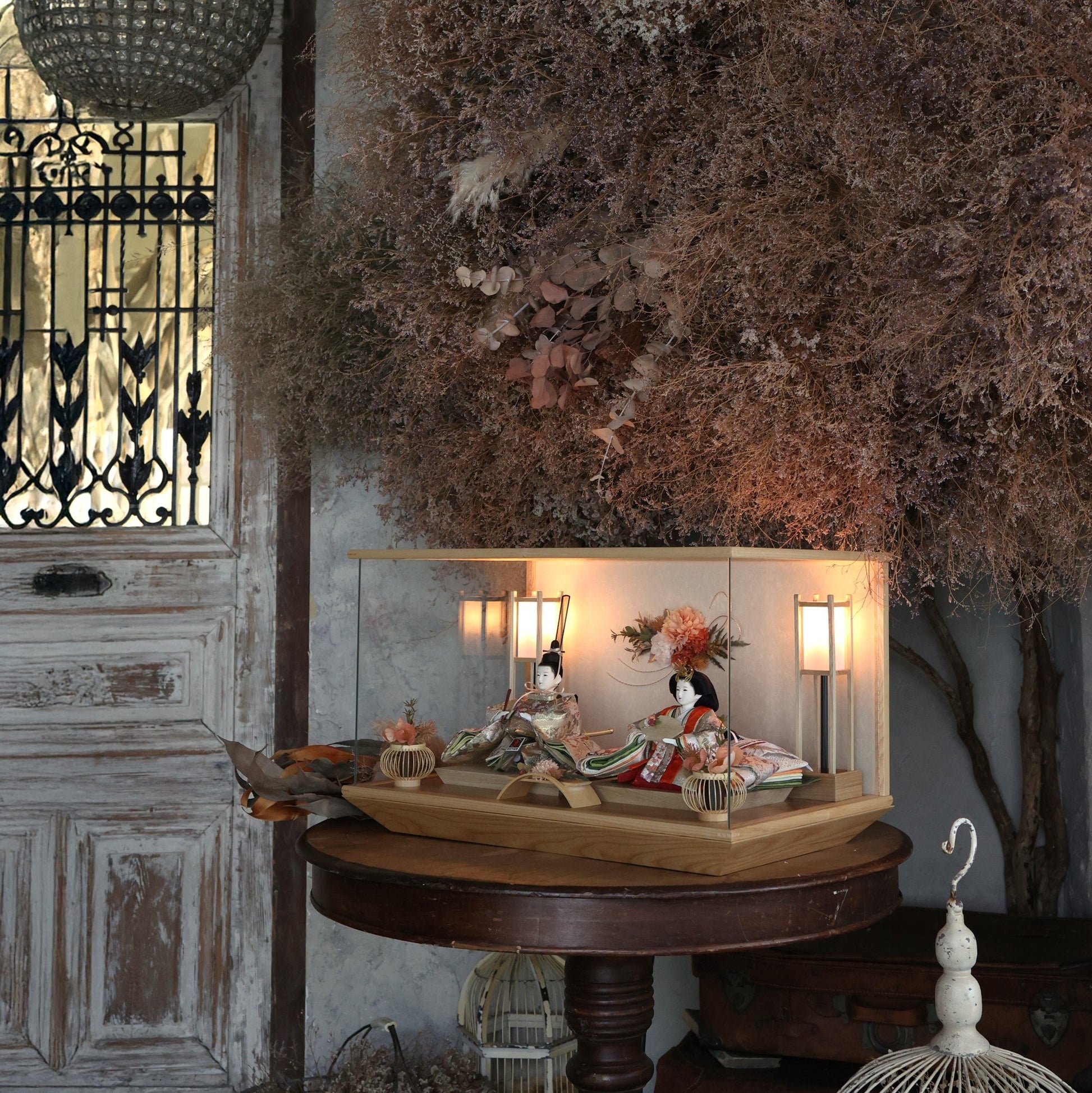 通常2mm厚が一般的な中、当店ではより高品質なAGC製3mmガラスを採用しています。厚みが増すことで強度と安全性が高まり、透明度の高いクリアな美しさを保ちます。大切な雛人形を守りながら、高級感のある見栄えを実現しています。