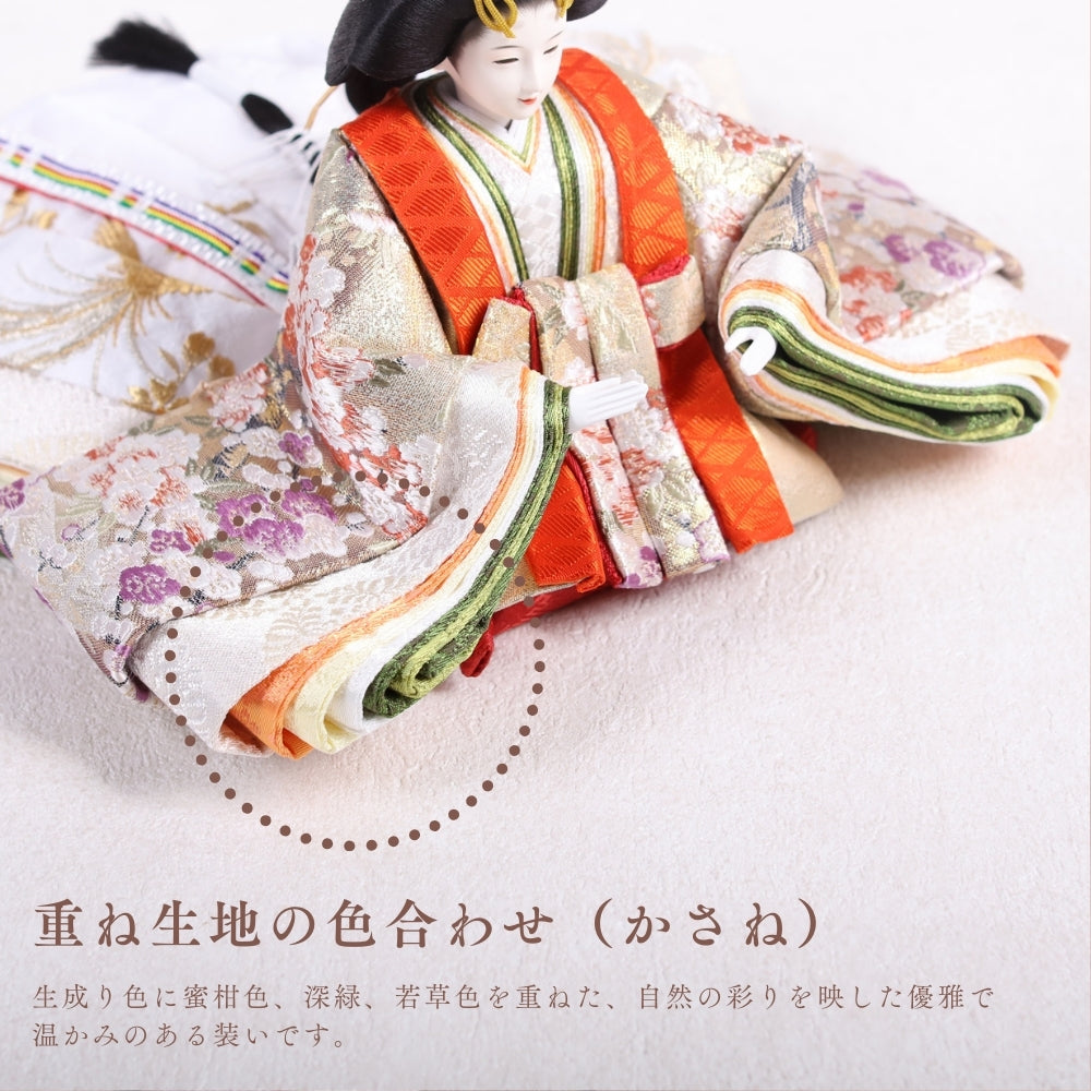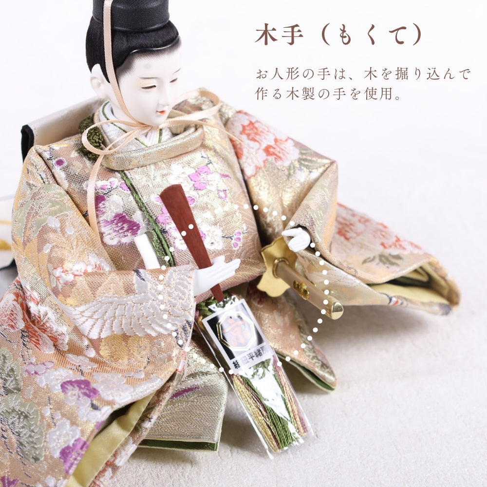 国産の栓(せん)は、美しい木目と温もりある質感が魅力の天然木です。耐久性に優れ、経年とともに味わいを深めます。台座や屏風などに使用することで、自然素材ならではの落ち着いた風合いと上質感を演出し、雛人形全体をより品格ある印象に仕上げます。